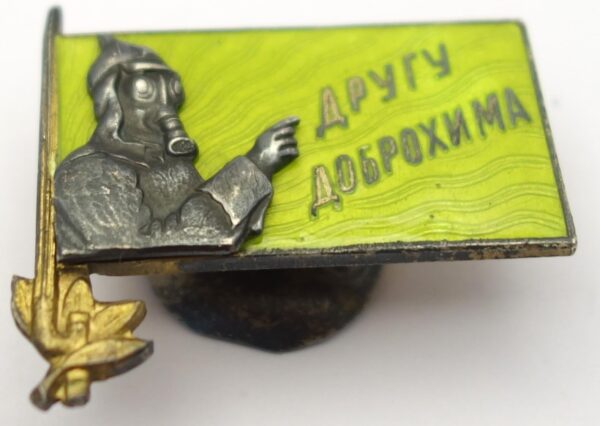 The Society of Friends of Chemical Defense and Chemical Industry (DOBROHIM) is a defense public organization formed on May 19th, 1924 in Moscow. The main task of DOBROKHIM was to assist the state in the development of the chemical industry, the chemicalization of agriculture, the deployment of the promotion of chemical knowledge among the population and its preparation for anti-chemical defense. In May 1925, the Society of Friends of the Air Fleet (ODVF) and the Society of Friends of Chemical Defense and Chemical Industry (DOBROHIM) merged into one Society – AVIAHIM of the USSR.
