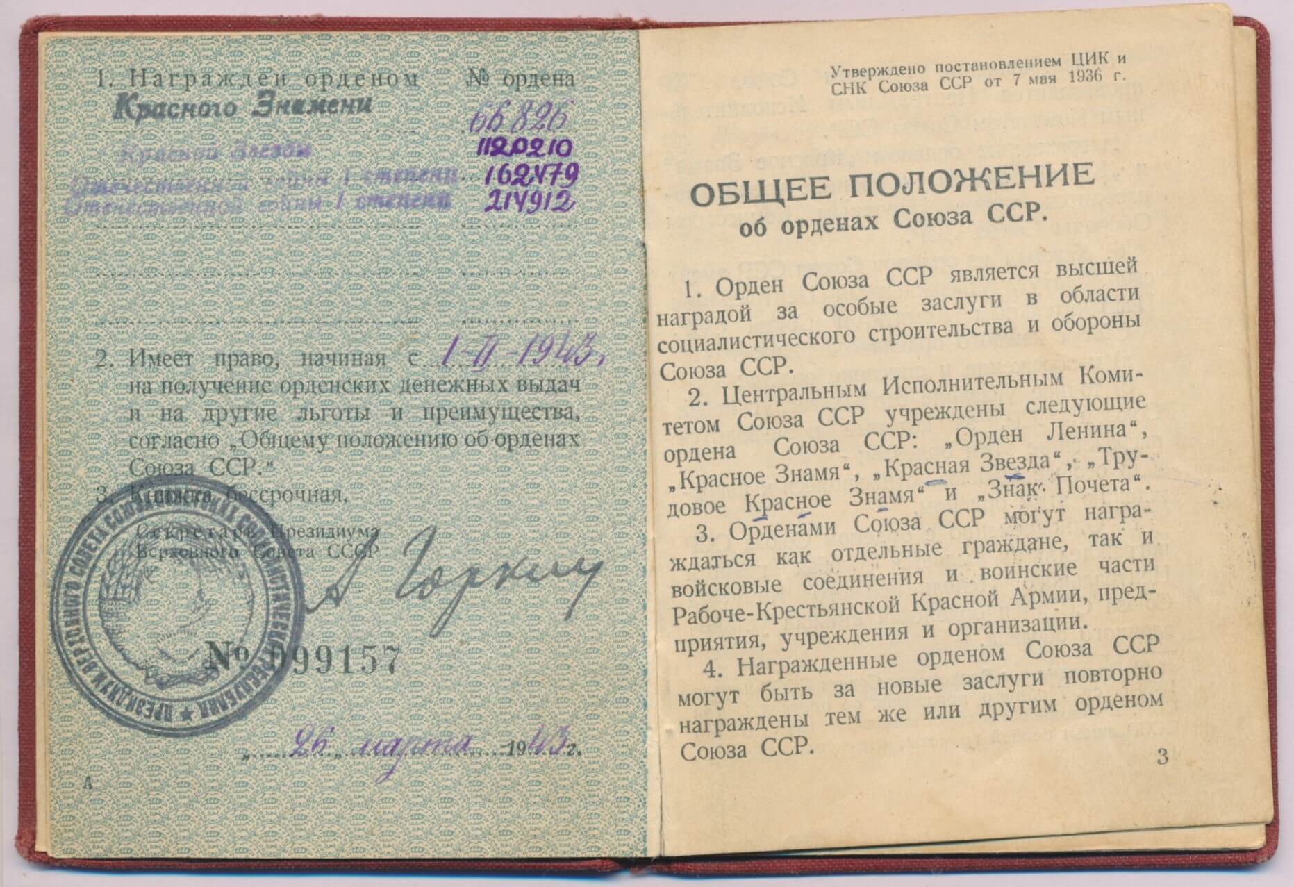 The group is accompanied by its original order booklet which is in excellent condition. Both awards above are mentioned together with an Order of the Red Banner and another Order of the Patriotic War 1st class which are not present in this lot.