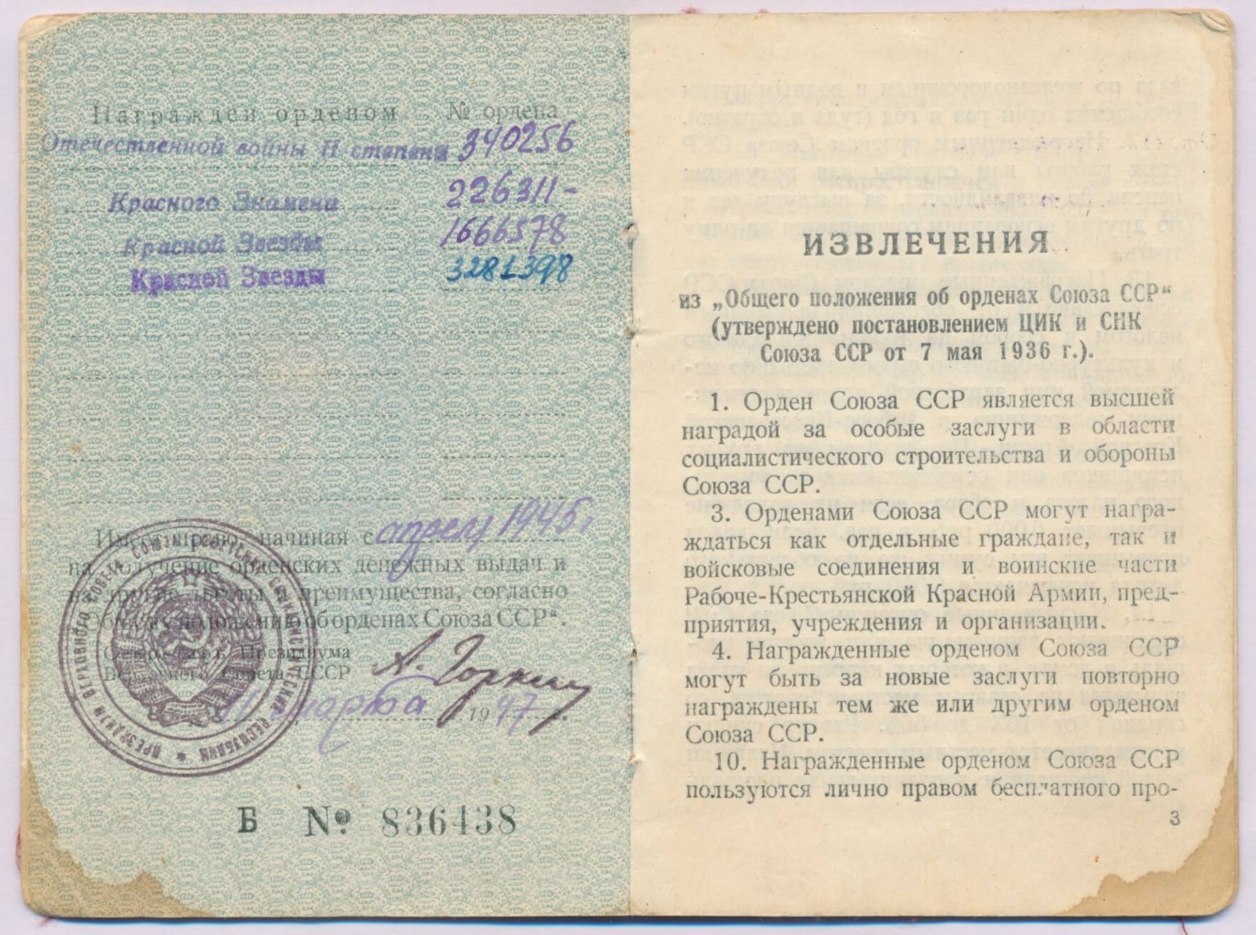 Citation of the Order of the Patriotic War 2nd class #340256 (not present in this lot)