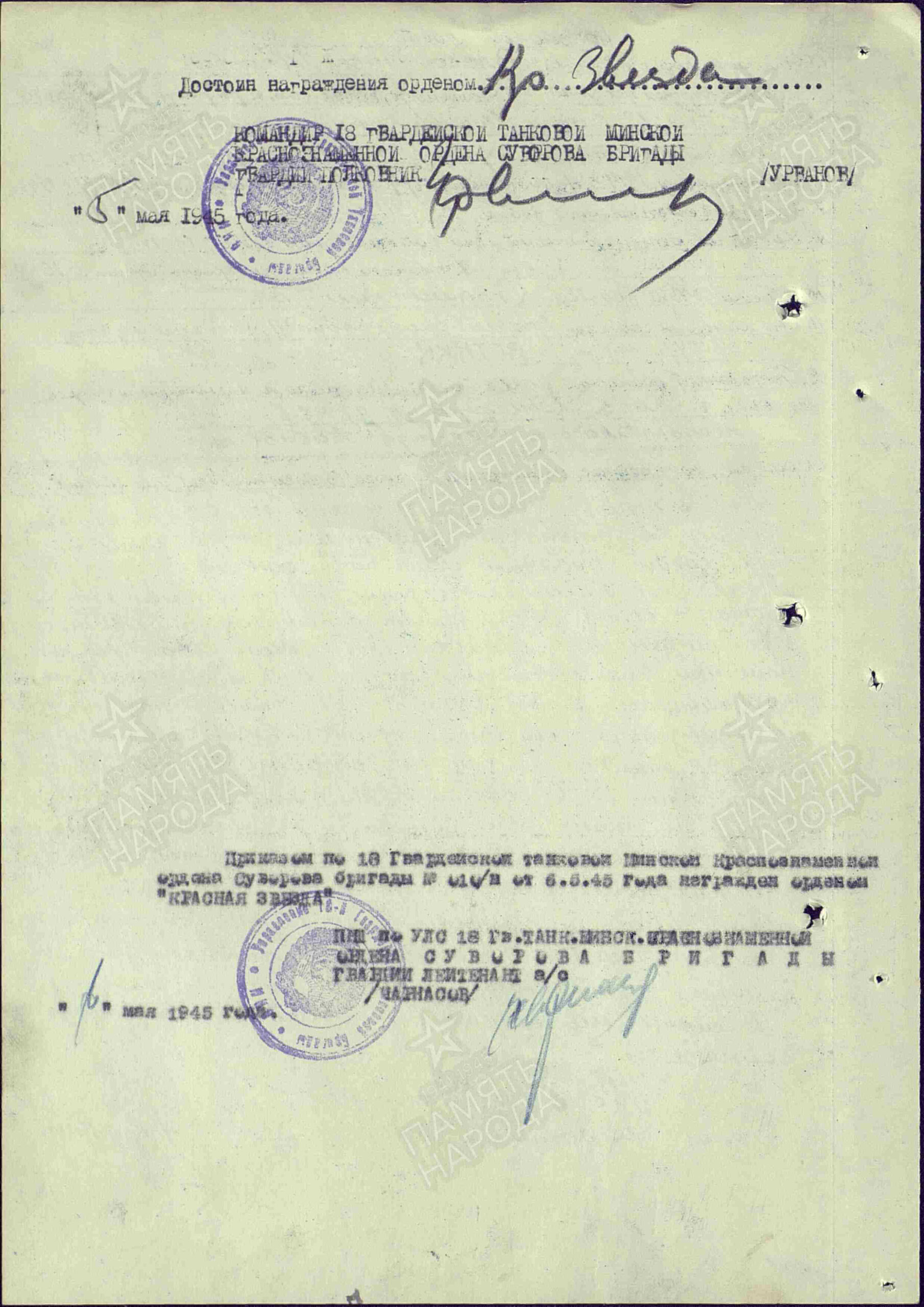 He merits the award of the Order of the Patriotic War 1st Class.