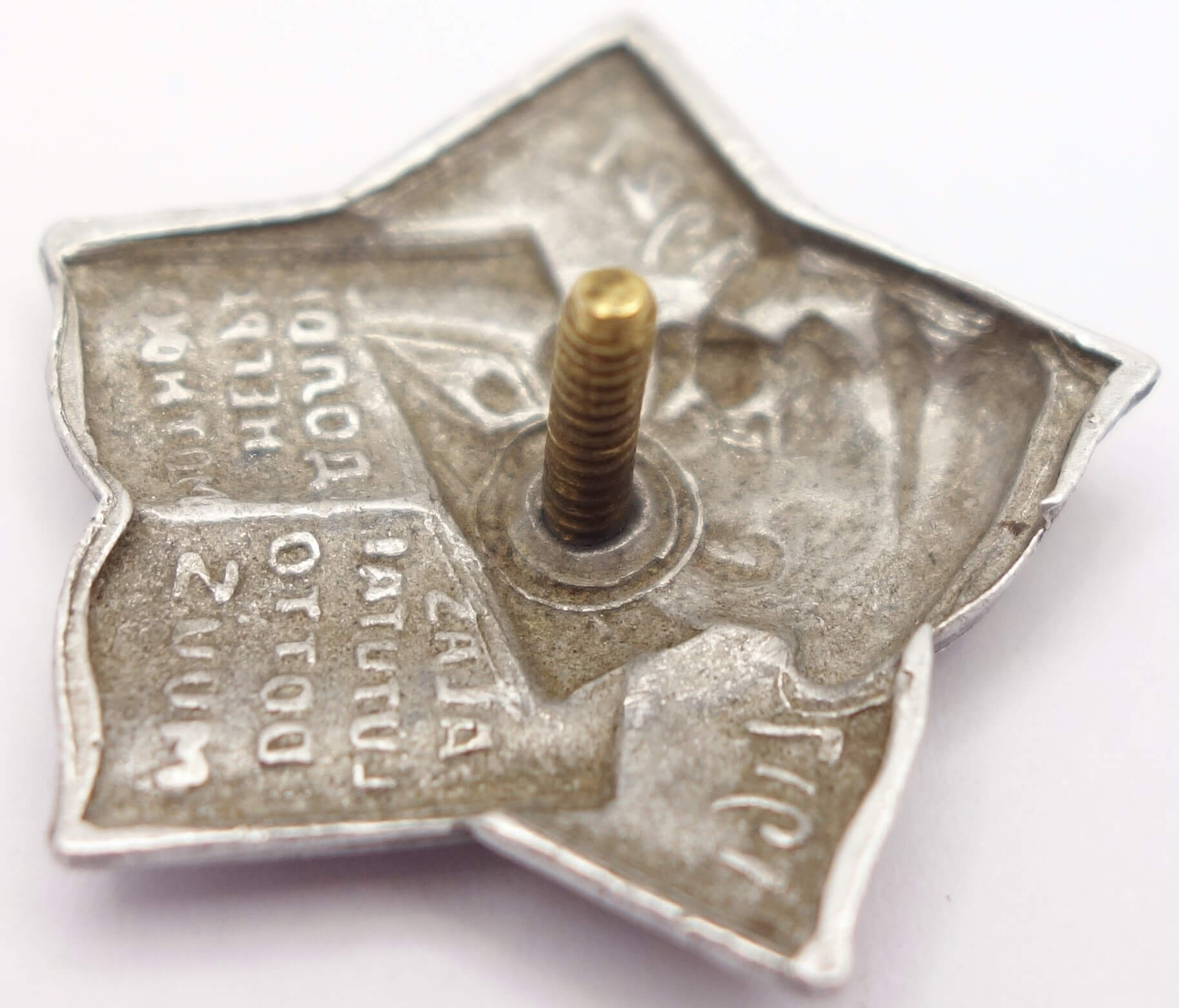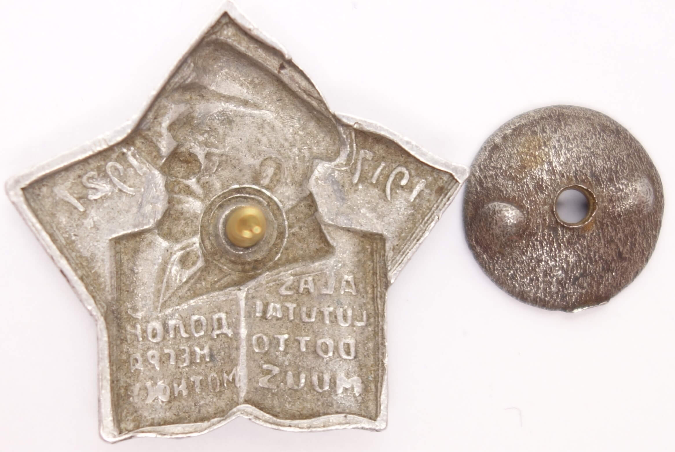 In excellent condition with its details like Lenin’s facial features still visible. Both sides show light wear only and relatively few dings and scratches. The badge comes with its matching screwplate and its screw has not been shortened.