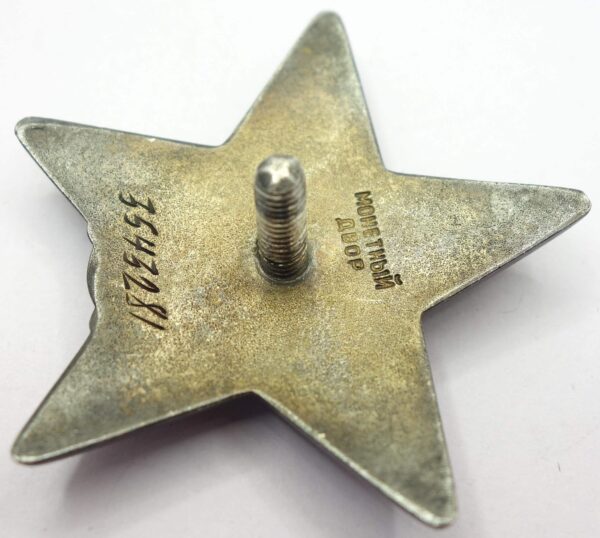 Made of silver and enamels. The order measures 47.80 mm in width, 46.52 mm in height and weighs 29.7 grams without its screwplate. The serial number is located at the 6 o’clock position and the mint mark on the 12 o’clock position of its reverse. This early variation has a round base ‘heel’ of the screw.