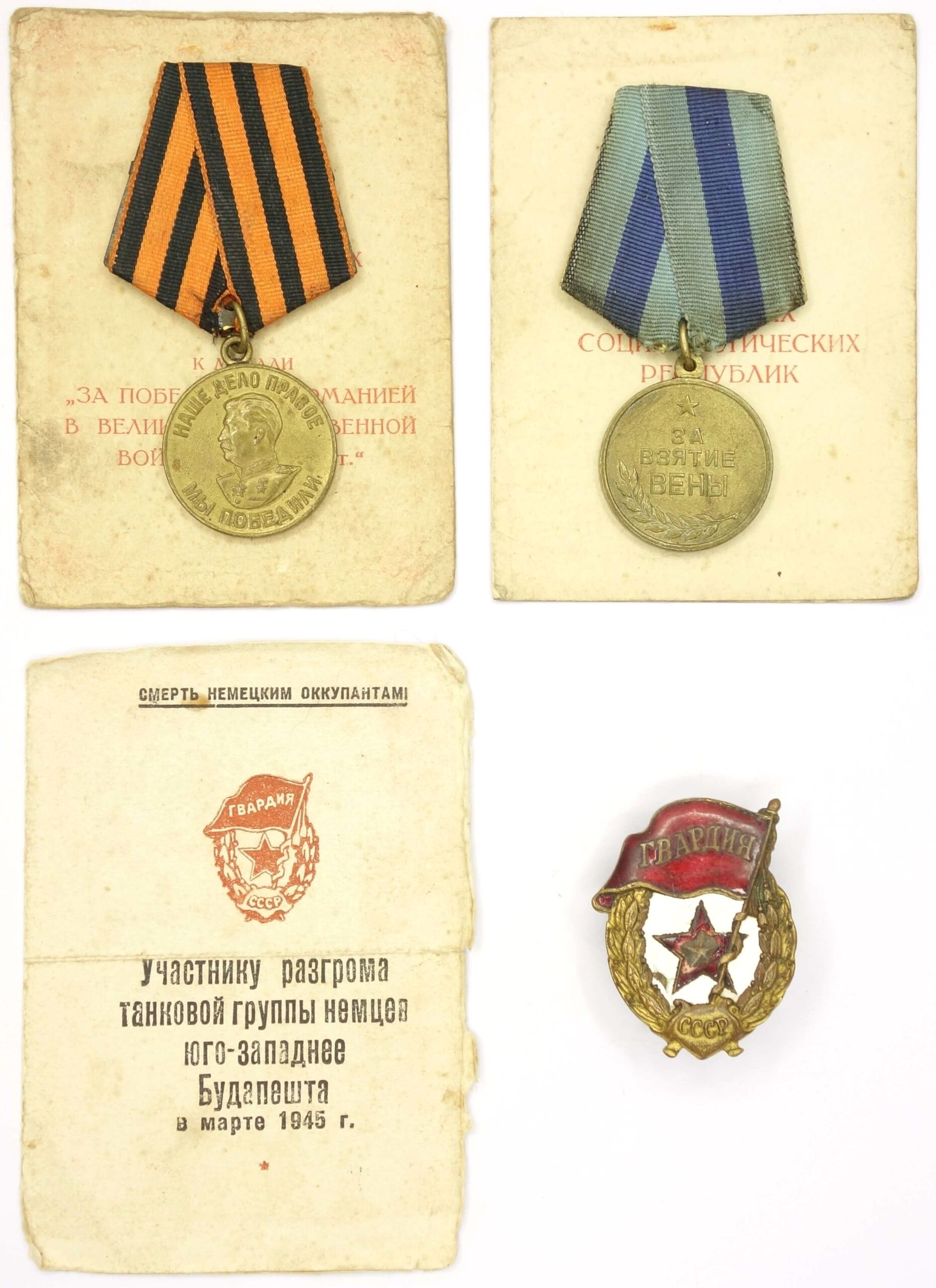 Documented Group of Soviet Campaign Medals and early Guards Badge