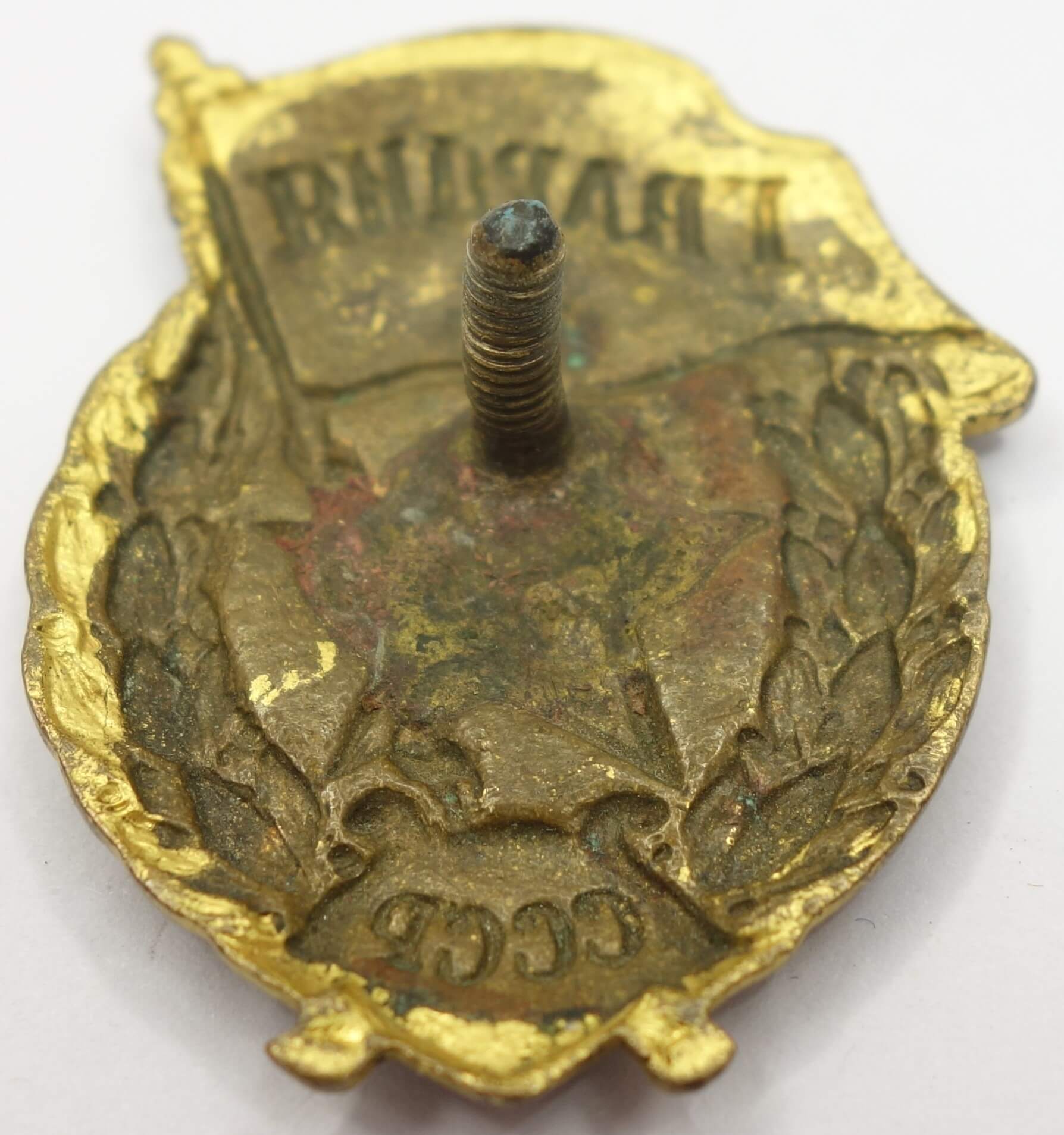 in worn but decent condtion with most details crisp and a fair amount of the original; gilding still present. The enamels show a large chip on the center star but are otherwise well preserved.There have been no repairs and the badge comes with an improvised screwplate. Its screw has not been shortened.