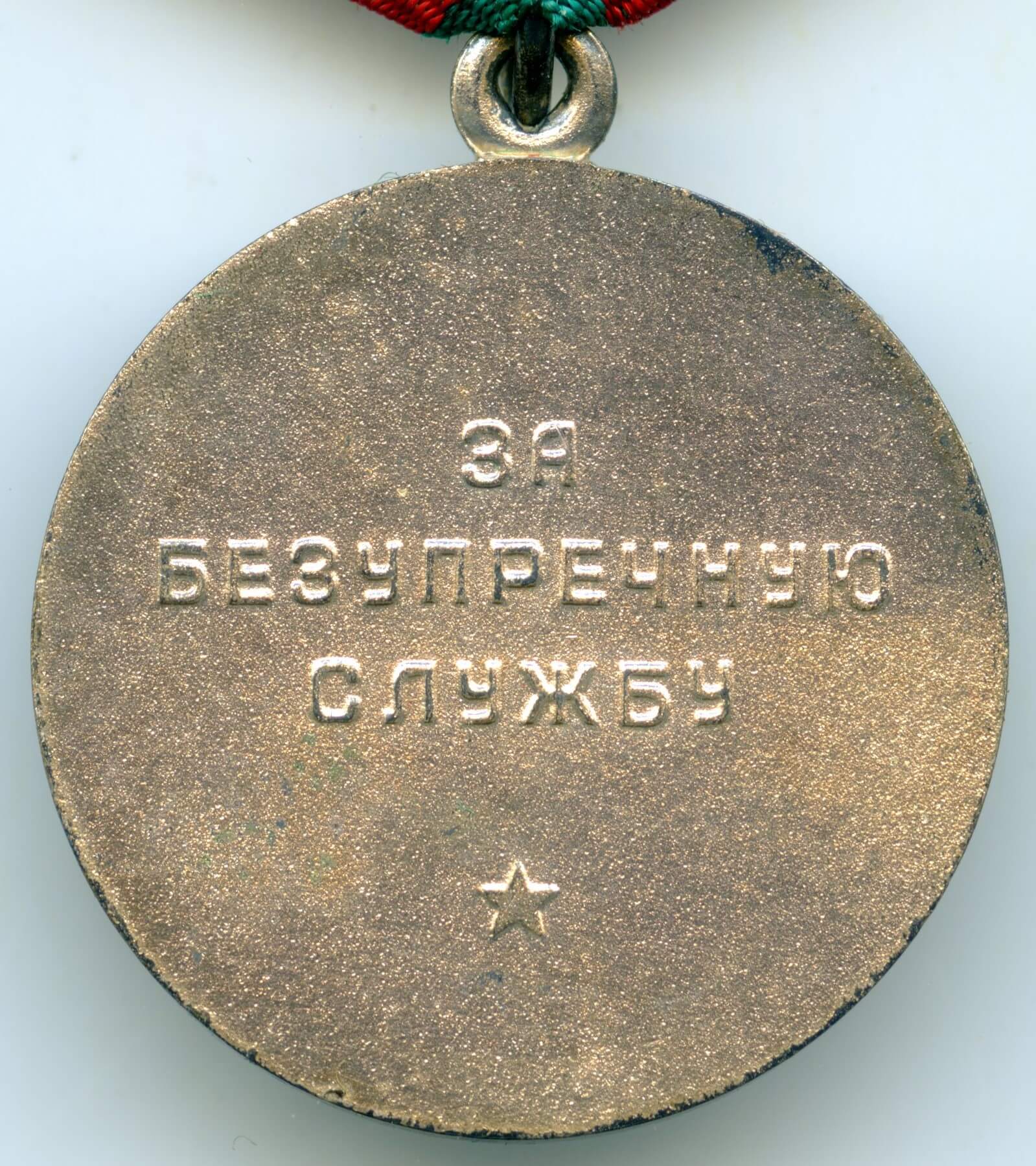 The Medal “For Impeccable Service” (Russian; Медаль «За безупречную службу») was a Soviet military award for long service.