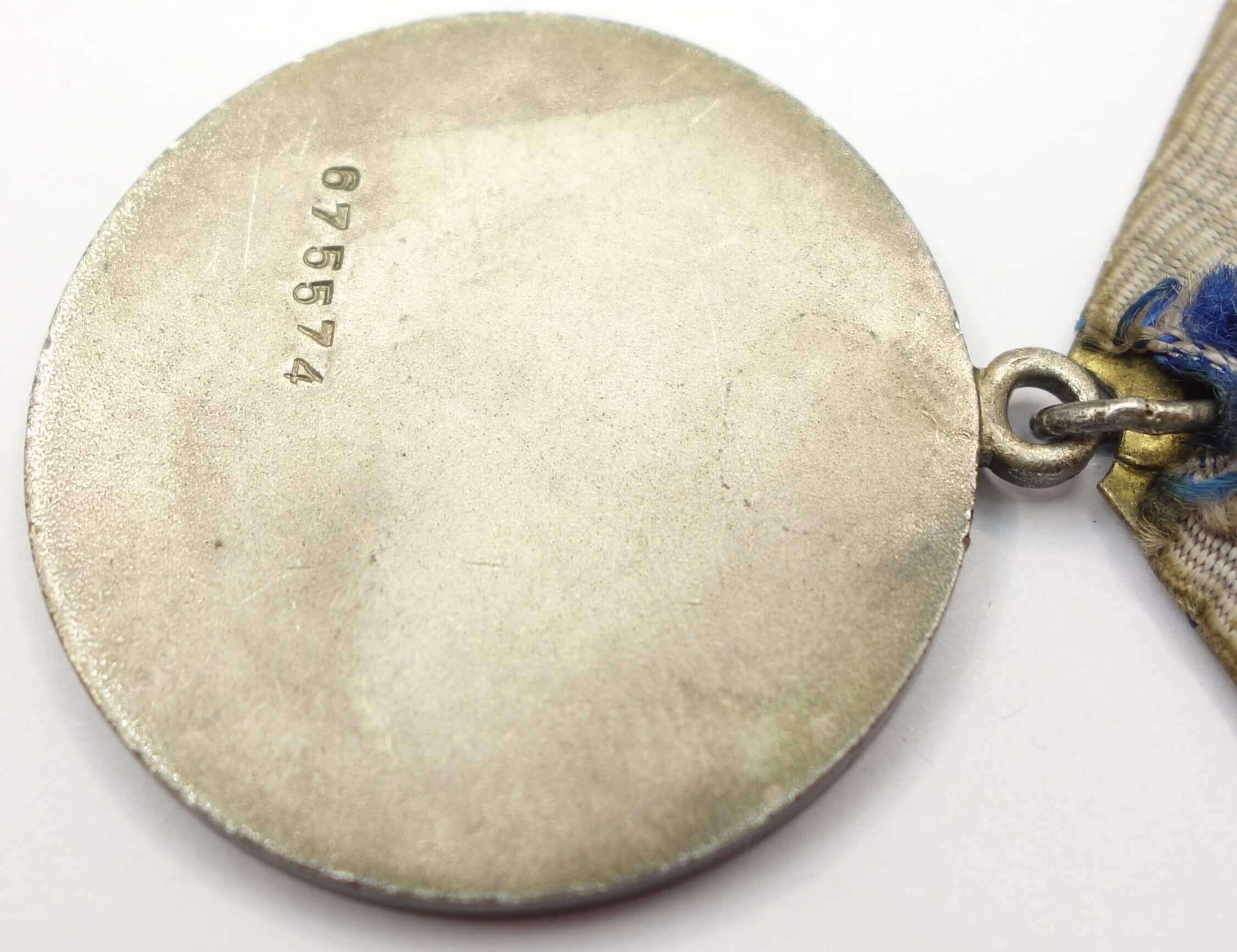 The medal is in great condition with its details crisp and a medium dark patina to the silver on both sides. The original red enamel is perfectly preserved without repairs and its connection ring has not been cut. The brass suspension is time period to the medal.
