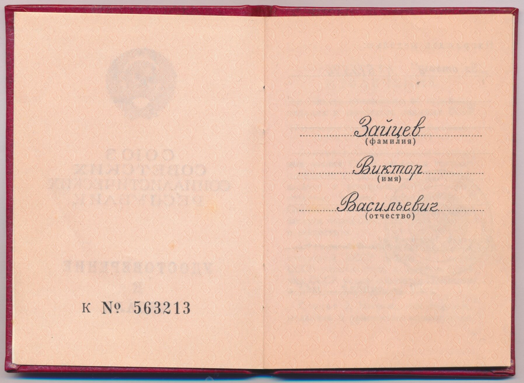 It should be noted that Zaitsev is not wearing his Medal for Bravery in the photograph found on Pamyat, which is consistent with the image having been taken prior to 1985; i.e., he had not yet received his duplicate award.