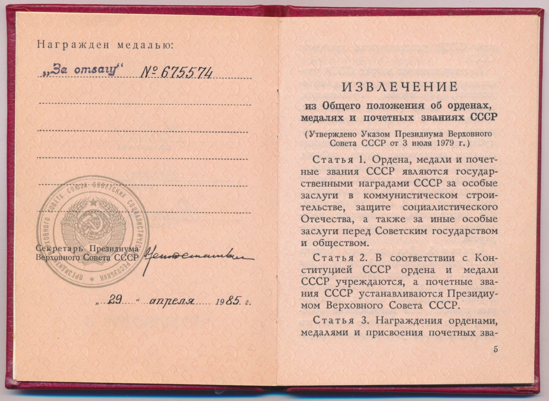 Medal for Bravery #675574 ‘Duplicate’ with its medal booklet