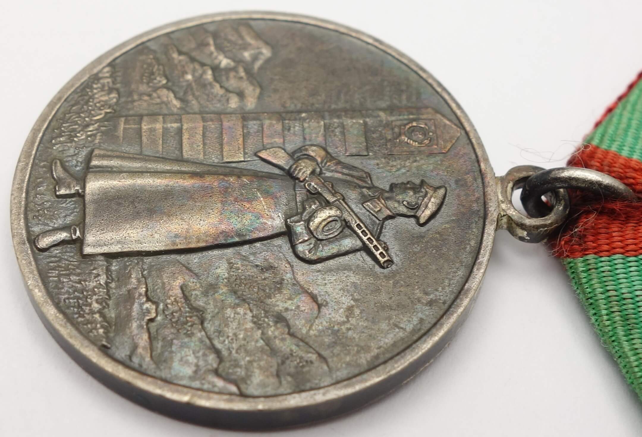 The medal is in excellent condition with crisp details, even the raised areas like the soldier’s face show virtually no wear. Both sides show an appealing patina on the silver plating and the medal comes with its time period aluminium suspension. Its connection ring has not been cut.