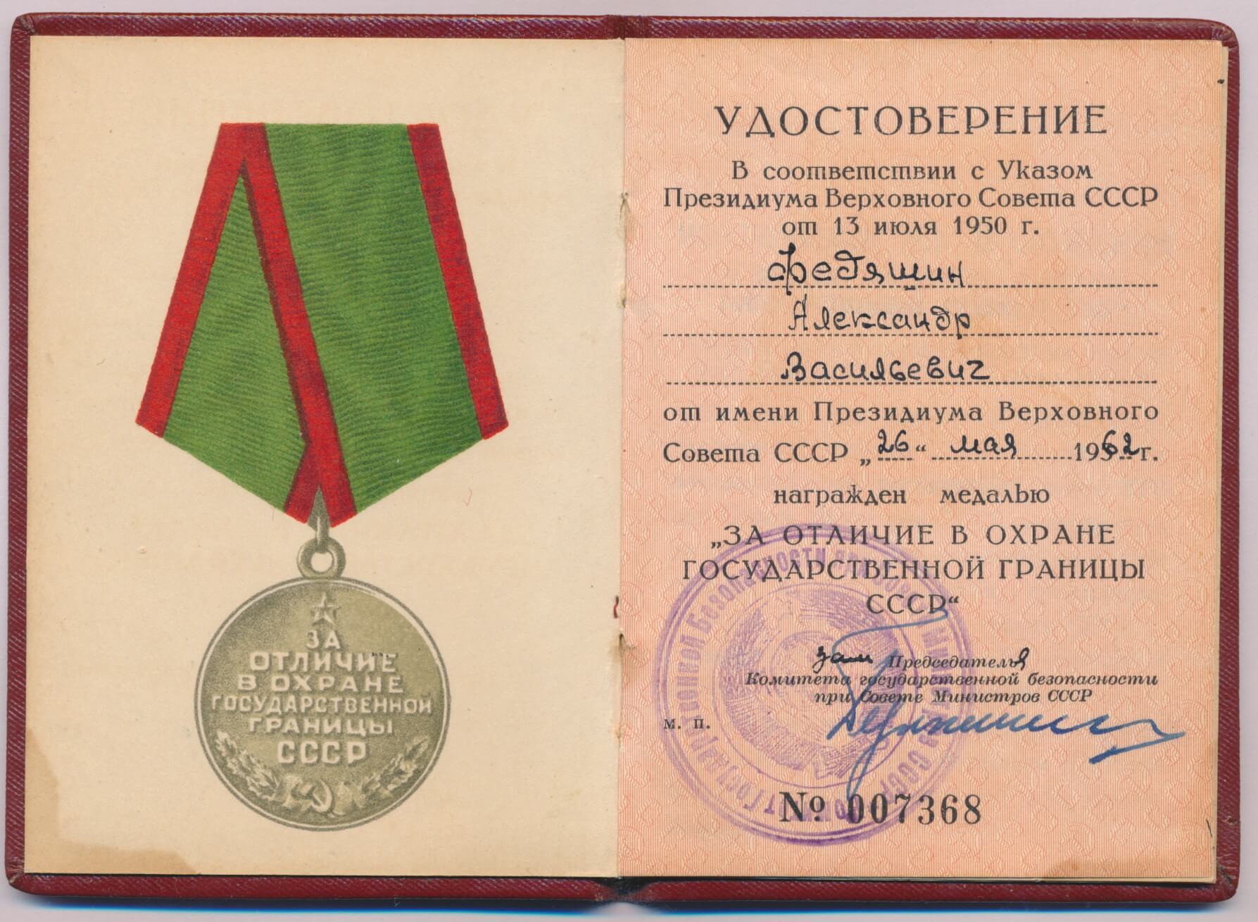 Documented Medal for Distinction in Guarding the State Border of the USSR