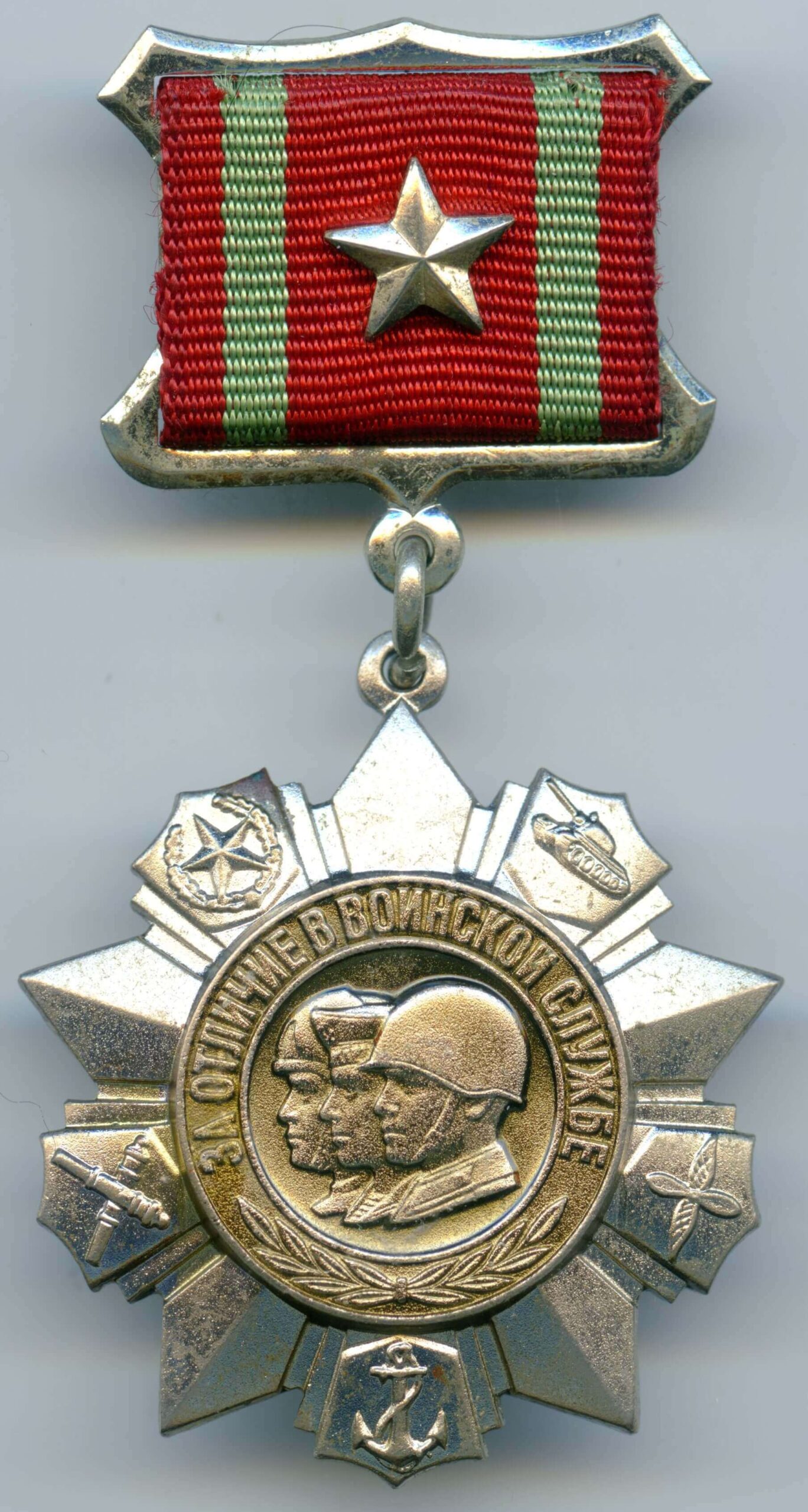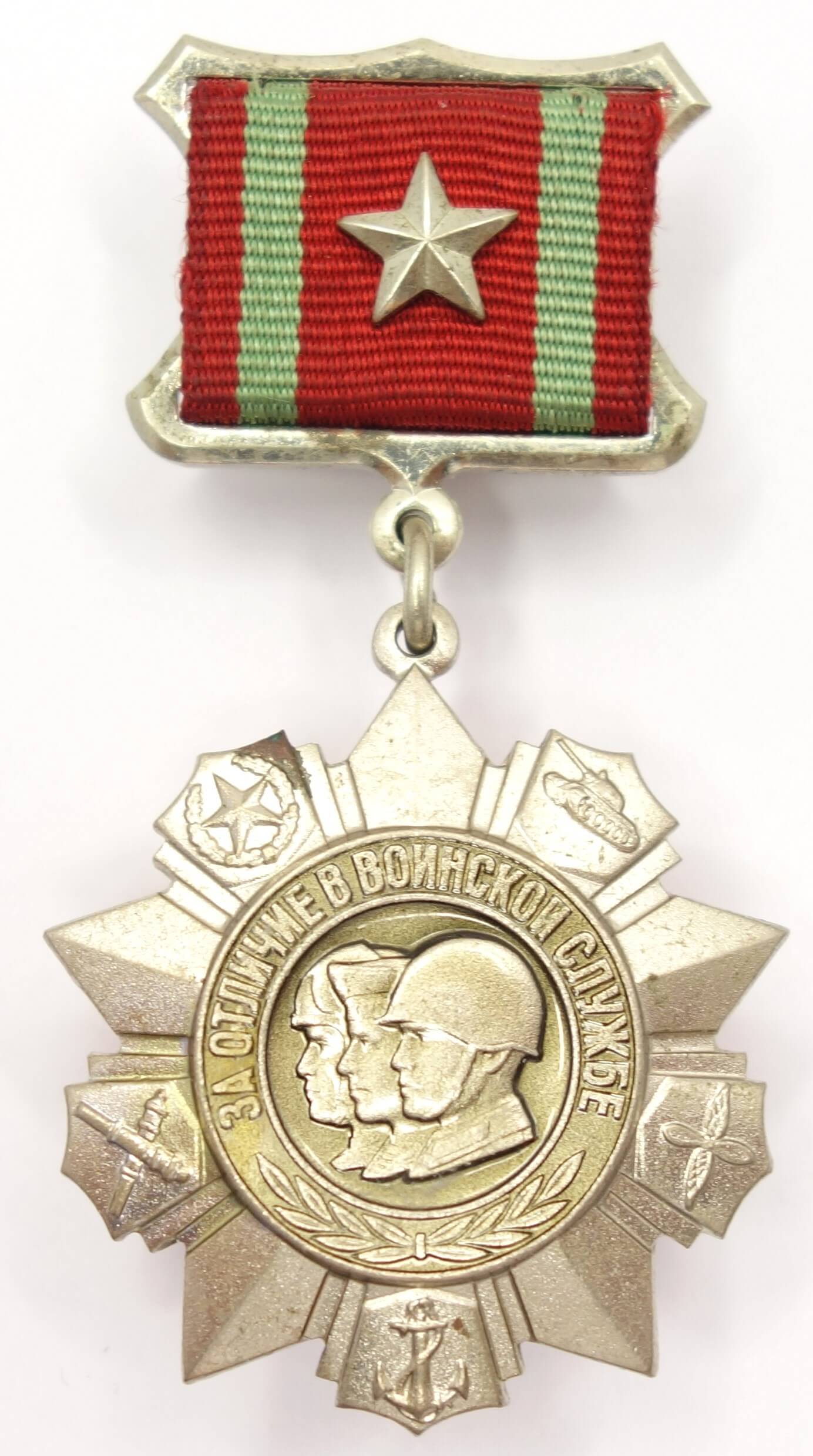 Awarded to soldiers of the Soviet Army, Navy, border and internal troops: for excellent performance in combat and political training; for special distinction in exercises and manoeuvres in combat service and combat duty; for bravery, selflessness, and other services, shown during military service.