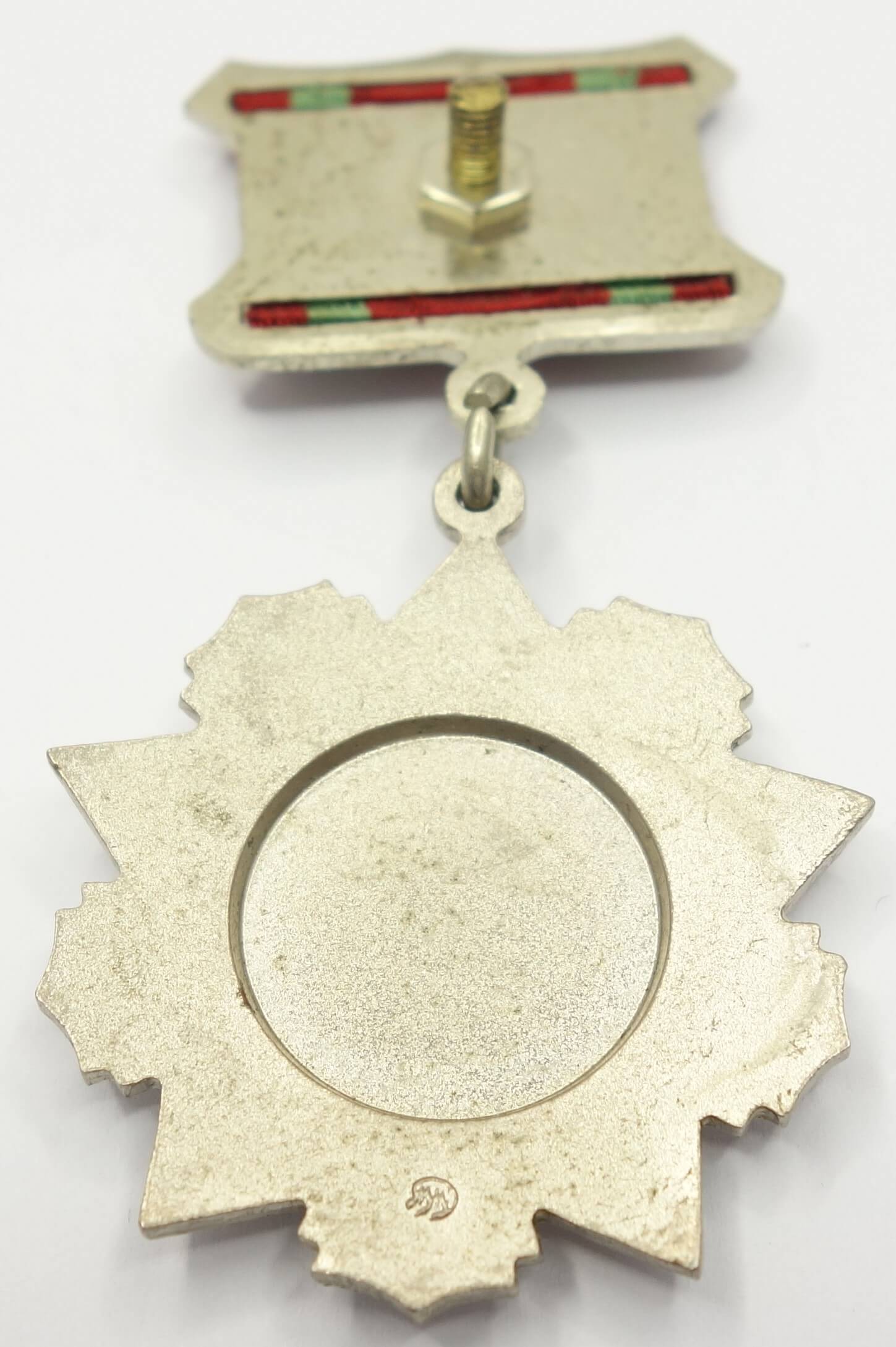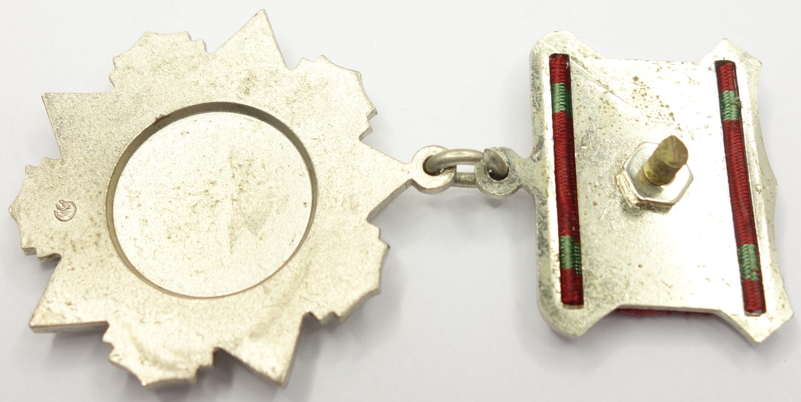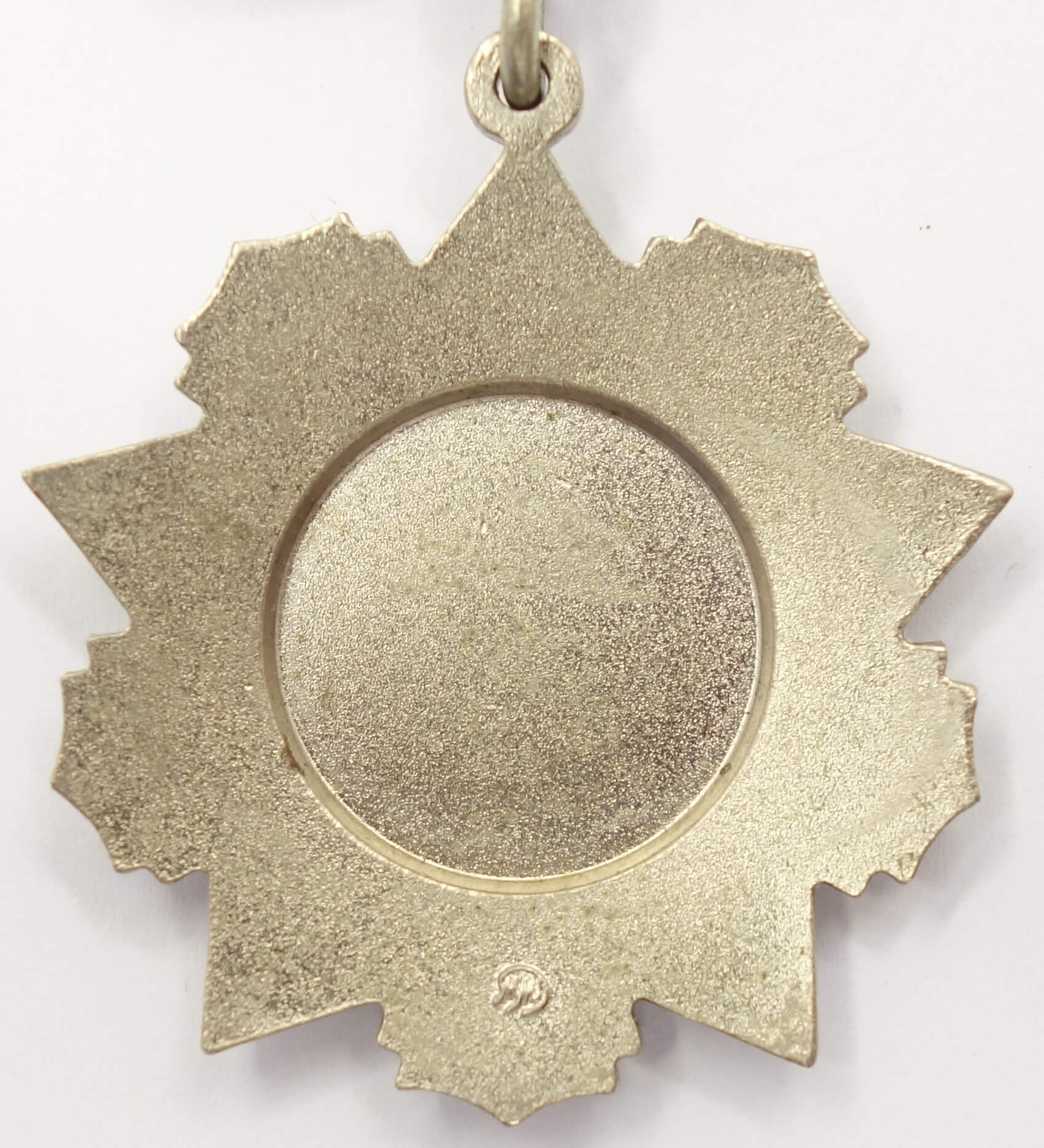 Made of German silver and lacquer. The medal measures 36.88 mm in width, 40.90 mm in height including the eyelet and weighs 17.0 grams without its suspension.