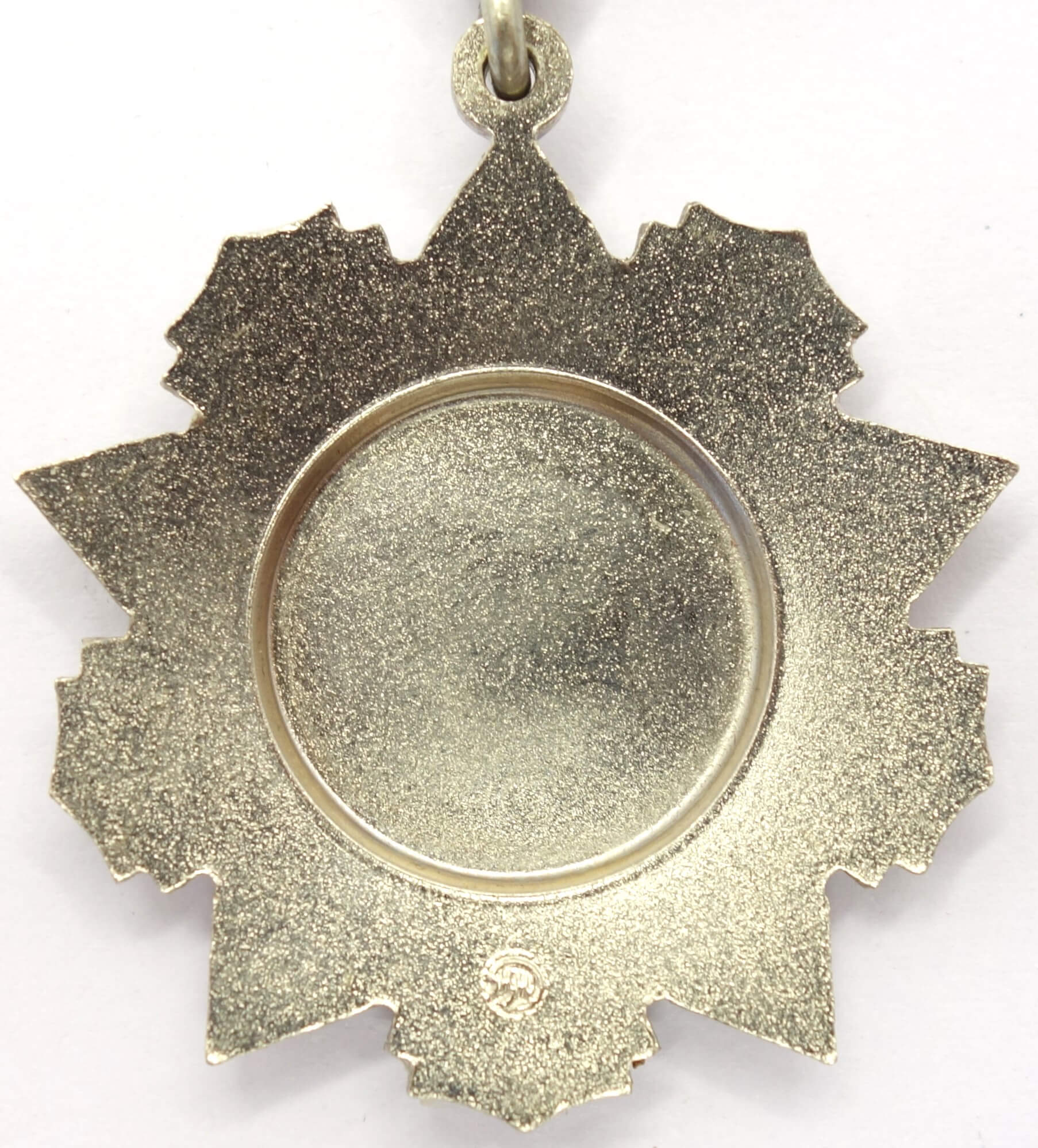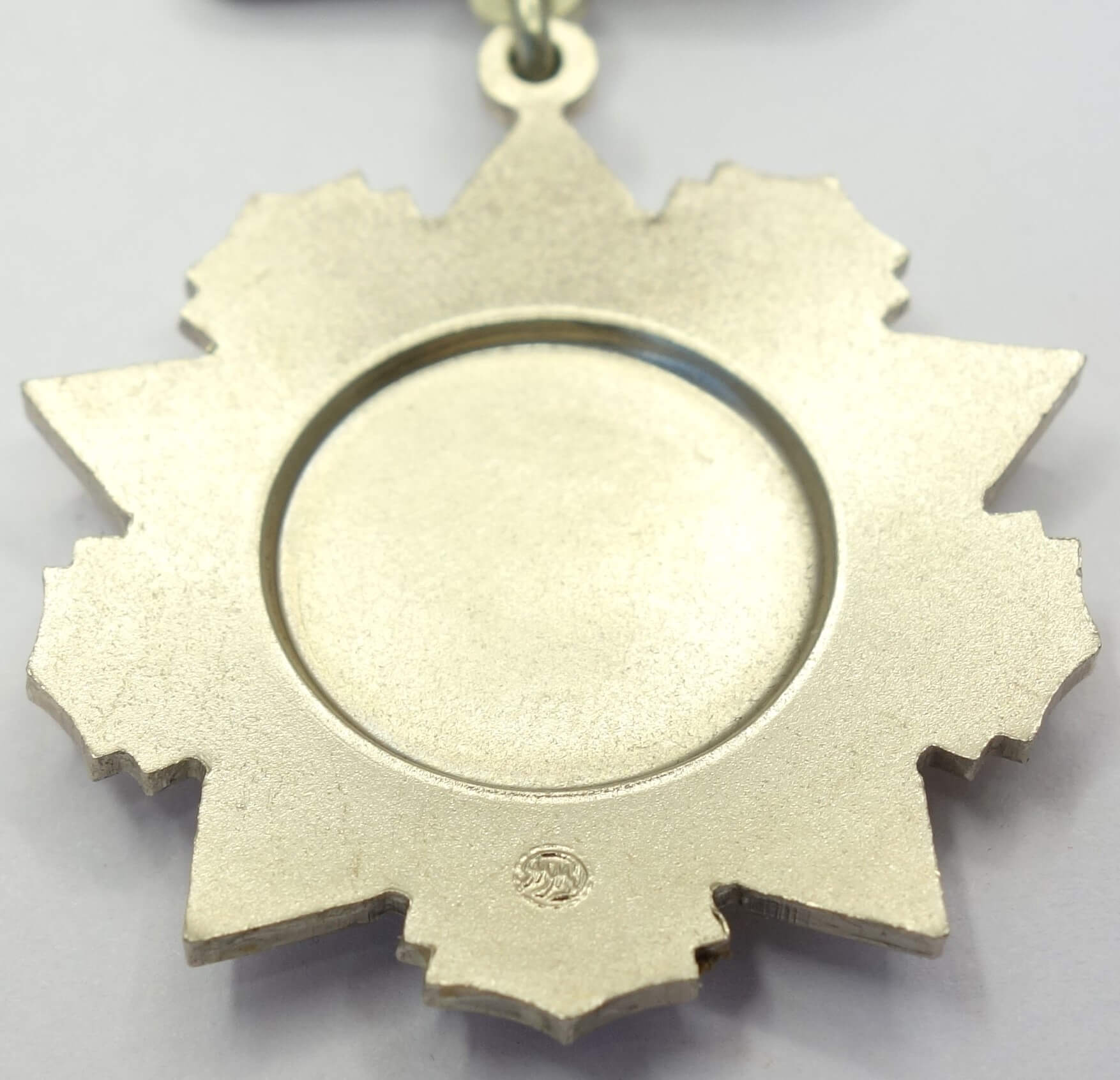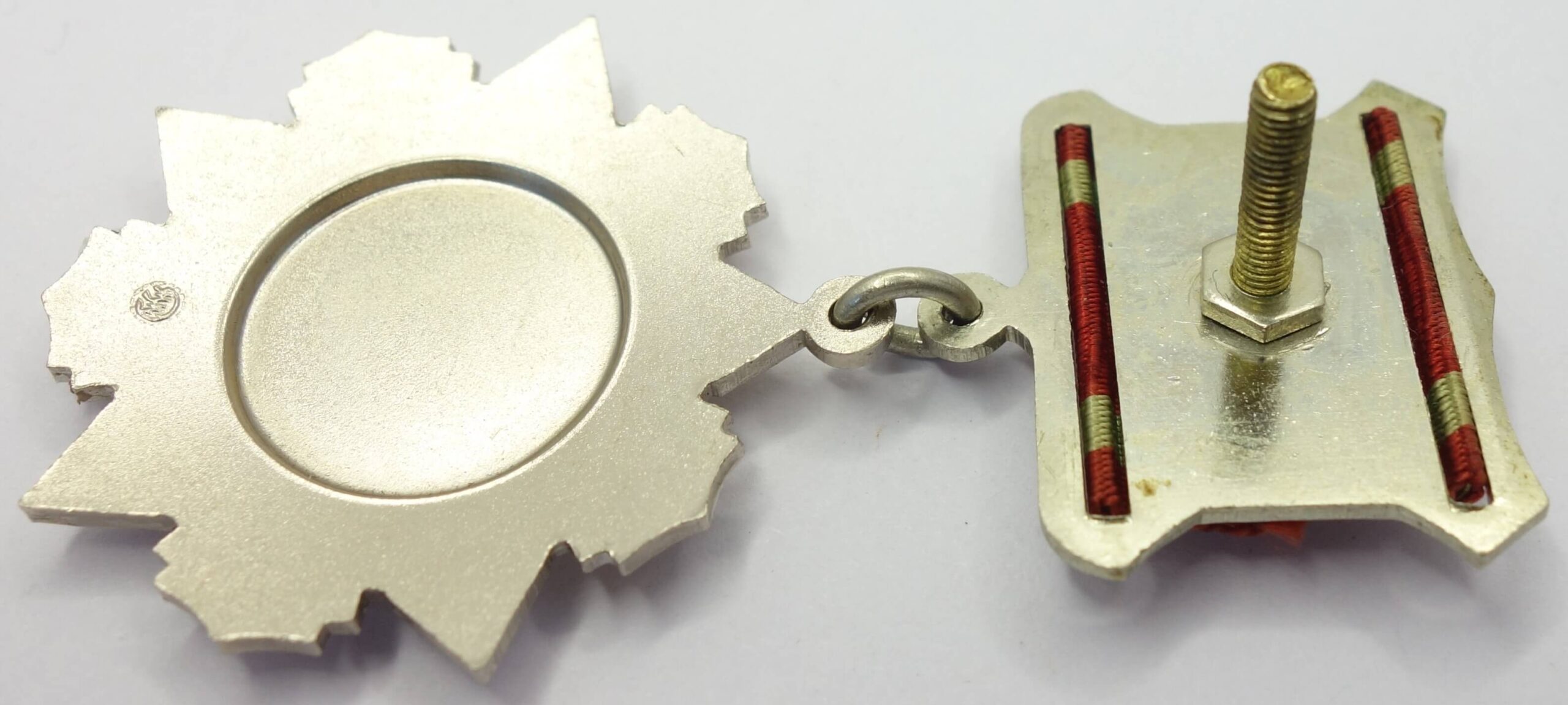 Made of German silver and lacquer. The medal measures 36.77 mm in width, 40.97 mm in height including the eyelet and weighs 15.6 grams without its suspension.