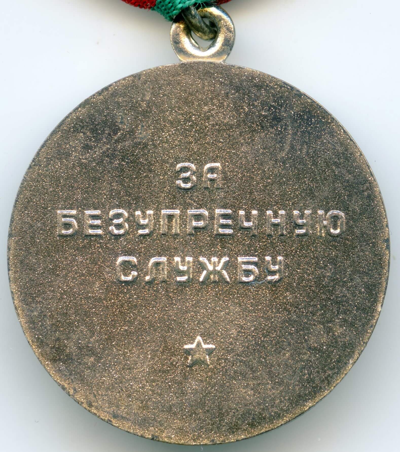 The Medal “For Impeccable Service” (Russian; Медаль «За безупречную службу») was a Soviet military award for long service.