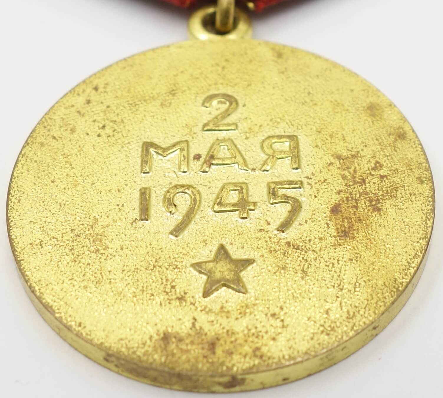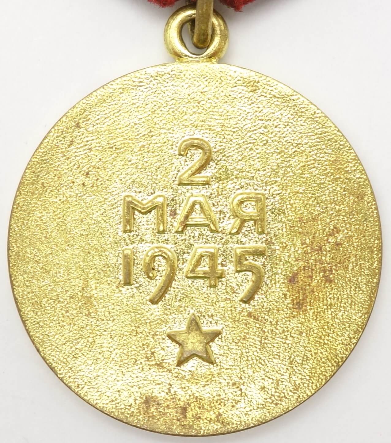 ‘Voenkomat variation’ medals are post-war issues that were awarded by a Voenkomat (Military Commissariat) at the veteran’s place of residence. The reasons for the late issue could vary but in most instances, the Voenkomat medals were “catch-up” awards to those who had taken part in the battle and then somehow overlooked by the awarding authorities during WW2 and in the immediate post-war years. The Medal “For the Capture of Berlin” was awarded to soldiers of the Red Army, Navy, and troops of the NKVD, direct participants of the assault and capture of the city as well as to the organizers and leaders of combat operations in the capture of this city.