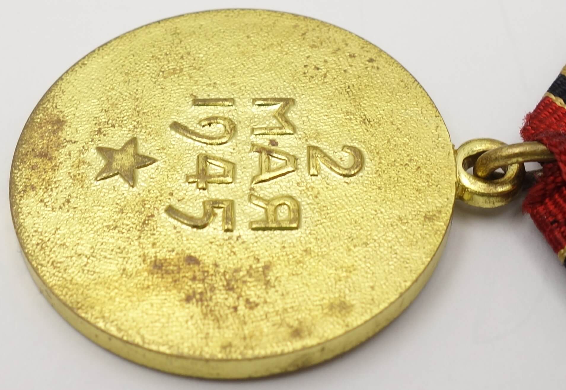 This medal is in near mint condition with all details crisp and its original luster still present on both sides. The brass suspension and ribbon are time period to the medal and its connection ring has not been cut.
