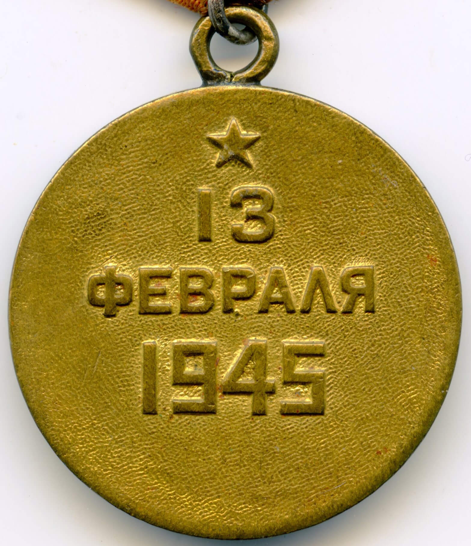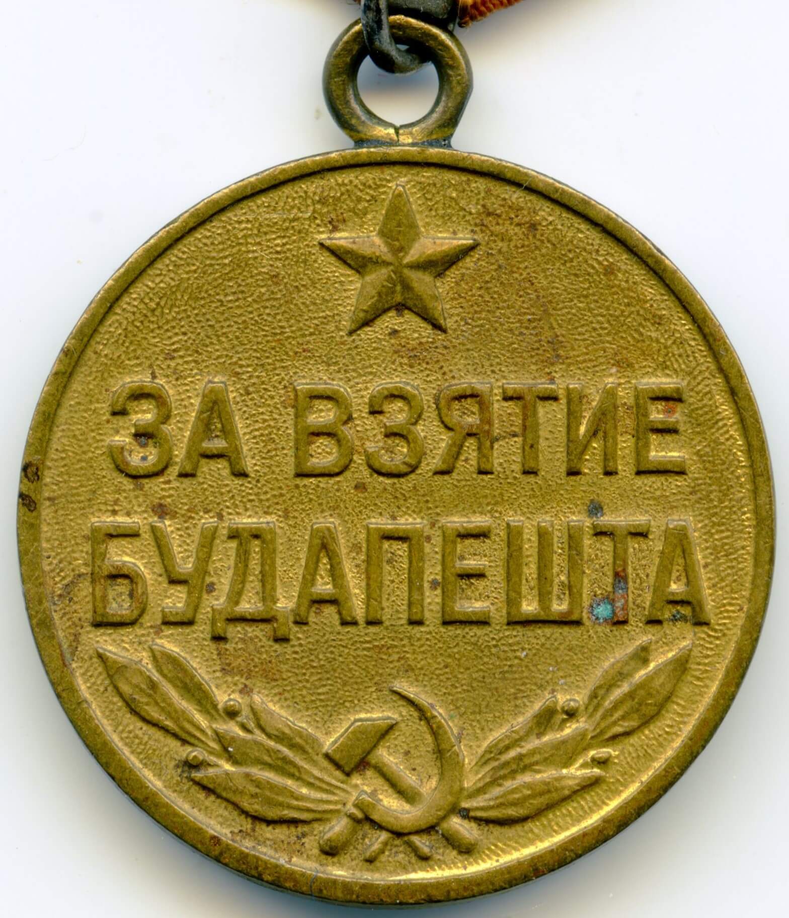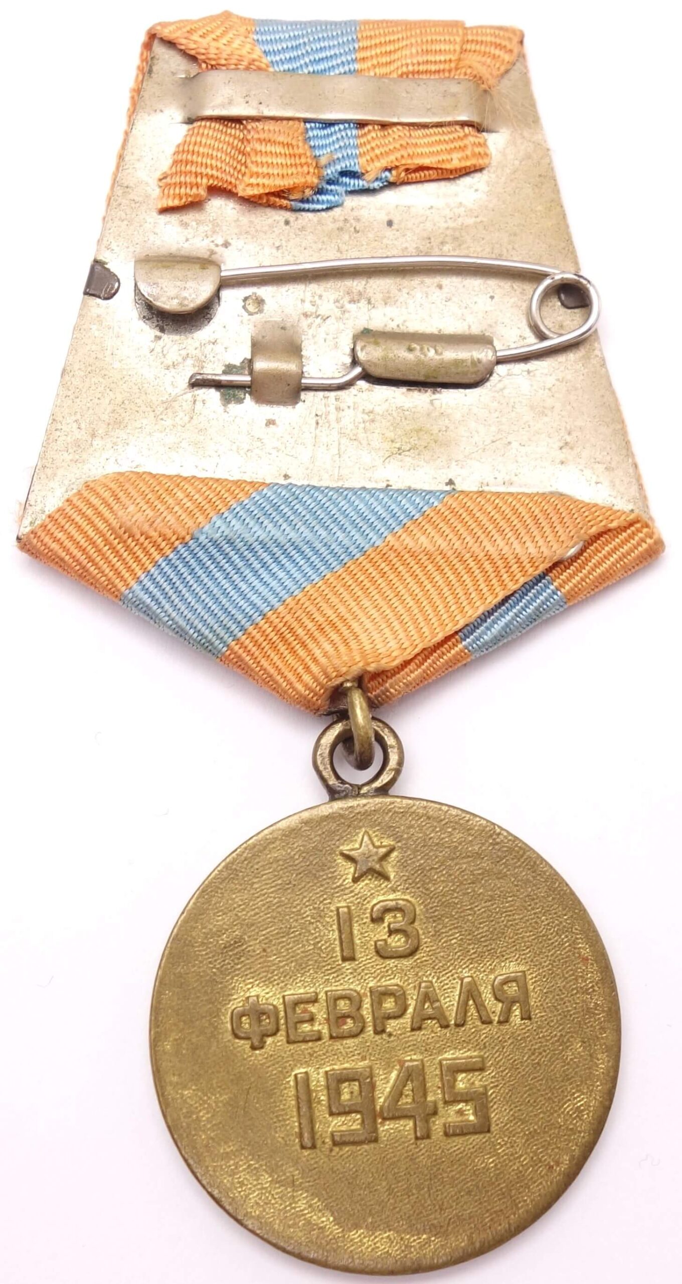 Awarded to Soviet service personnel who took part in the battle of Budapest between 20 December 1944 and 15 February 1945.