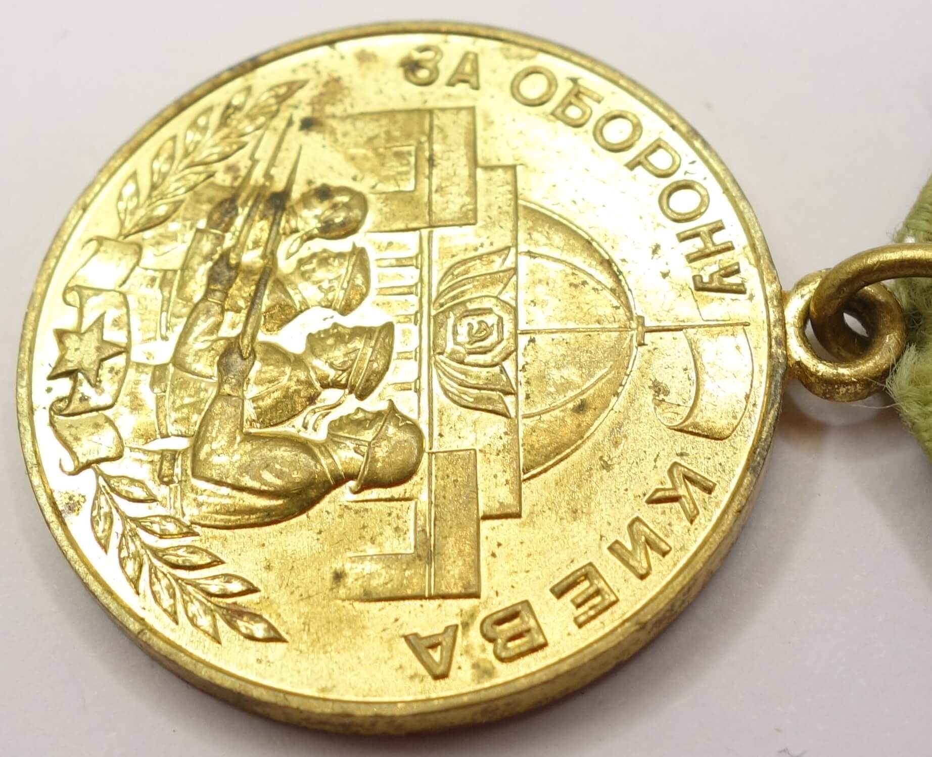 The Medal “For the Defence of Kiev” was awarded to all participants in the defence of the Hero-City of Kiev – Soviet Army soldiers and troops of the former NKVD, as well as all the workers who participated in the defense of Kiev in the ranks of the militia, in the construction of fortifications, who worked in factories serving the needs of the front, members of the Kiev underground and partisans who fought against the enemy near Kiev.