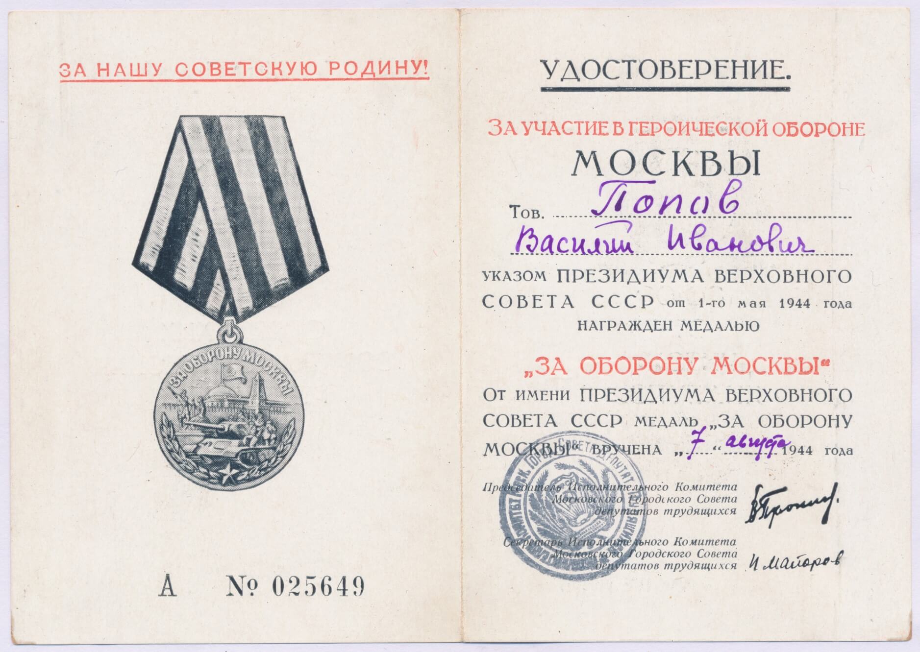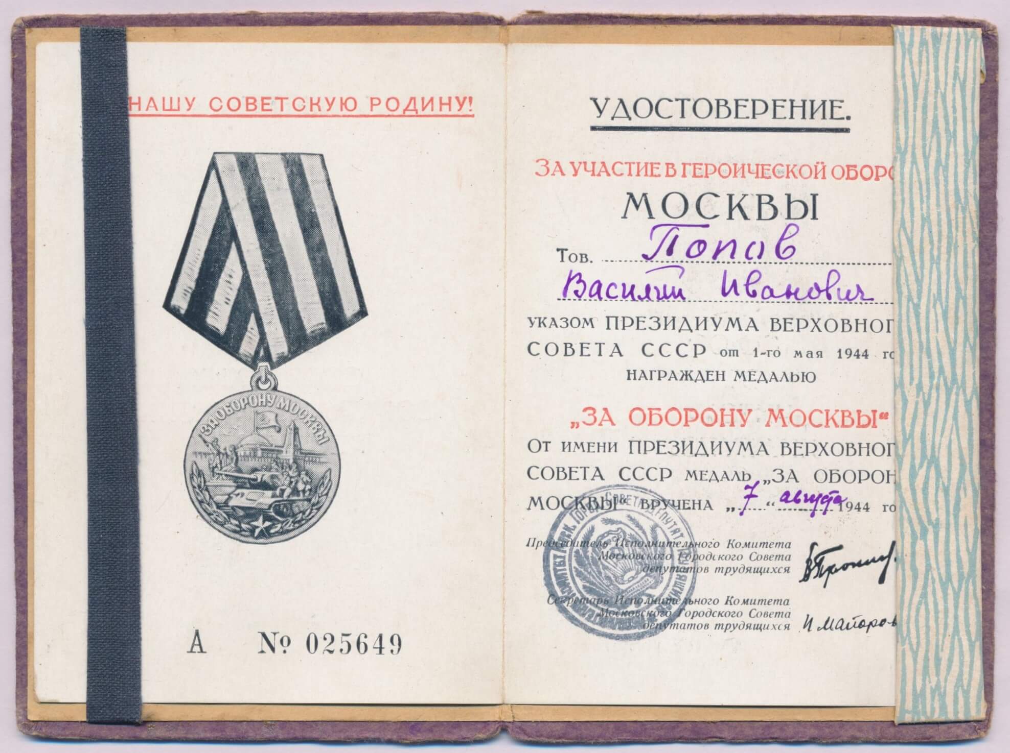 Awarded to Vasily Ivanovich Popov (Василий Иванович Попов)