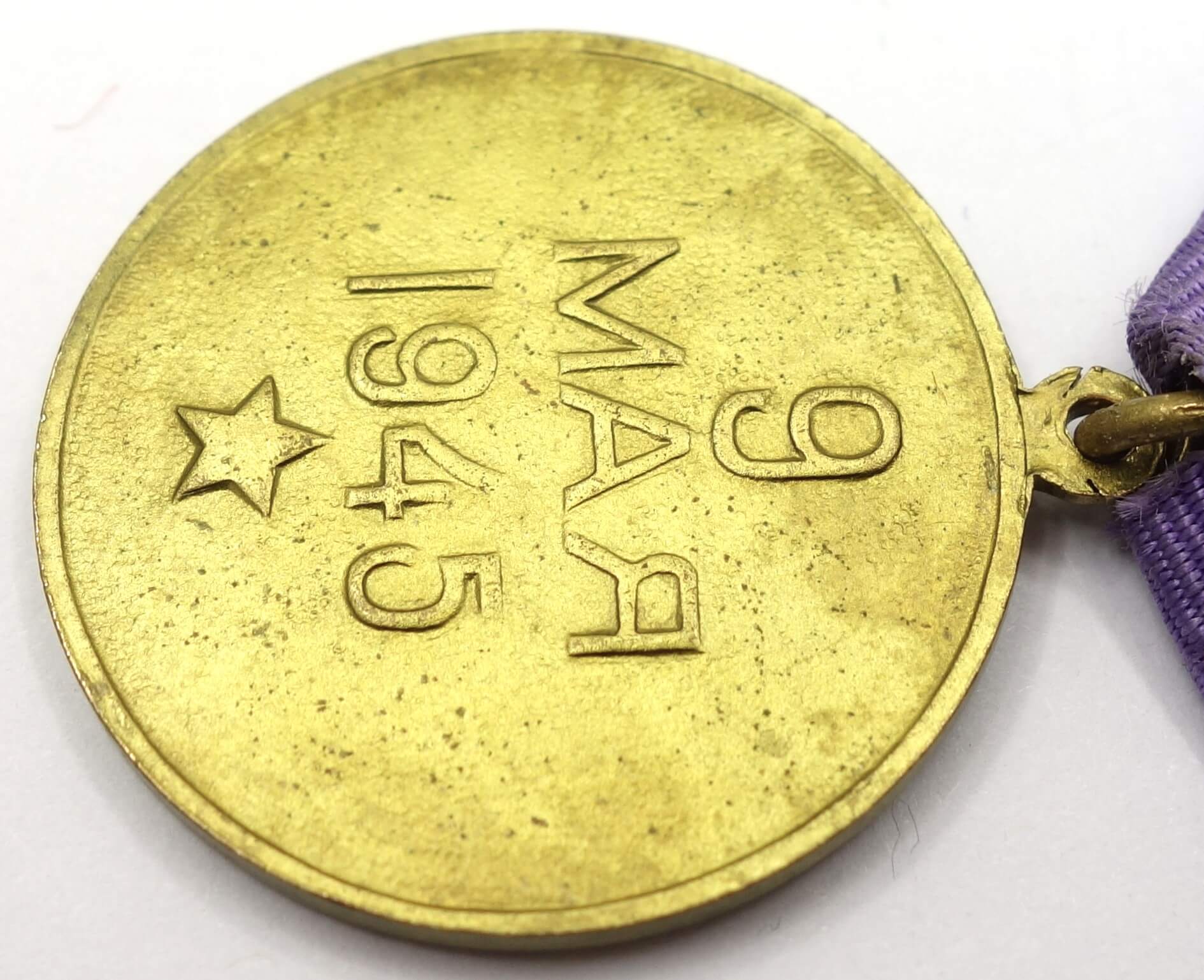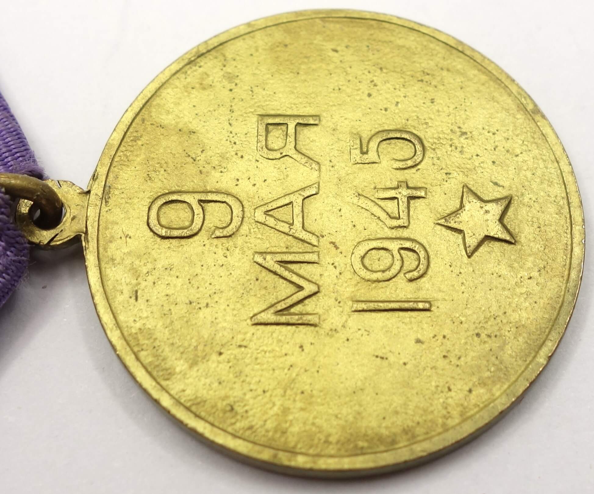 This medal is in good condition with light overall wear. Some of the original luster is still present and both sides show few dings and scratches. The brass suspension is typical for these medals and is also produced by Czechoslovakian.