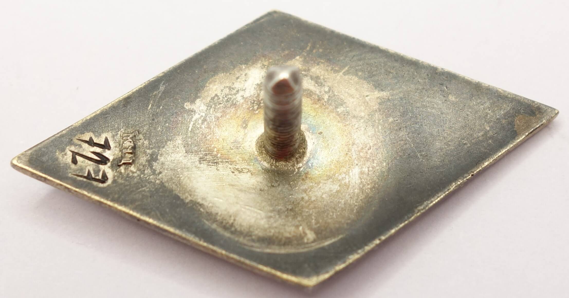 This badge is made of solid silver and enamels. It measures 44.54 mm in height, 25.36 mm in width and it weighs 9.3 gram without its screwplate.
