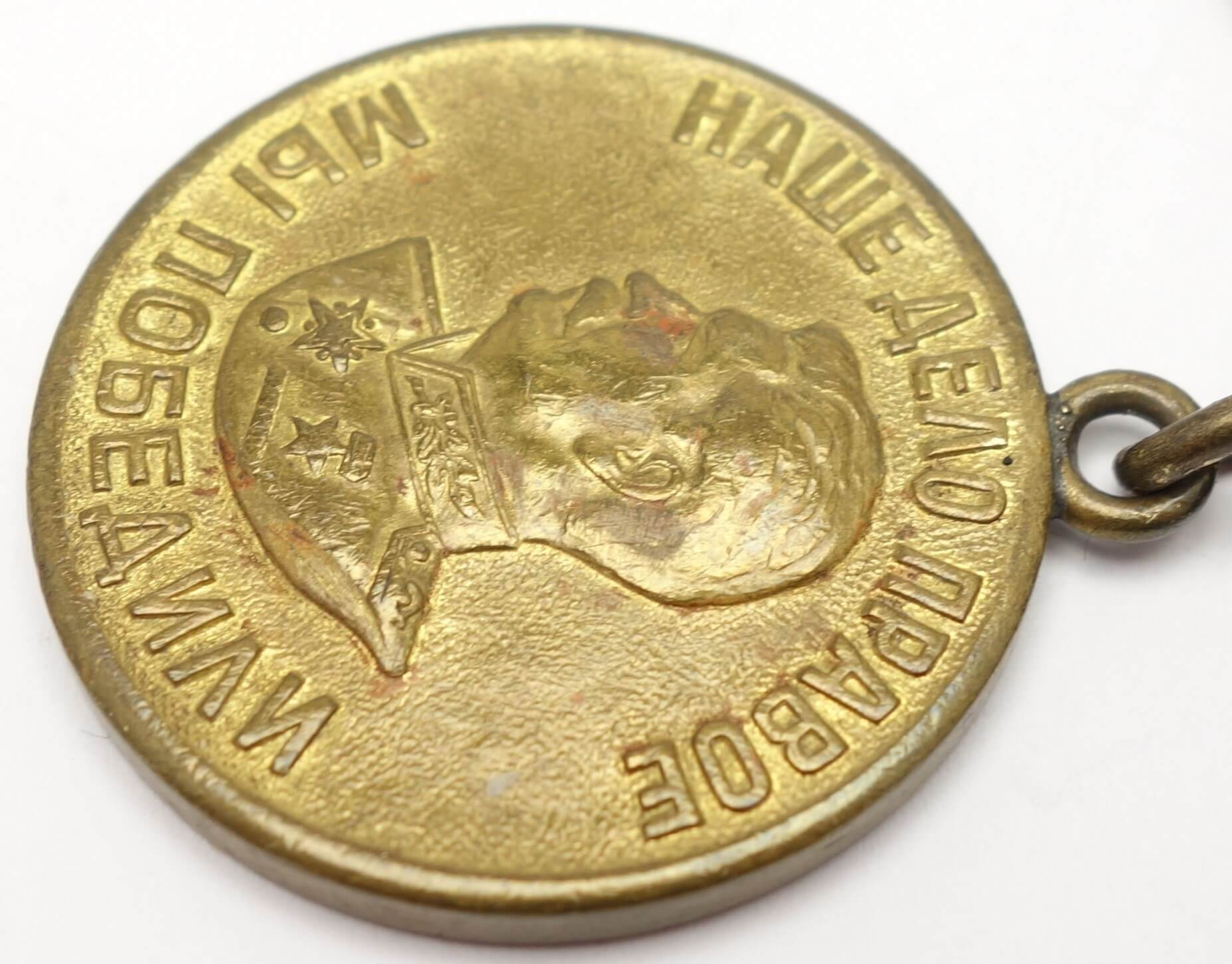 In worn but decent condition with an appealing patina to the silver on both sides. The enamels are generally well preserved and without repairs but show a tiny chip on the star of the Spasskaya Tower and some superficial flaking on the lower banner. The raised areas show medium to strong wear and signs of polishing but most details are still visible. Its connection ring has not been cut.