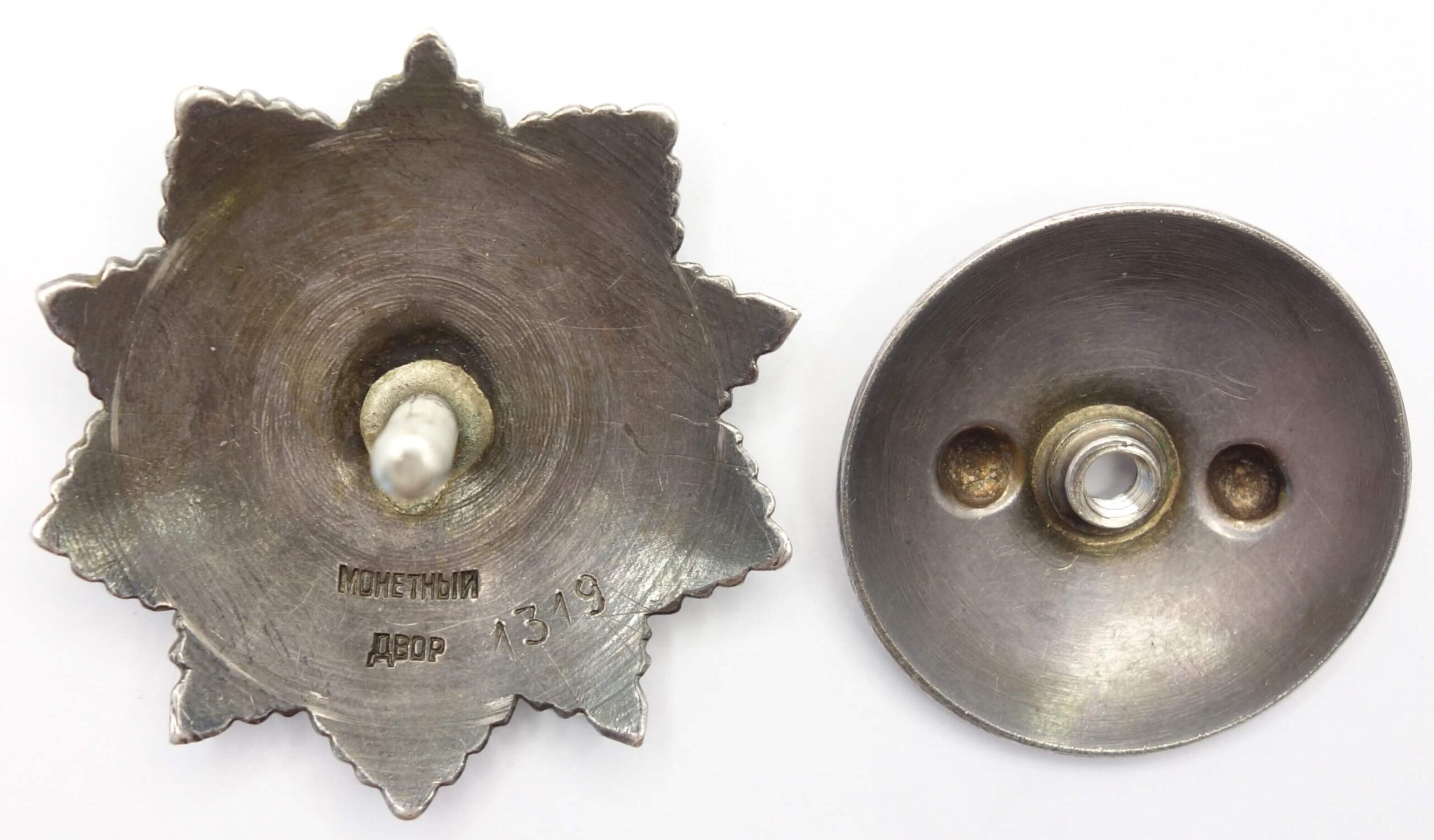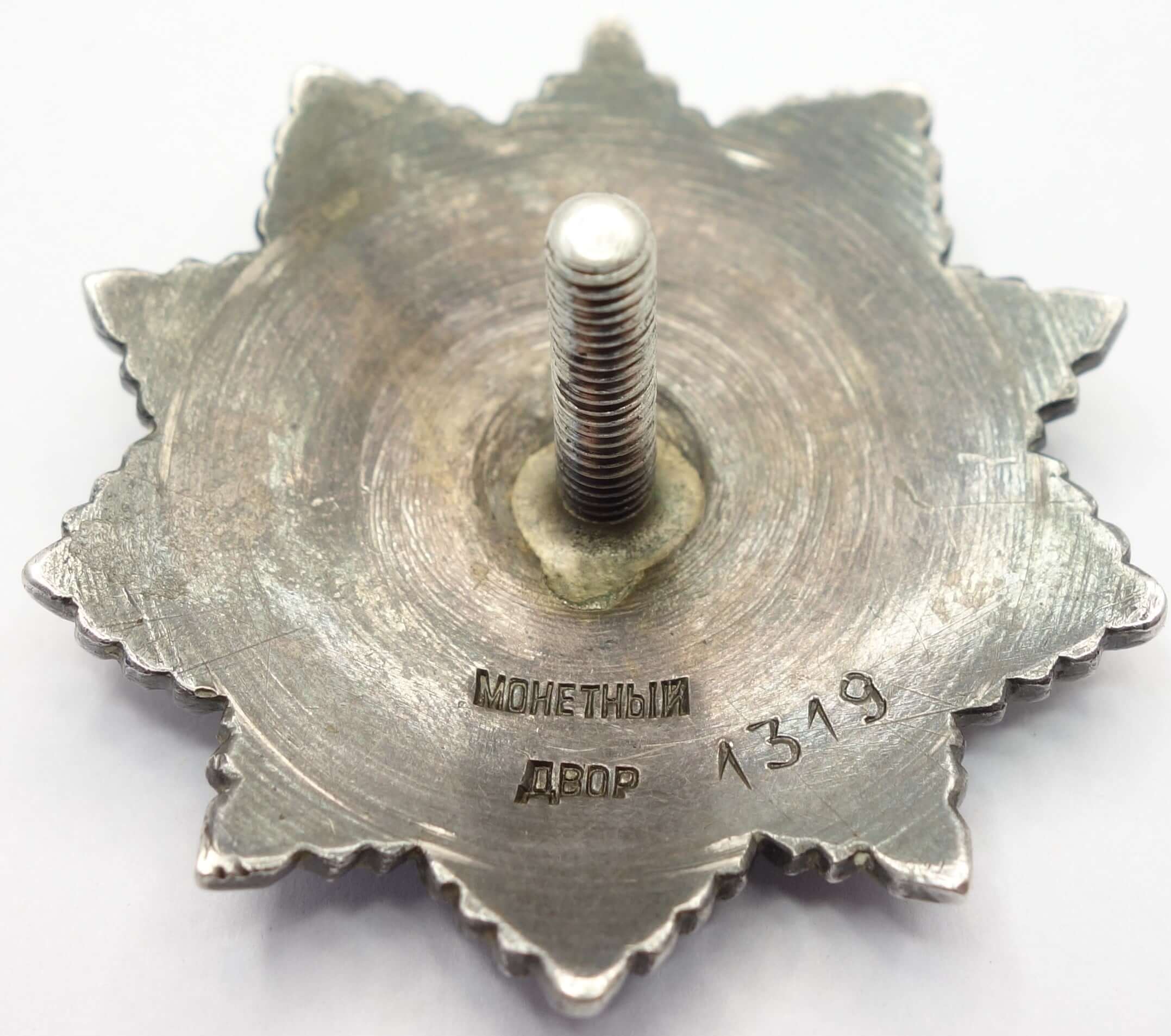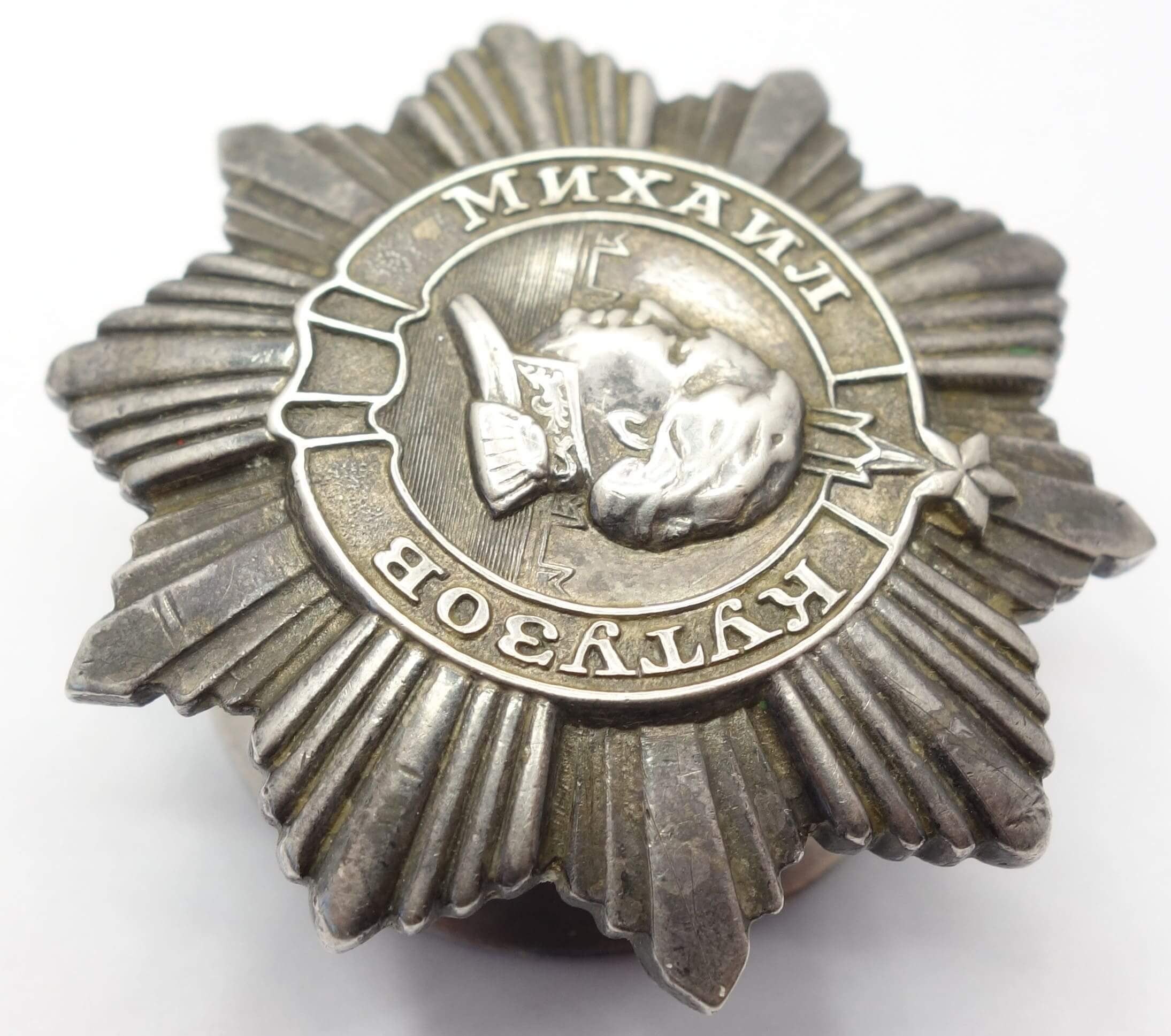 In nice condition, with most details visible and moderate wear to the raised areas such as Kutuzov’s bust. Both sides show a medium silver patina and relatively few dings and scratches. The long screw (typical for these orders) has not been shortened, and there are no repairs. The order comes with its period silver screwplate.