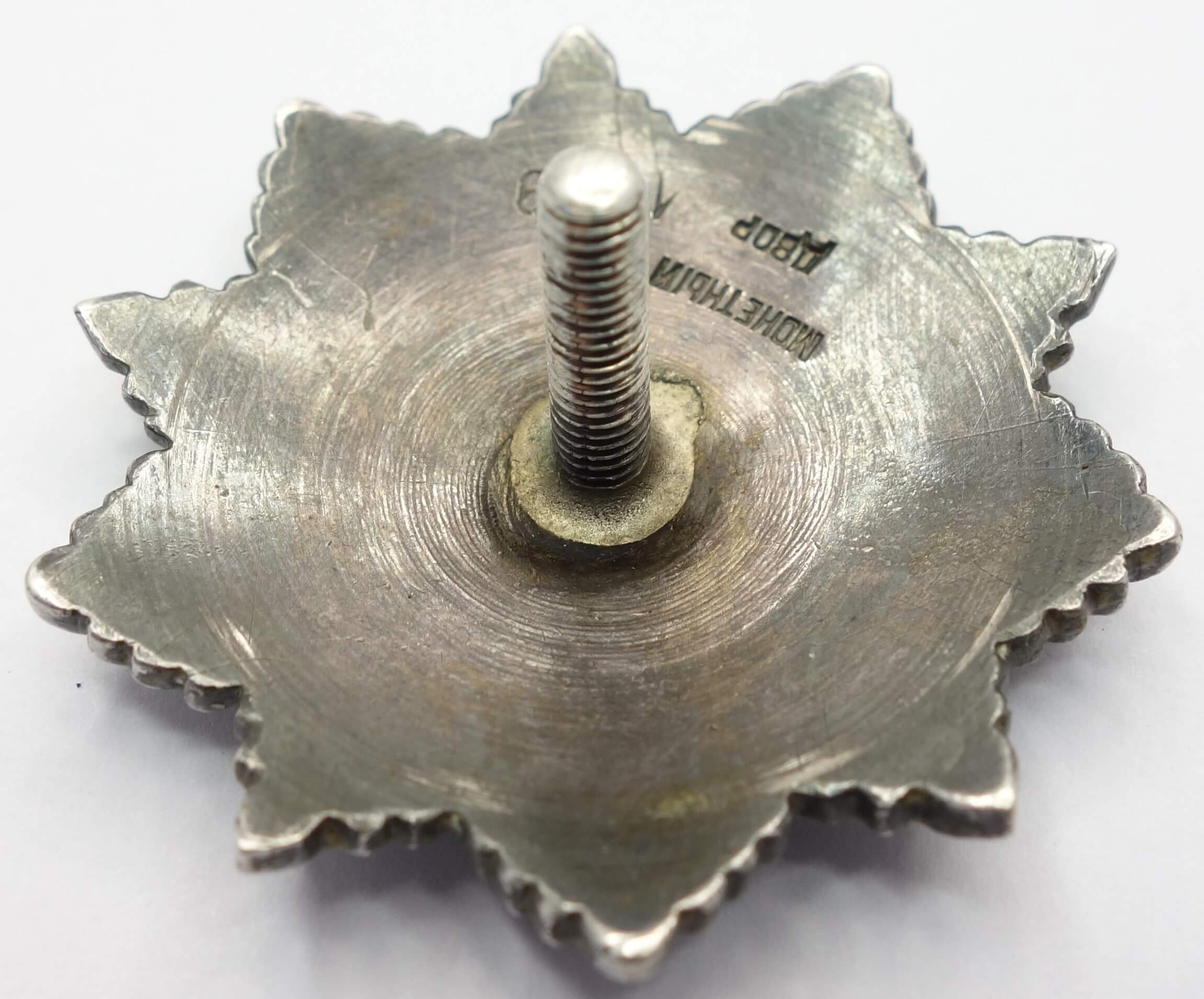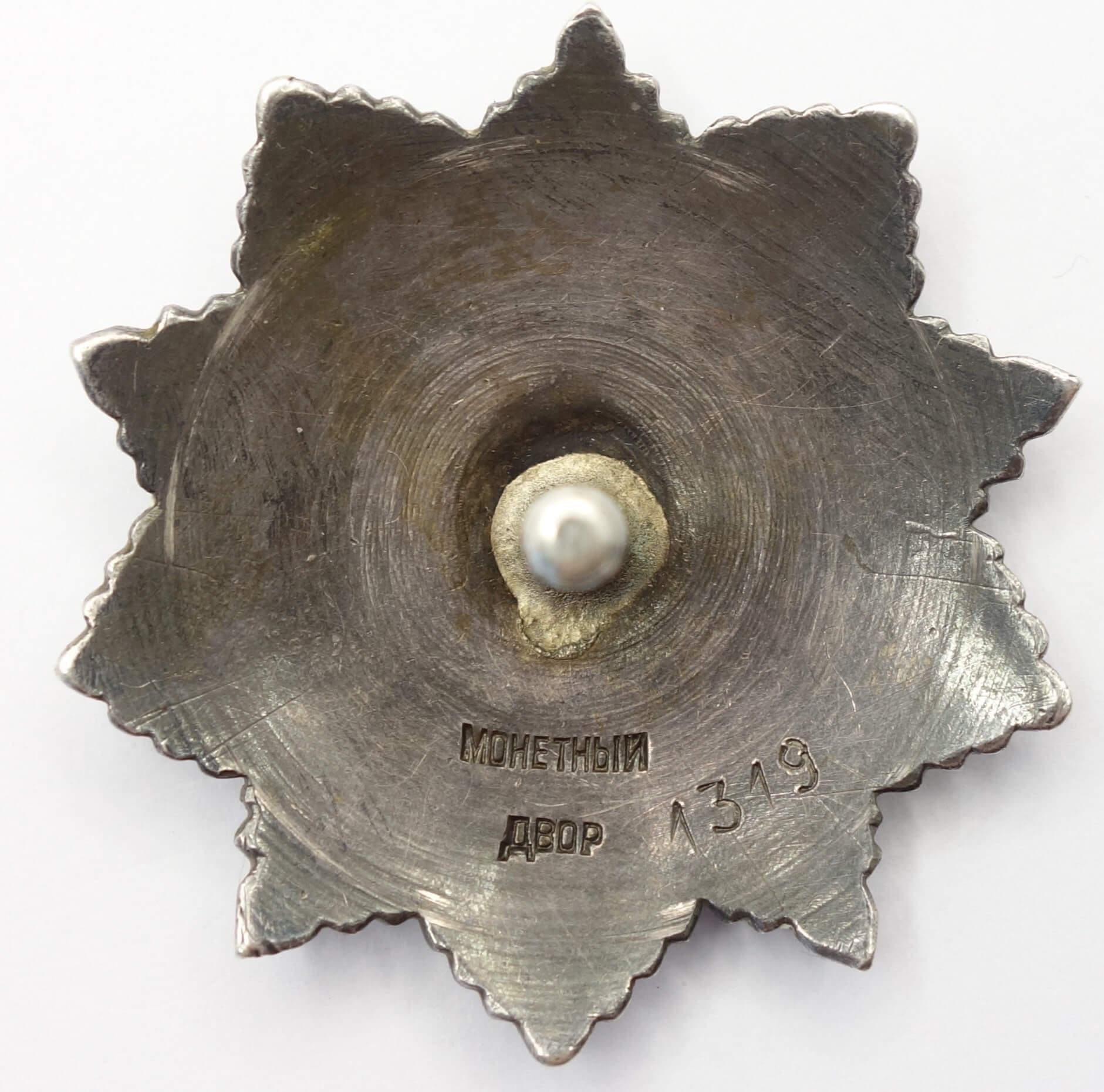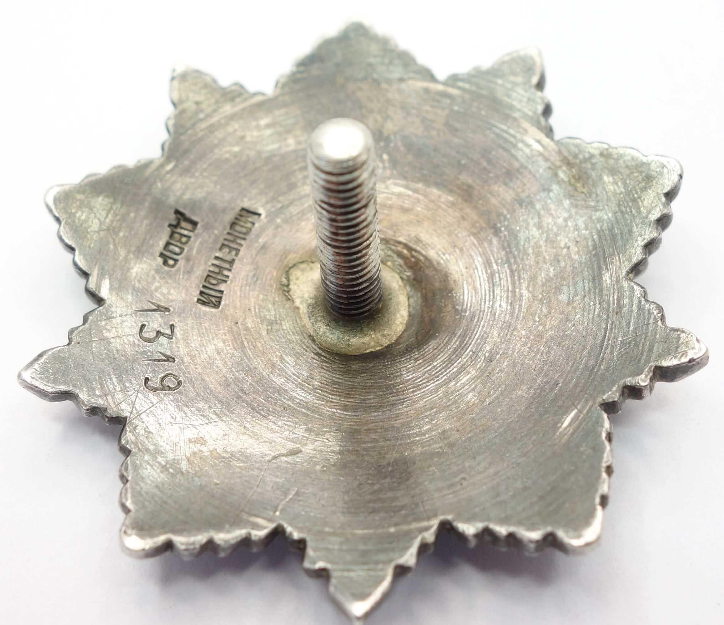 In nice condition, with most details visible and moderate wear to the raised areas such as Kutuzov’s bust. Both sides show a medium silver patina and relatively few dings and scratches. The long screw (typical for these orders) has not been shortened, and there are no repairs. The order comes with its period silver screwplate.