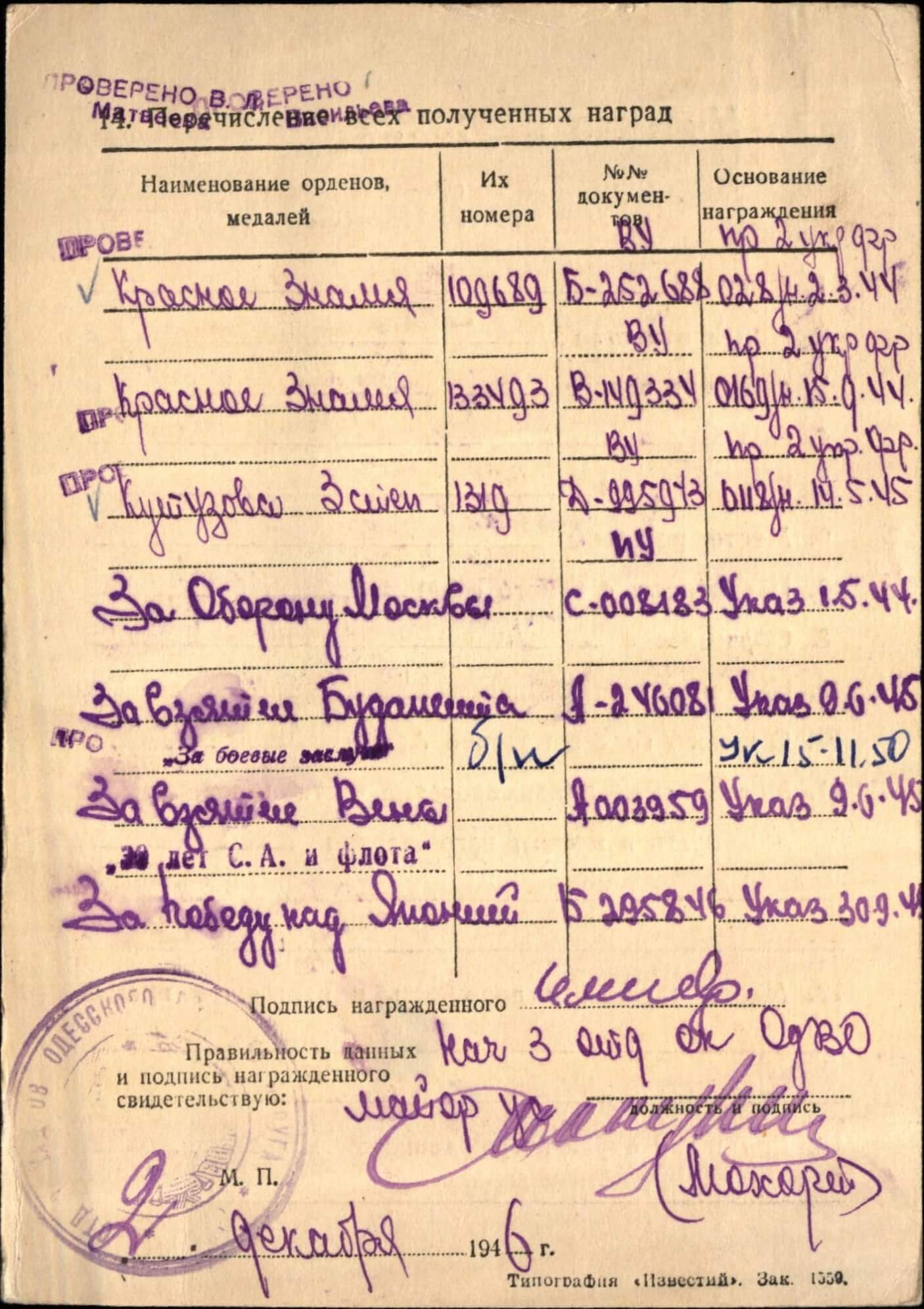 We found two images of Major Matveev online. One shows him wearing his Order of Kutuzov 3rd class.