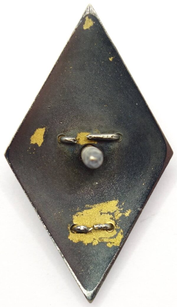 The badge is in excellent condition with most details visible crisp and no repairs. The red and white enamels are well preserved and both sides of the badge show an attractive dark patina. The badge comes with its original silver screwplate and its screw has not been shortened.