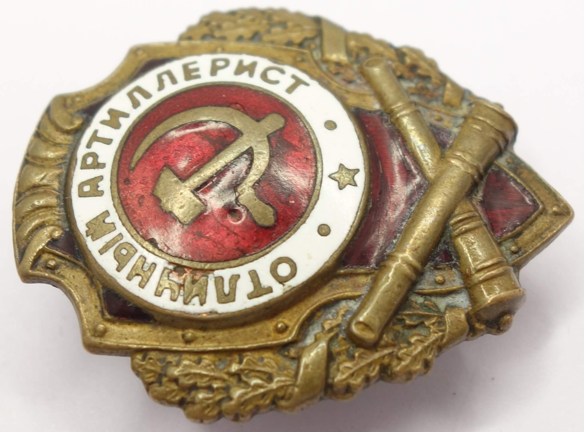 This excellent Artillery Badge is made of brass and enamels. Measures 45.23 mm in height, 37.09 mm in width and it weighs 14.9 grams without its screwplate.