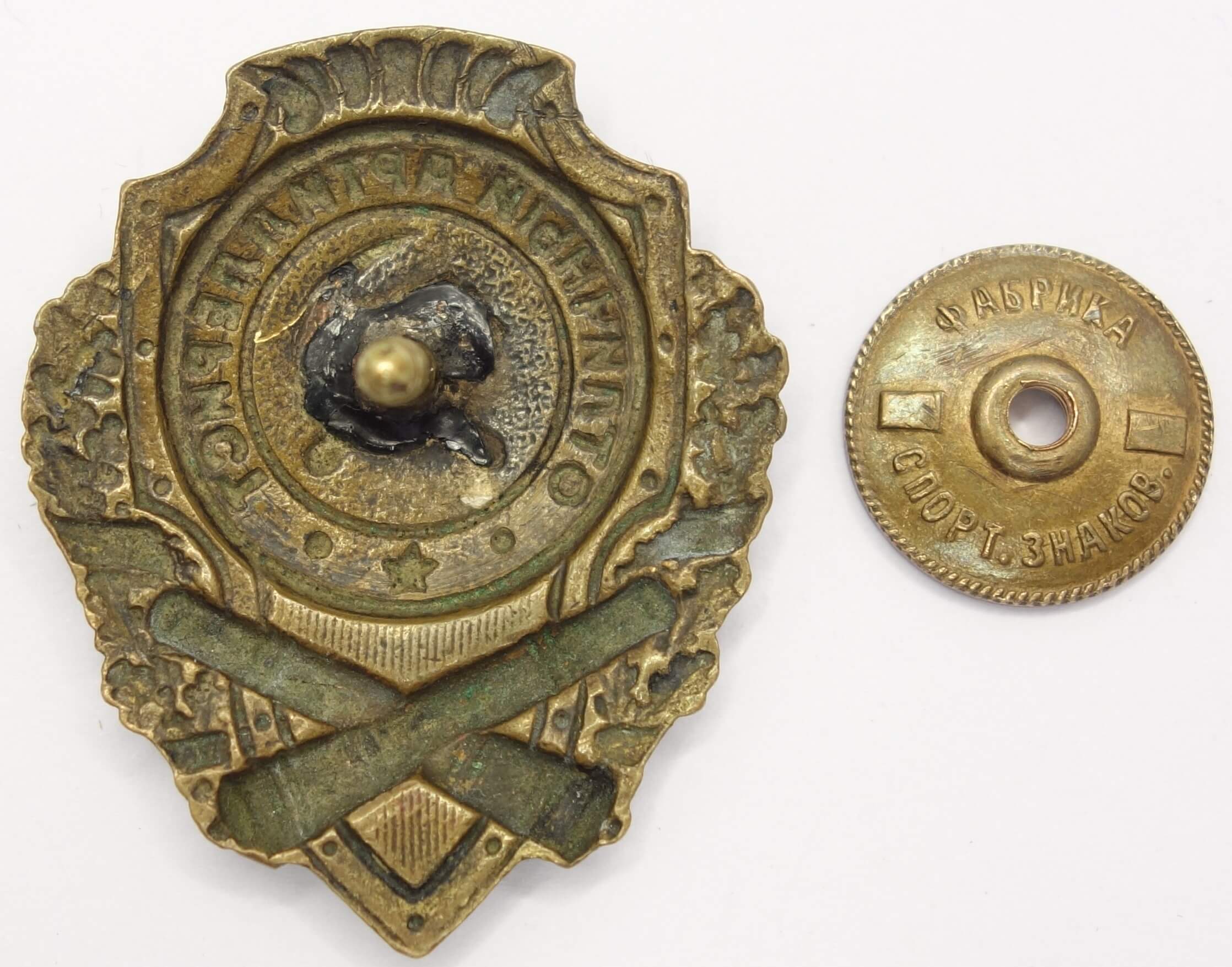 In good overall condition with its details mostly visible. The red and white enamels are mostly present without repairs but show some internal cracks and flaking. Its screw has not been shortened and the badge comes with a well fitted screwplate which is however not correct for this badge.