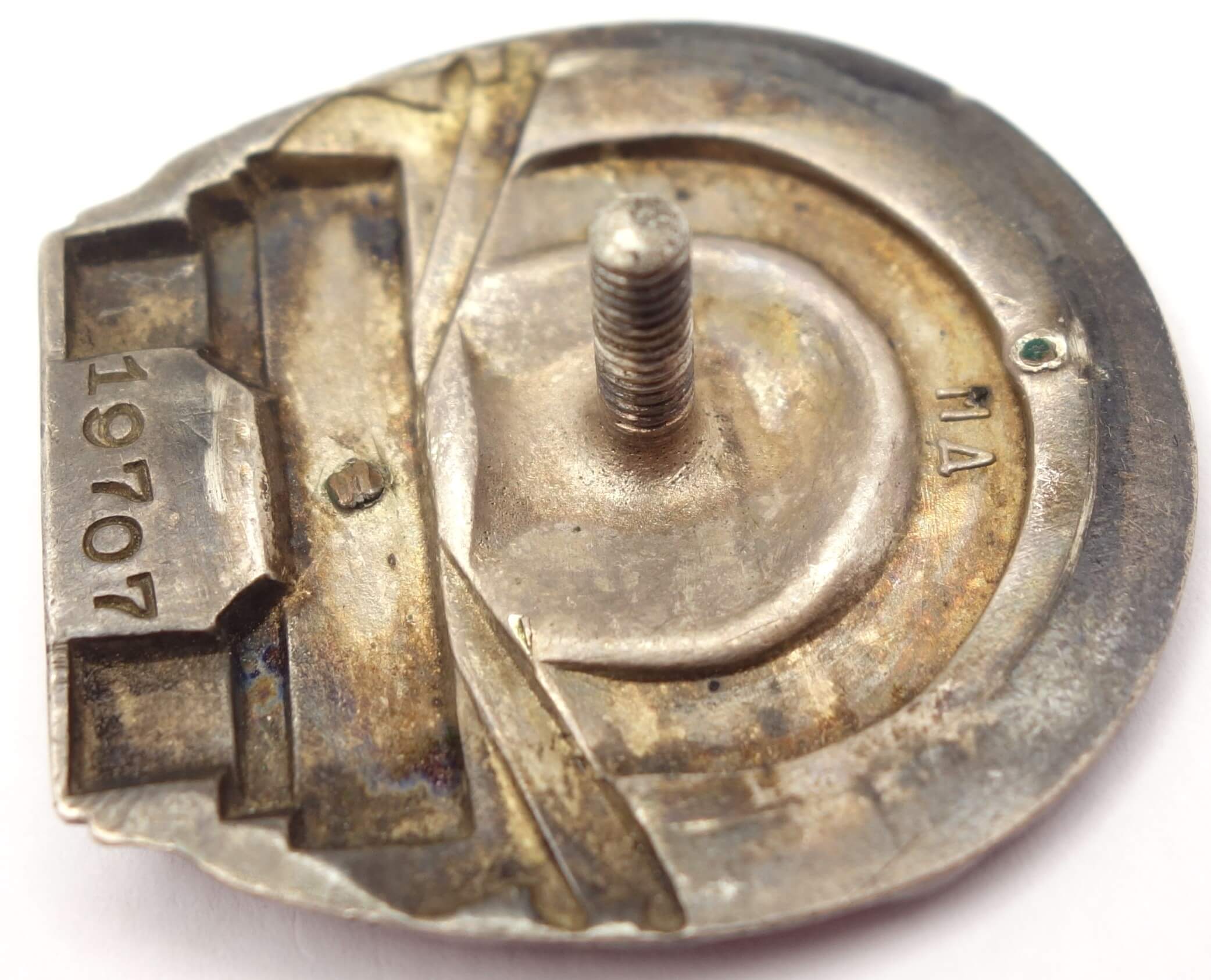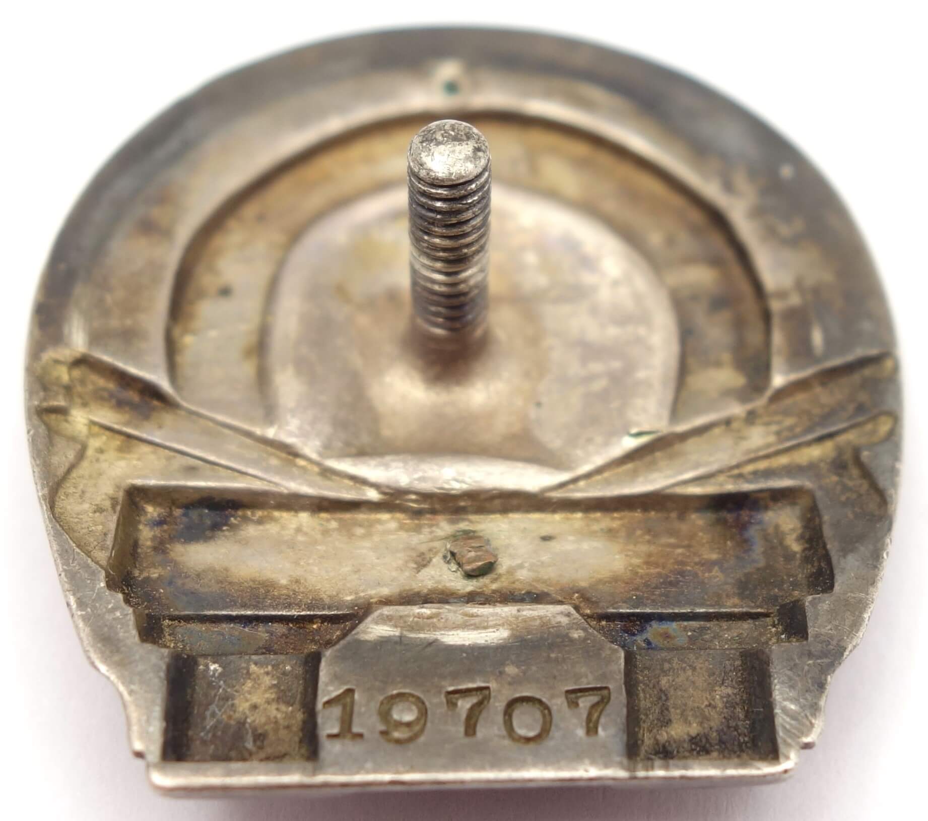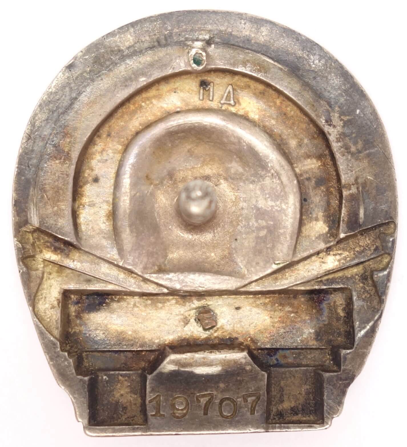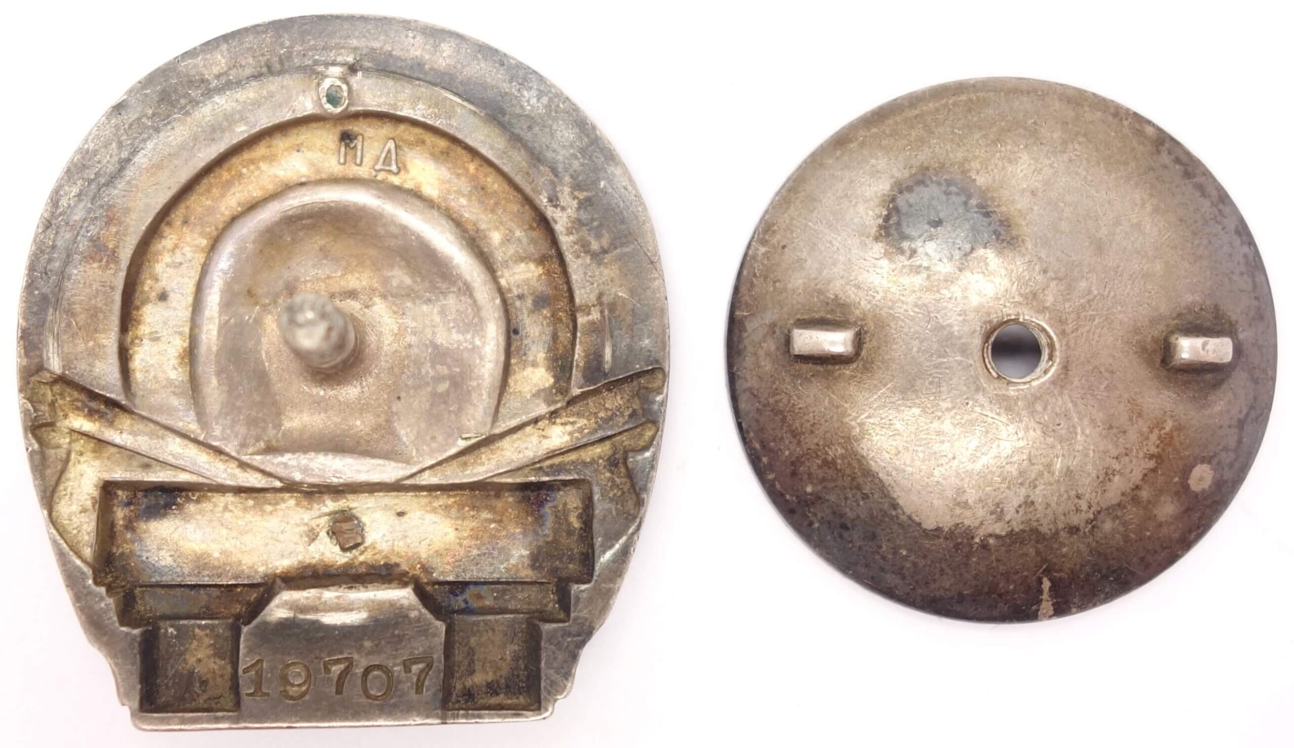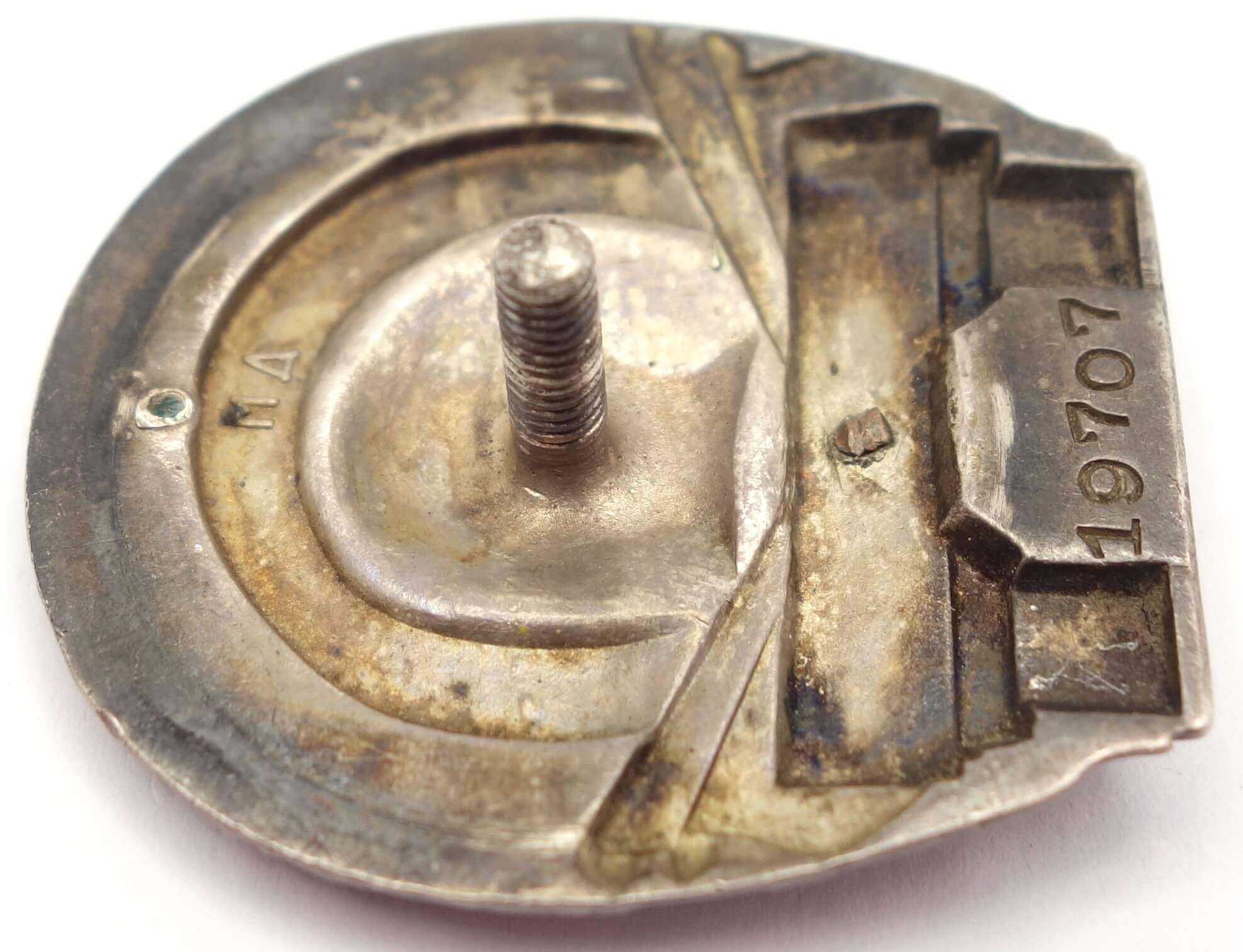 In nice condition with light to medium overall wear. The details of the higher laying parts of the metro are still well defined. The beautiful red enamels are mostly present without repairs and show some light chipping on the separately attached ‘M’. The well fitted silver screwplate is authentic to the badge and its screw has not been shortened.