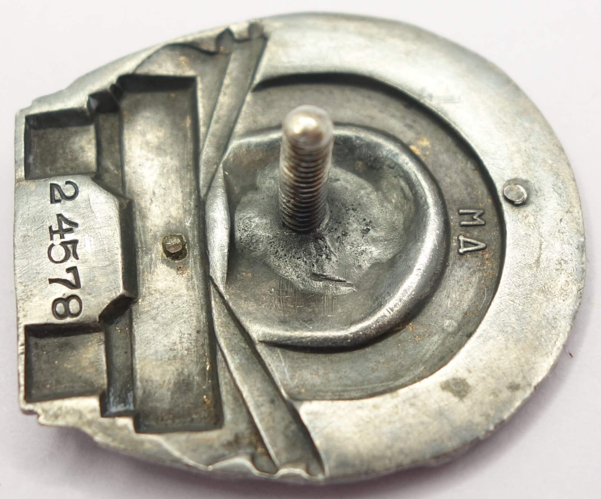 In good condition with medium overall wear. The raised details, such as the metro car, remain clear despite some small dings and scratches. The red enamels are well preserved overall, with a minor repair visible on the lower right above the letters ‘Редь’. The badge is complete with its well-fitted silver screwplate and protective middle plate, both show silver hallmarks.
