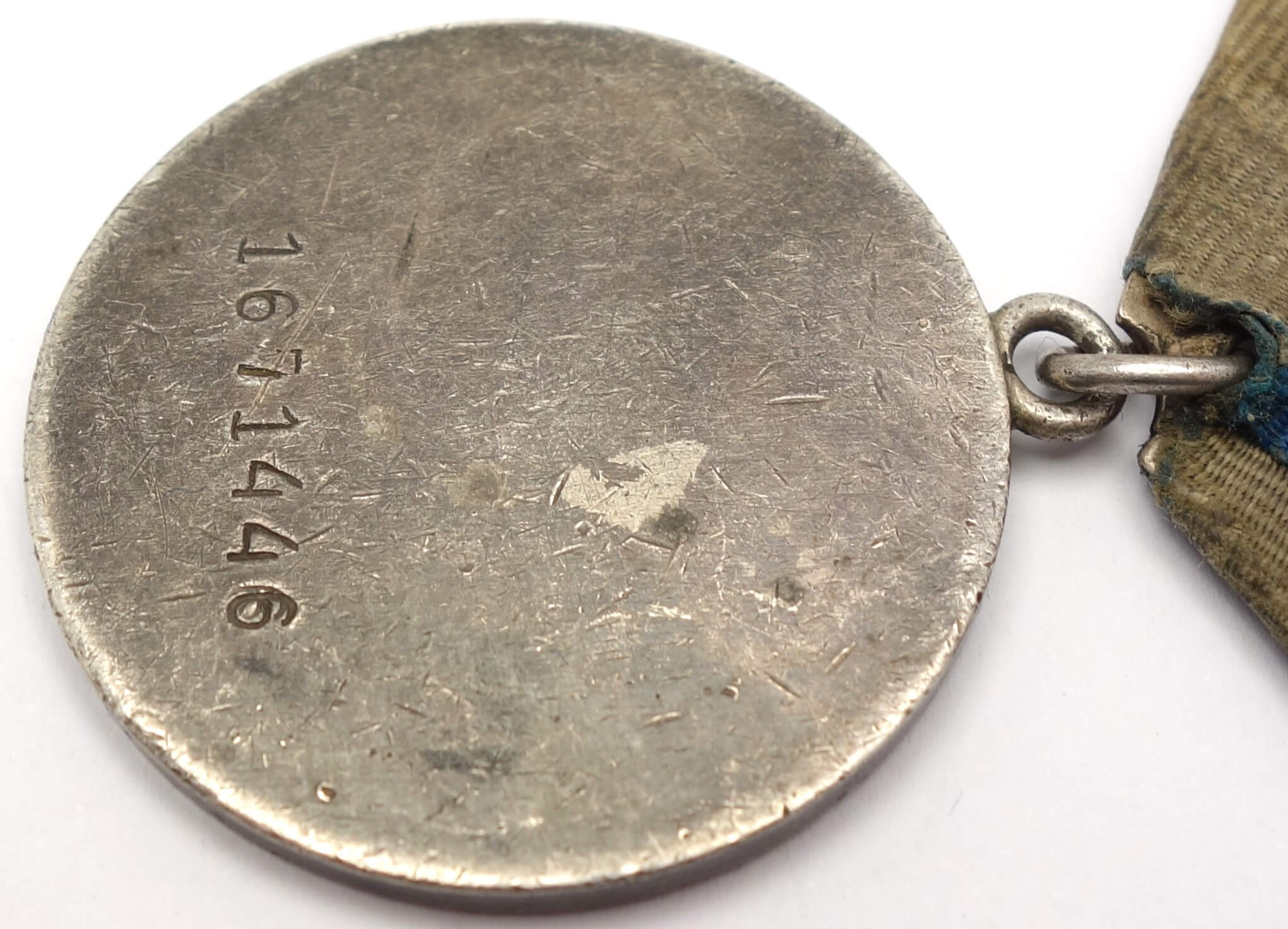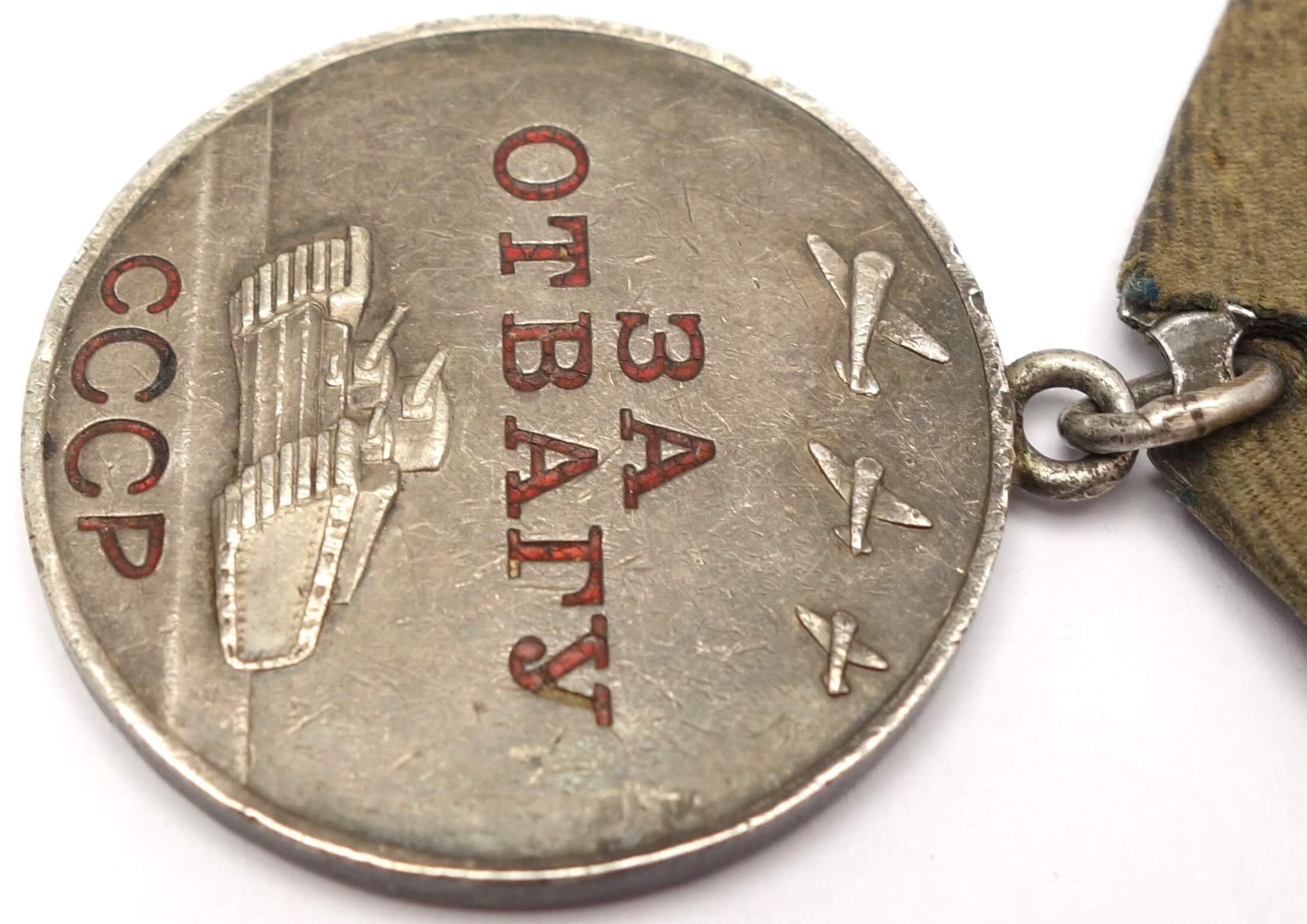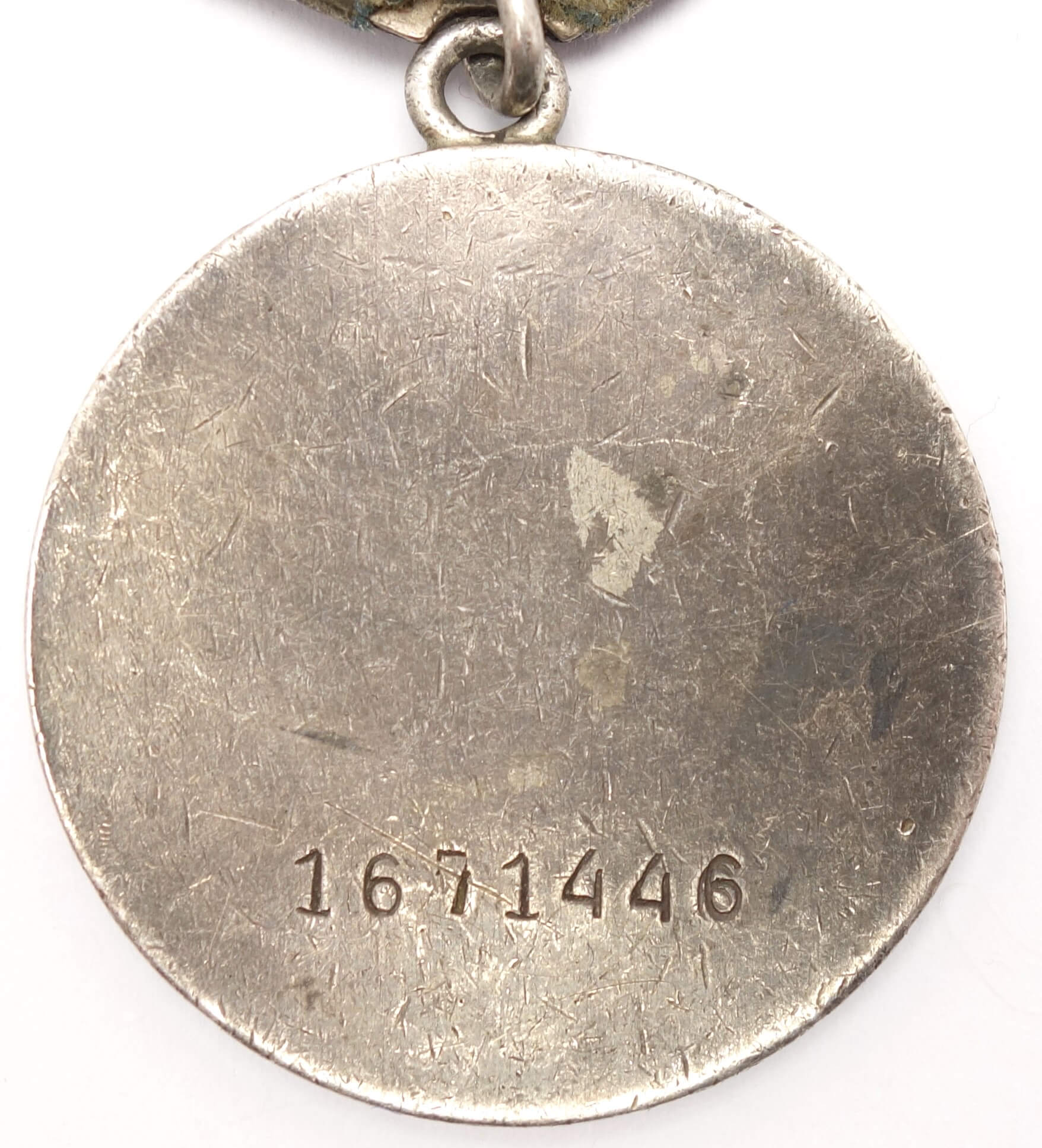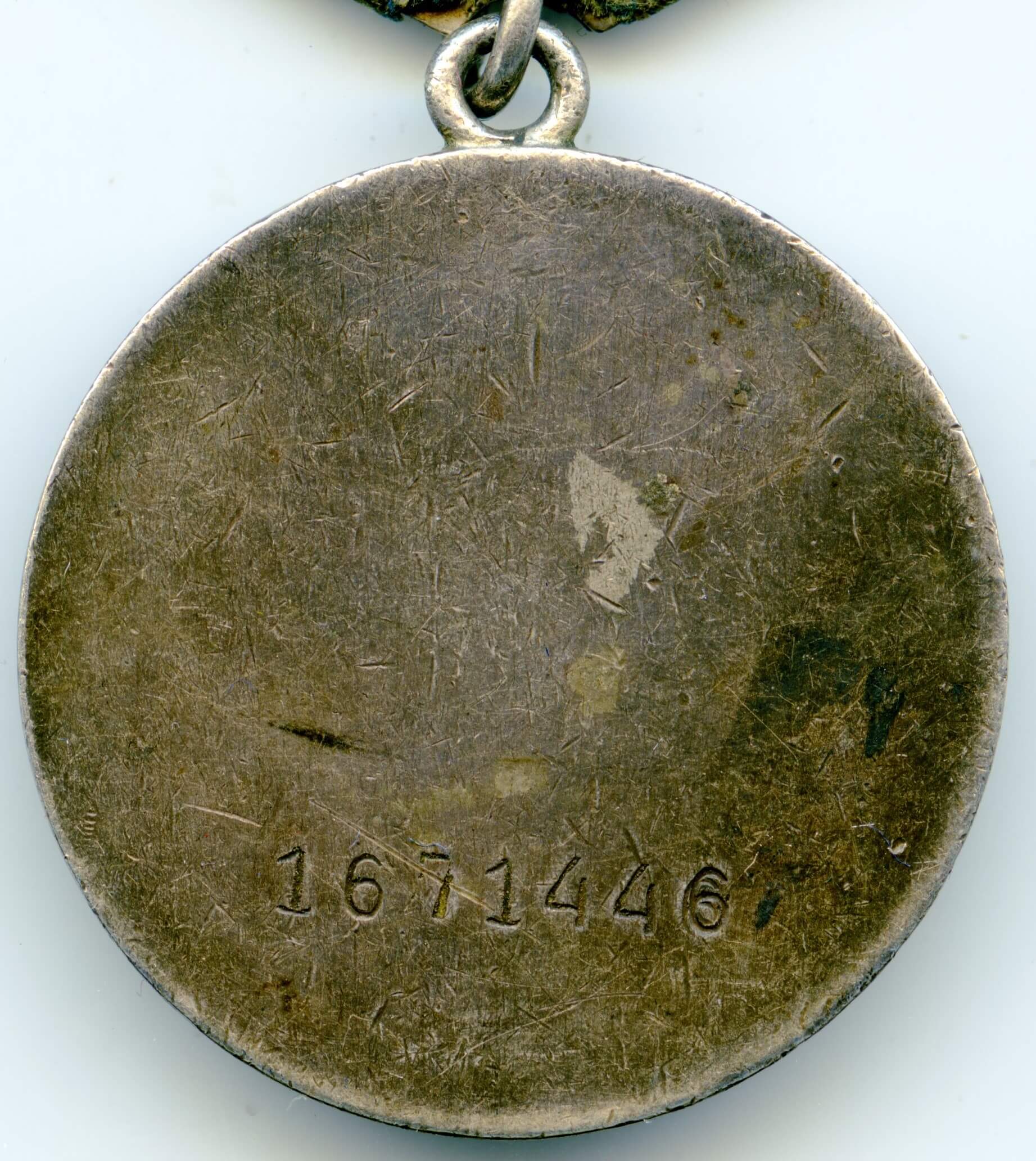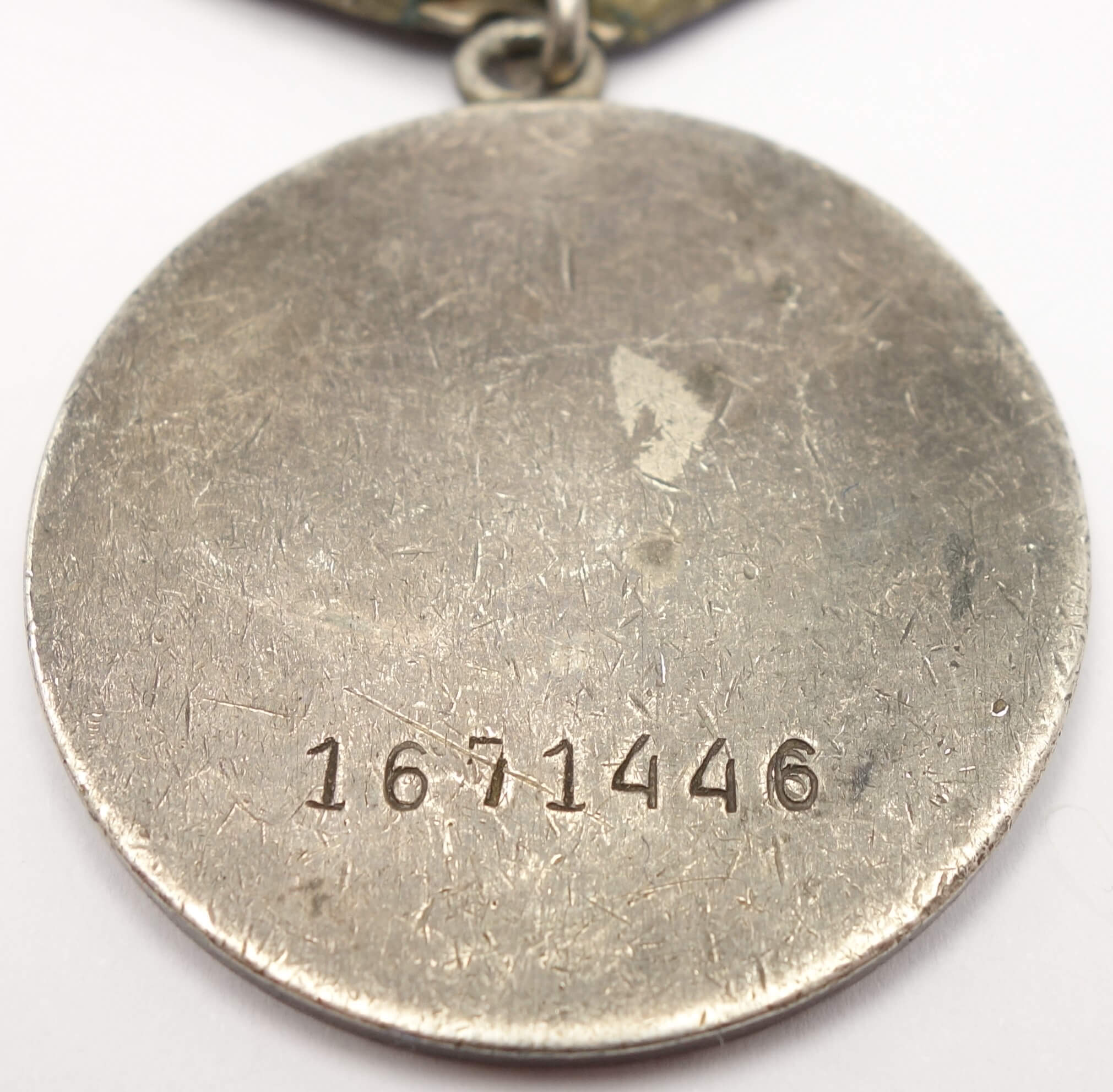 In excellent, above average condition with its details perfectly visible. Even the raised areas like the rivets on the side of the tank and the canons are perfectly visible. Almost all of the original red lacquer is still present which is unusual for war time Bravery Medals. The medal comes with its time period suspension and old, worn ribbon. Its connection ring has not been cut.