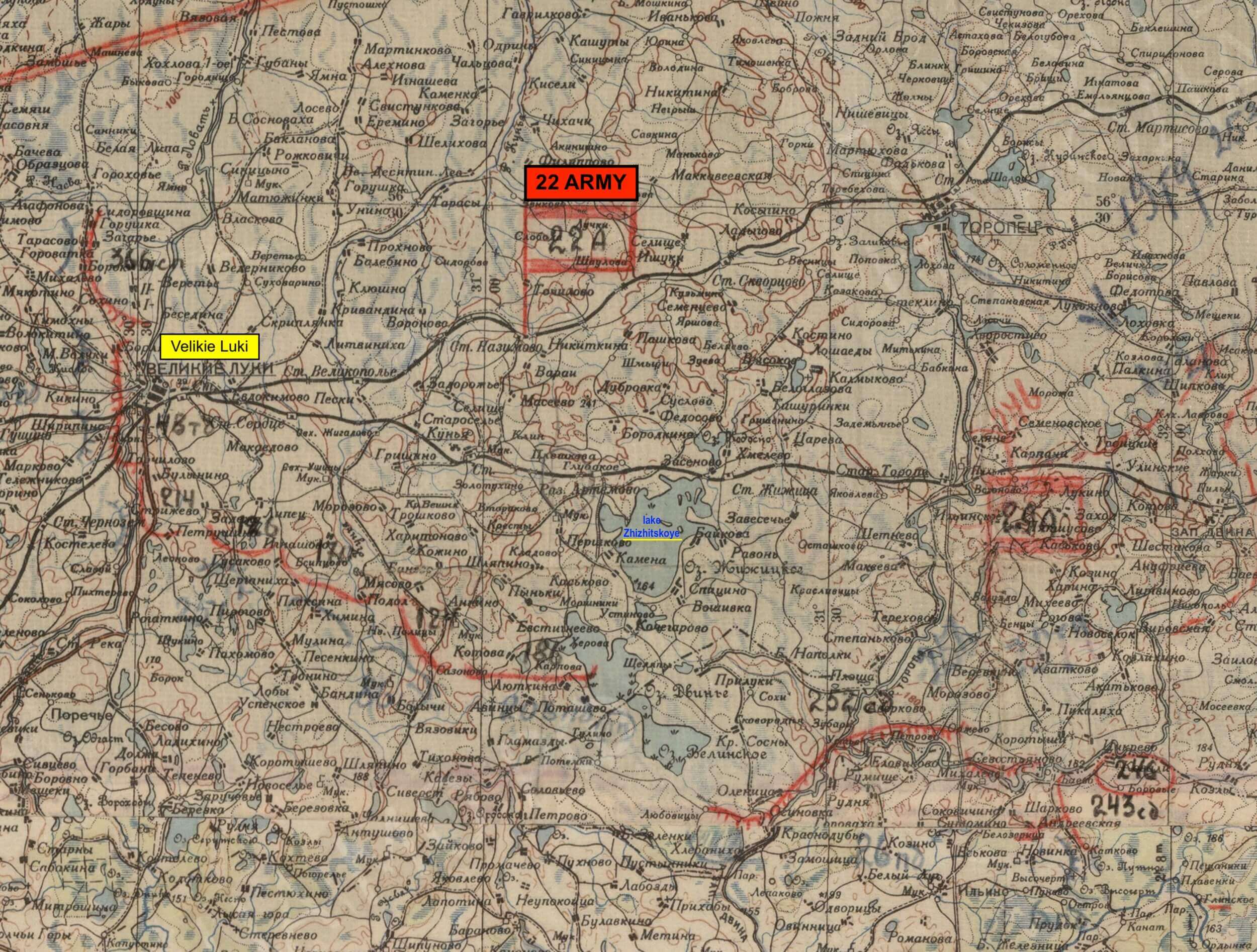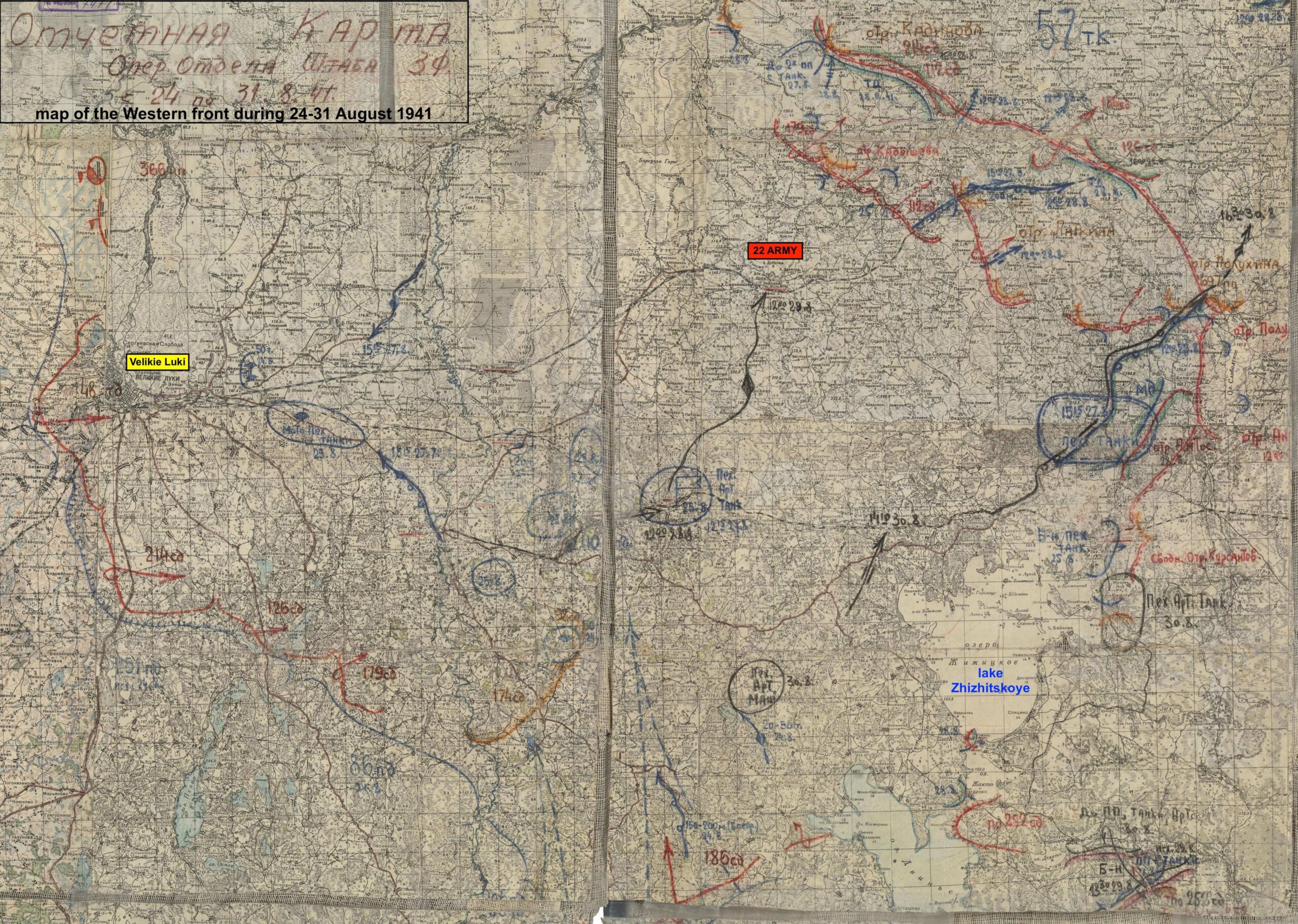 In the picture gallery we posted a scan of an image of Lt. Starovoitov wearing this very same Medal for Combat Merit and two combat maps of the 22nd Army at lake Zhizhitskoye in August 1941