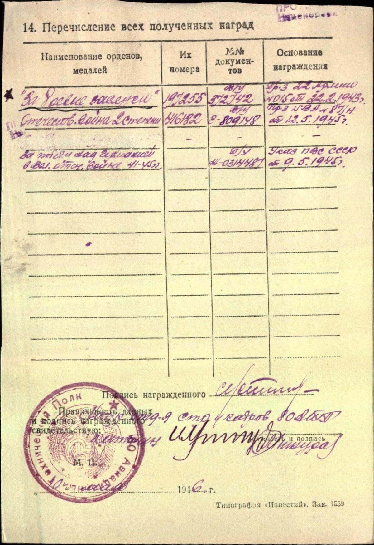 Awarded to Sr. Lieutenant Sergej Maksimovich Starovoitov (Сергей Максимович Старовойтов)