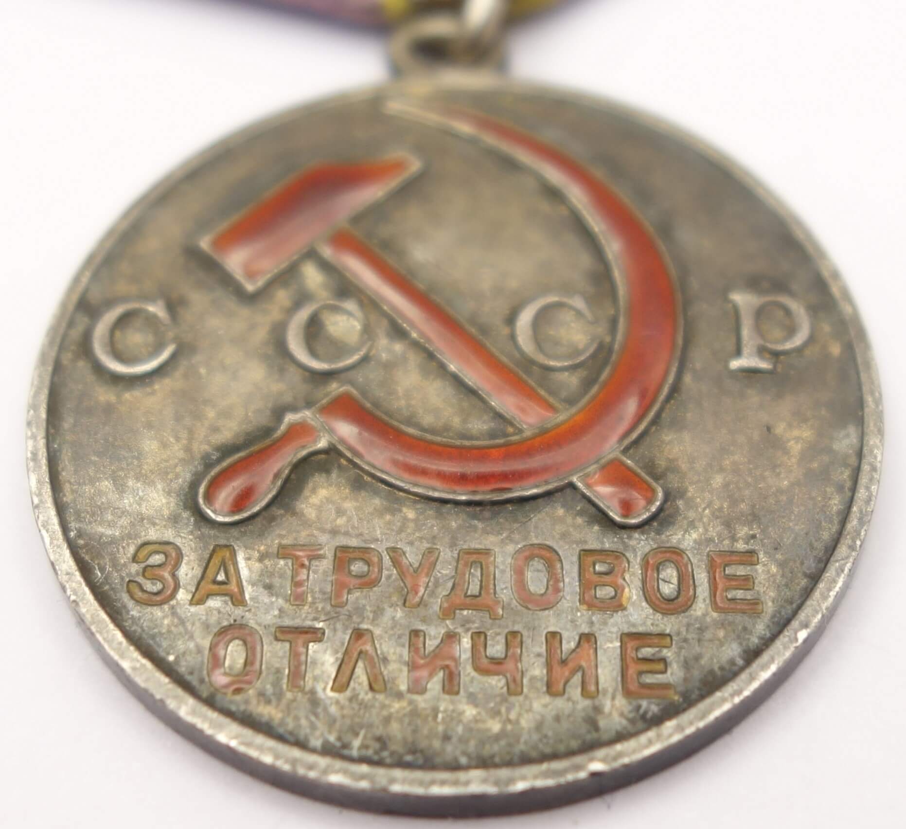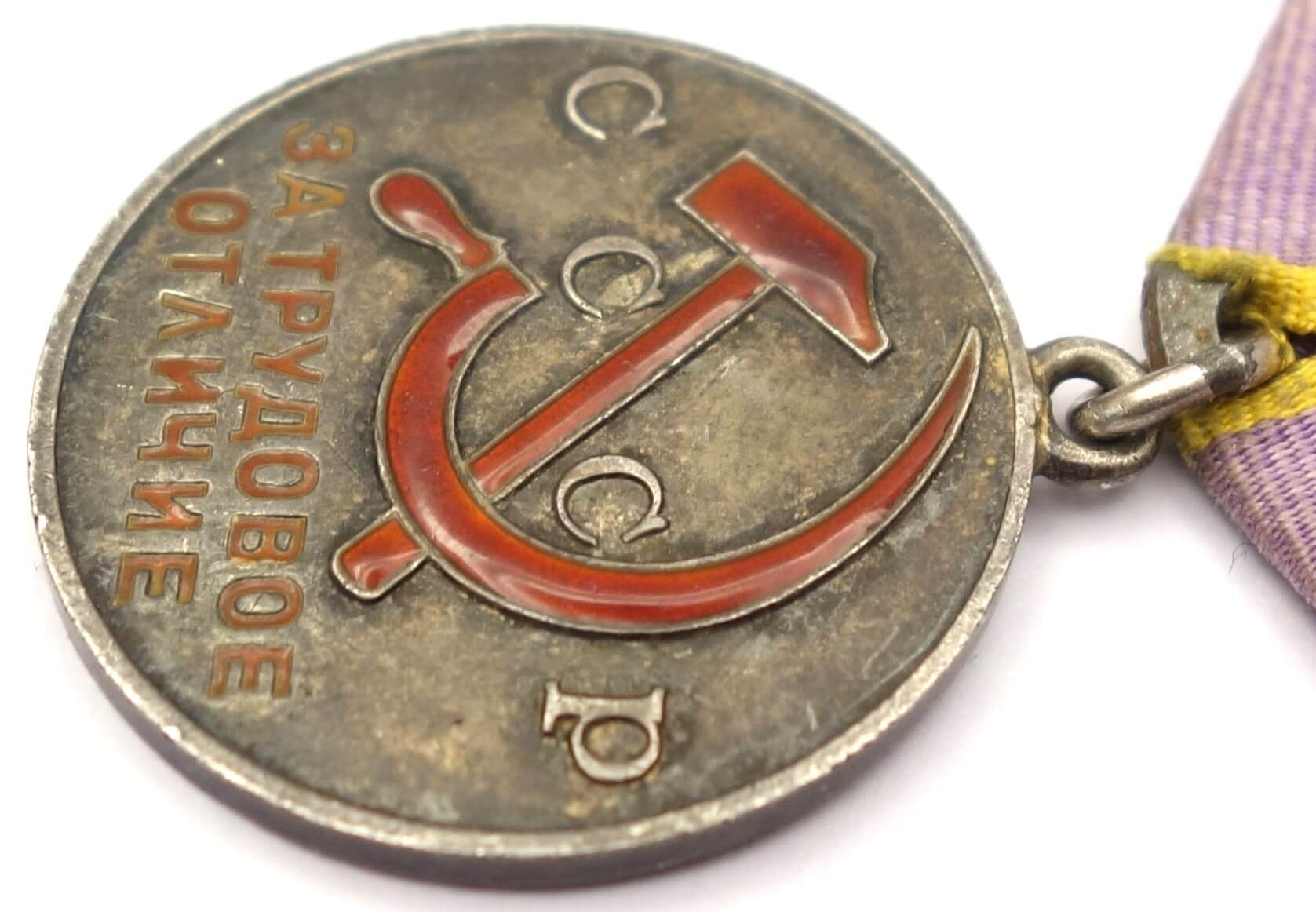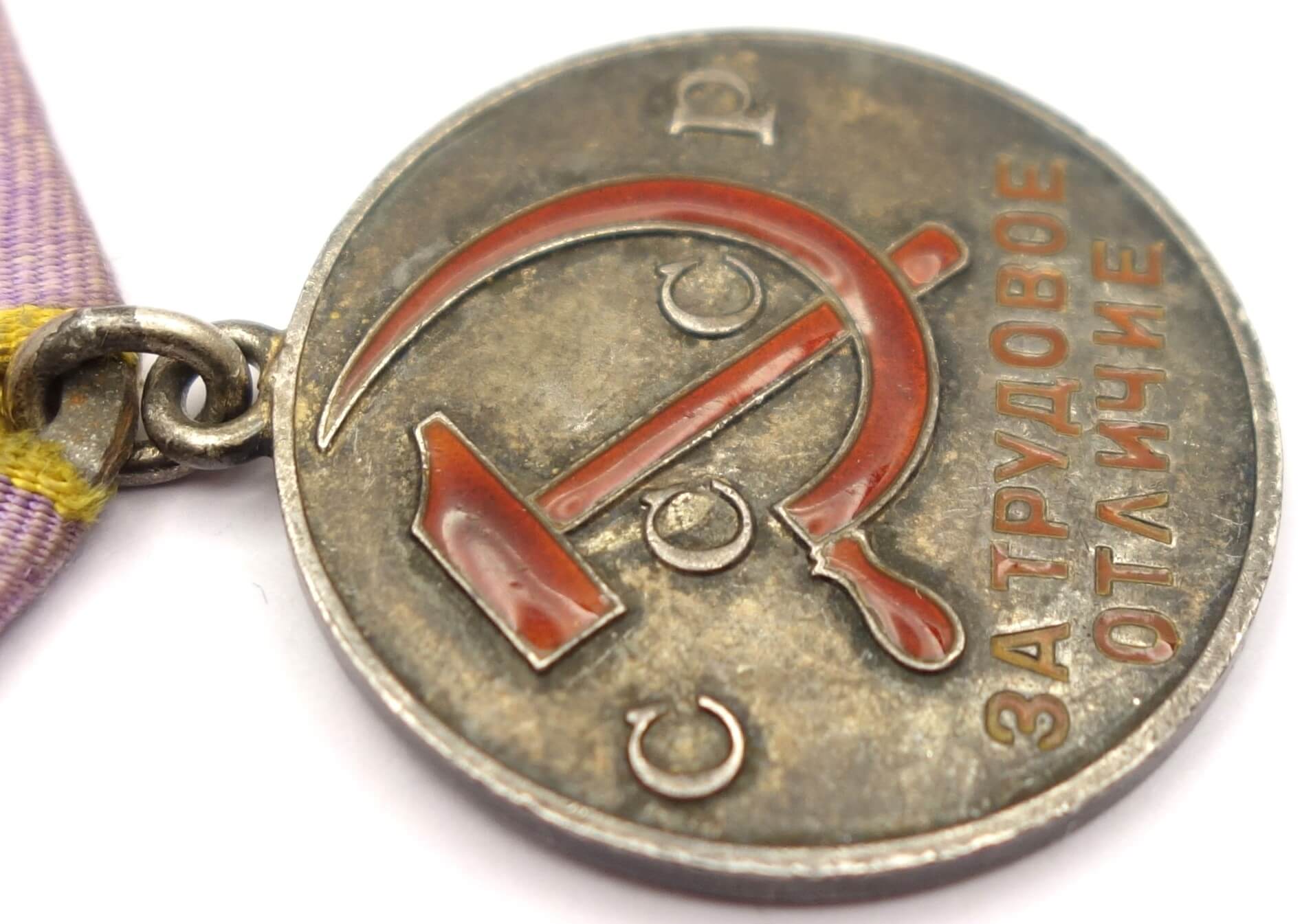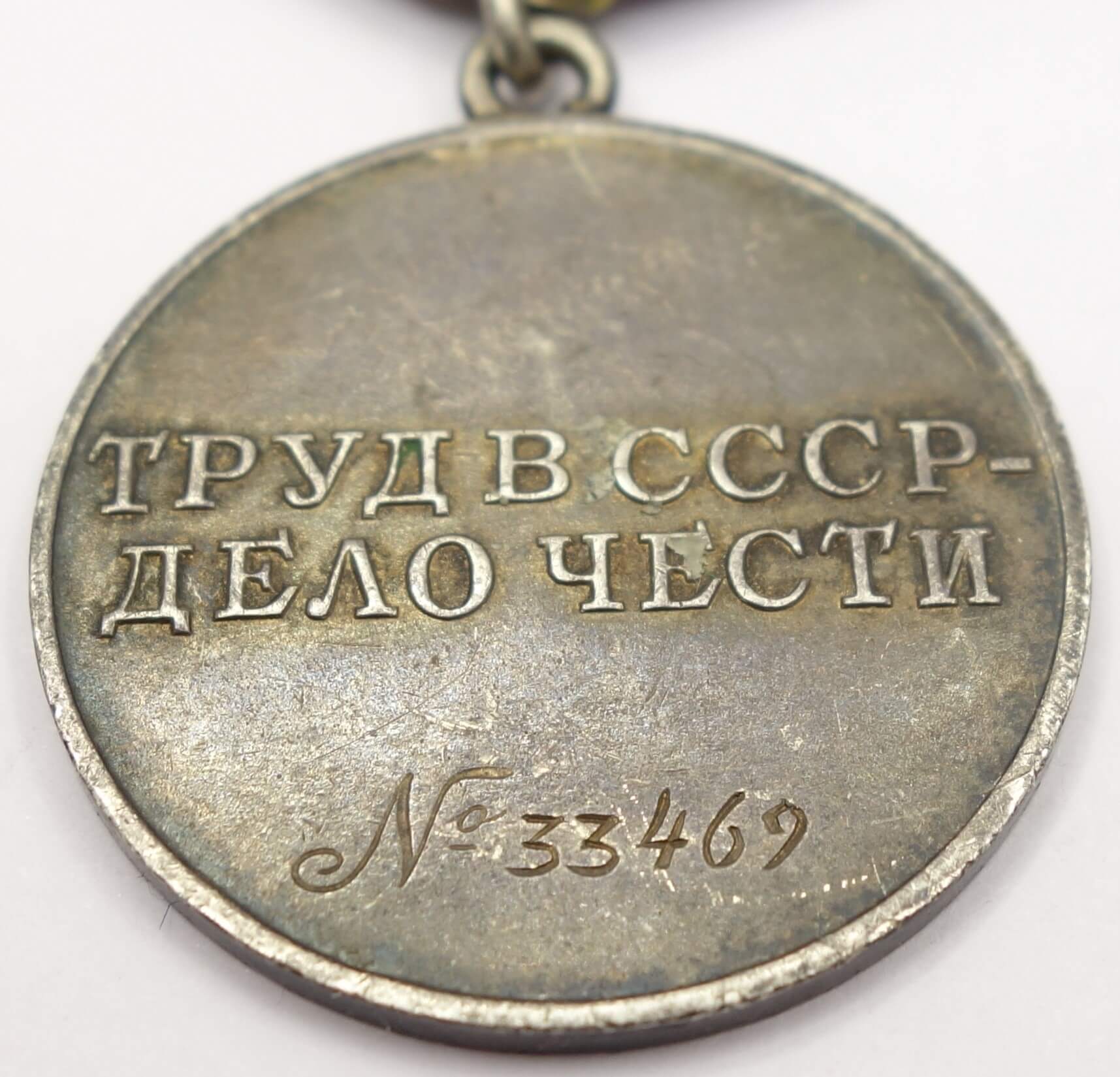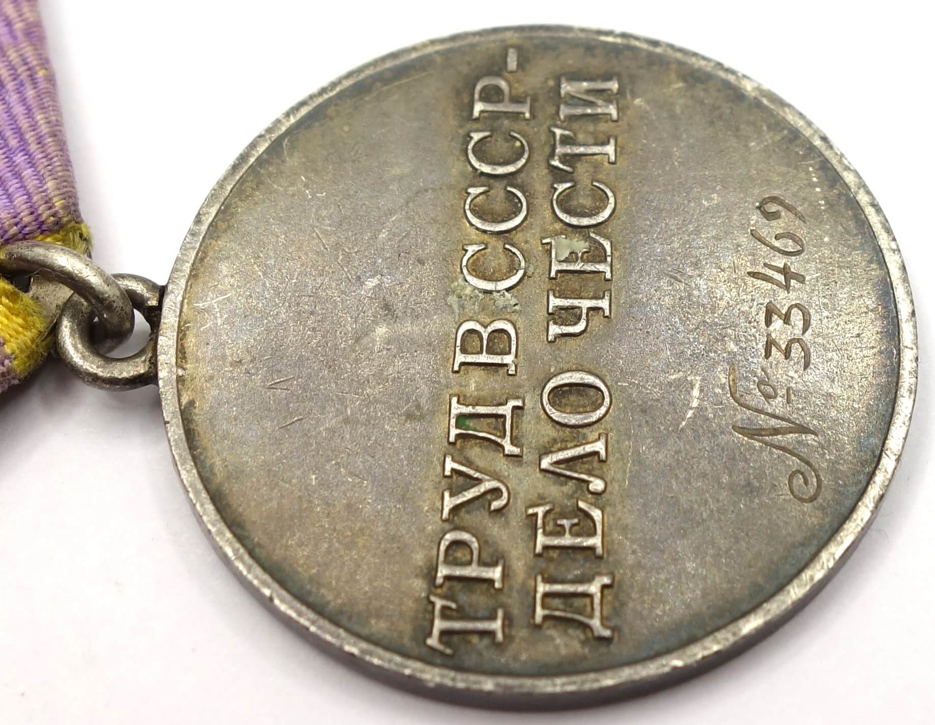 Made of solid silver and enamels. Measures 32.39 mm in diameter and 36.65 mm in height (including the eyelet). The eyelet is 5.62 mm wide and the medal weighs 15.3 grams without its suspension. The reverse shows the stamped letters ‘No’ followed by the hand engraved serial number ‘33469’. The minimum known medal number is 32652 and the maximum is 76439.