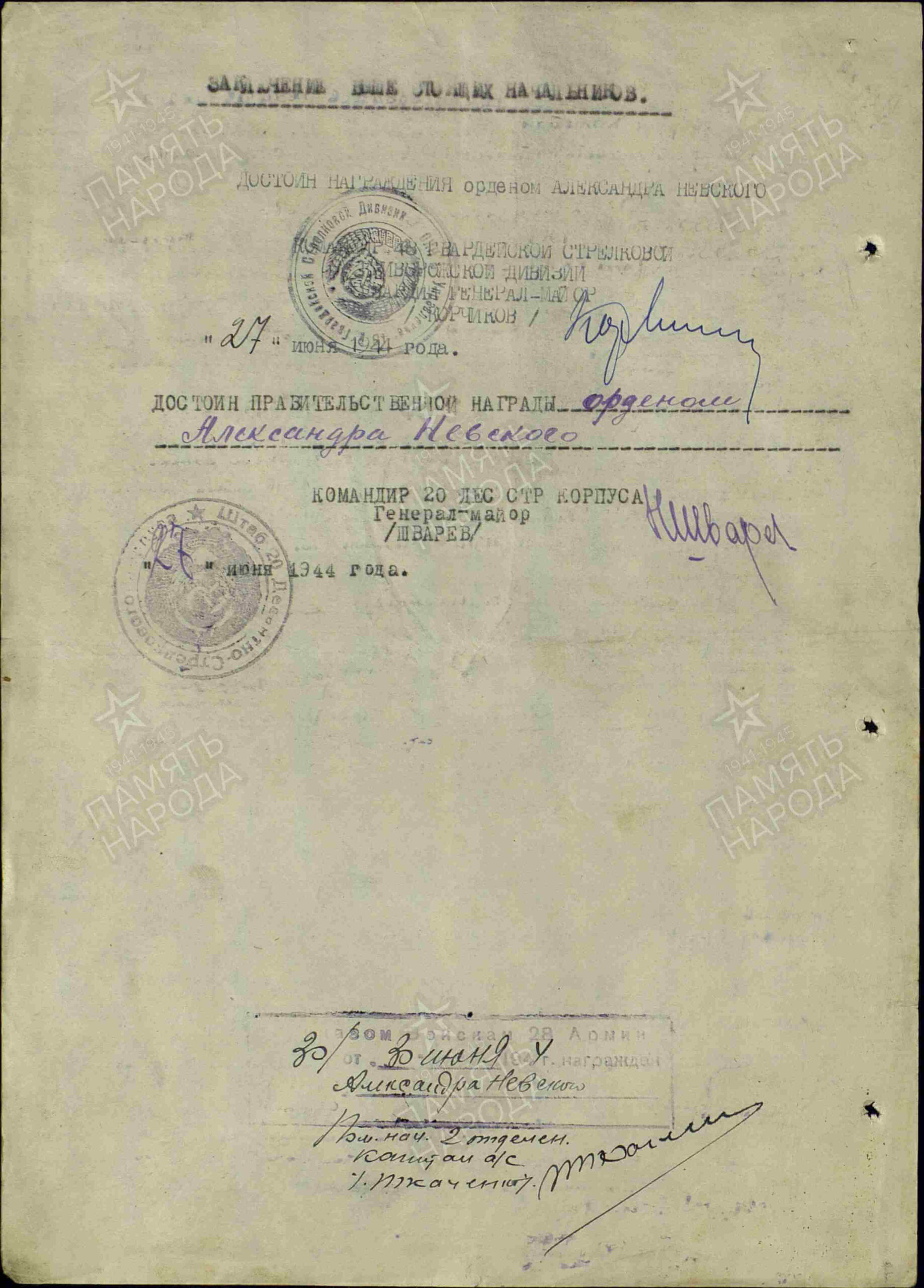 For success in the combat mission, for efficient organisation of coordination within different arms, for inflicting defeat upon the enemy with only small casualties in return, he deserves state award order “ALEKSANDER NEVSKY”.