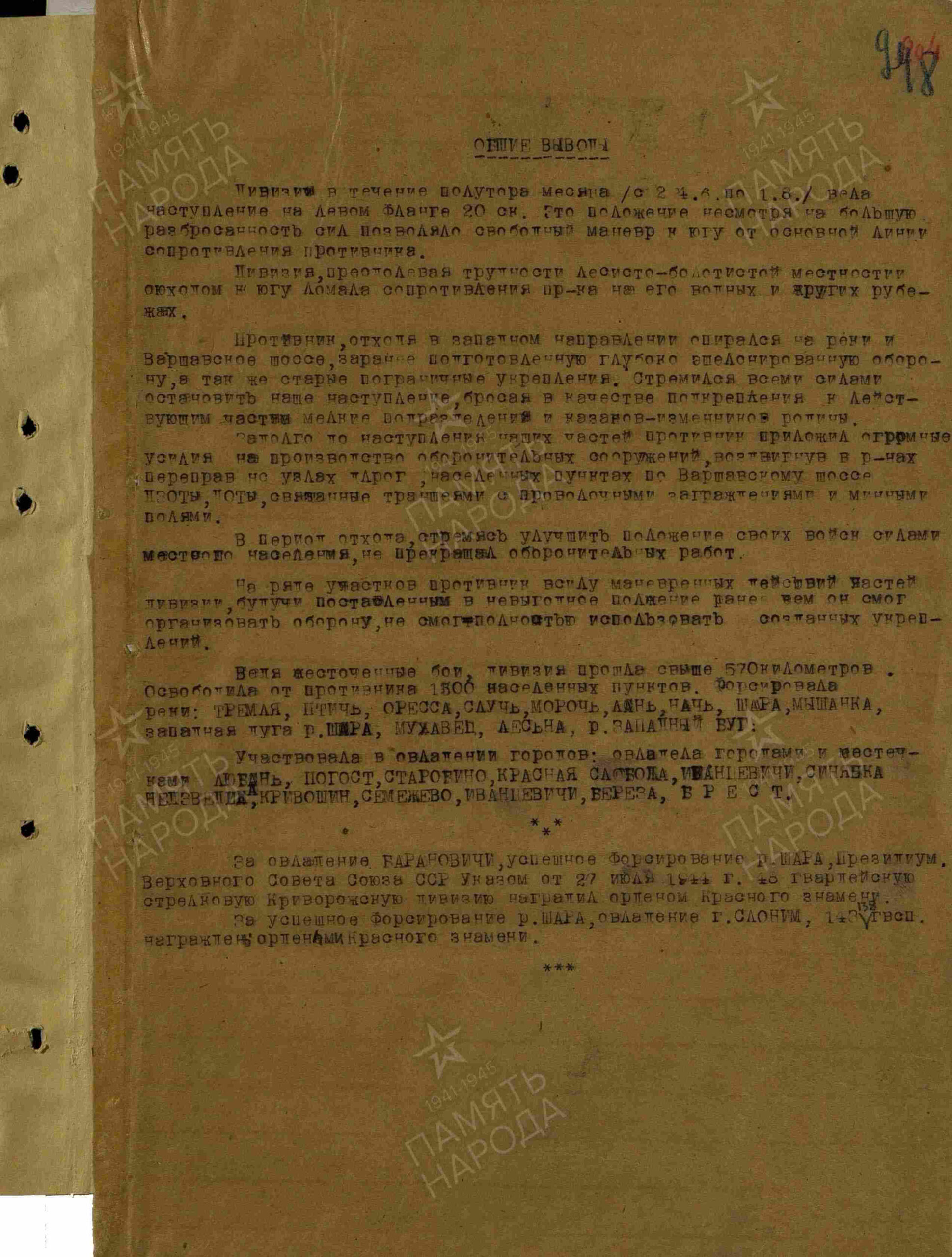 • combat diaries of the 48th Guards Rifle Division (48GuRD) on 20 and 24 June 1944