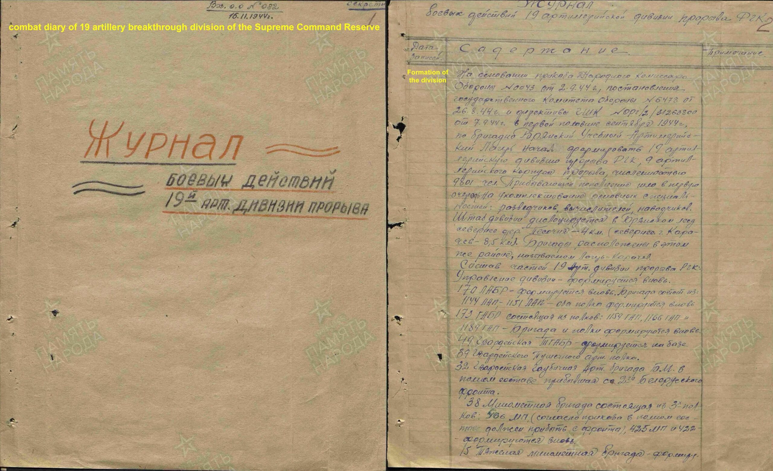Next to the ‘standard’ research we have added the combat diary and the combat path of the 19th Artillery Breakthrough Division of the Supreme