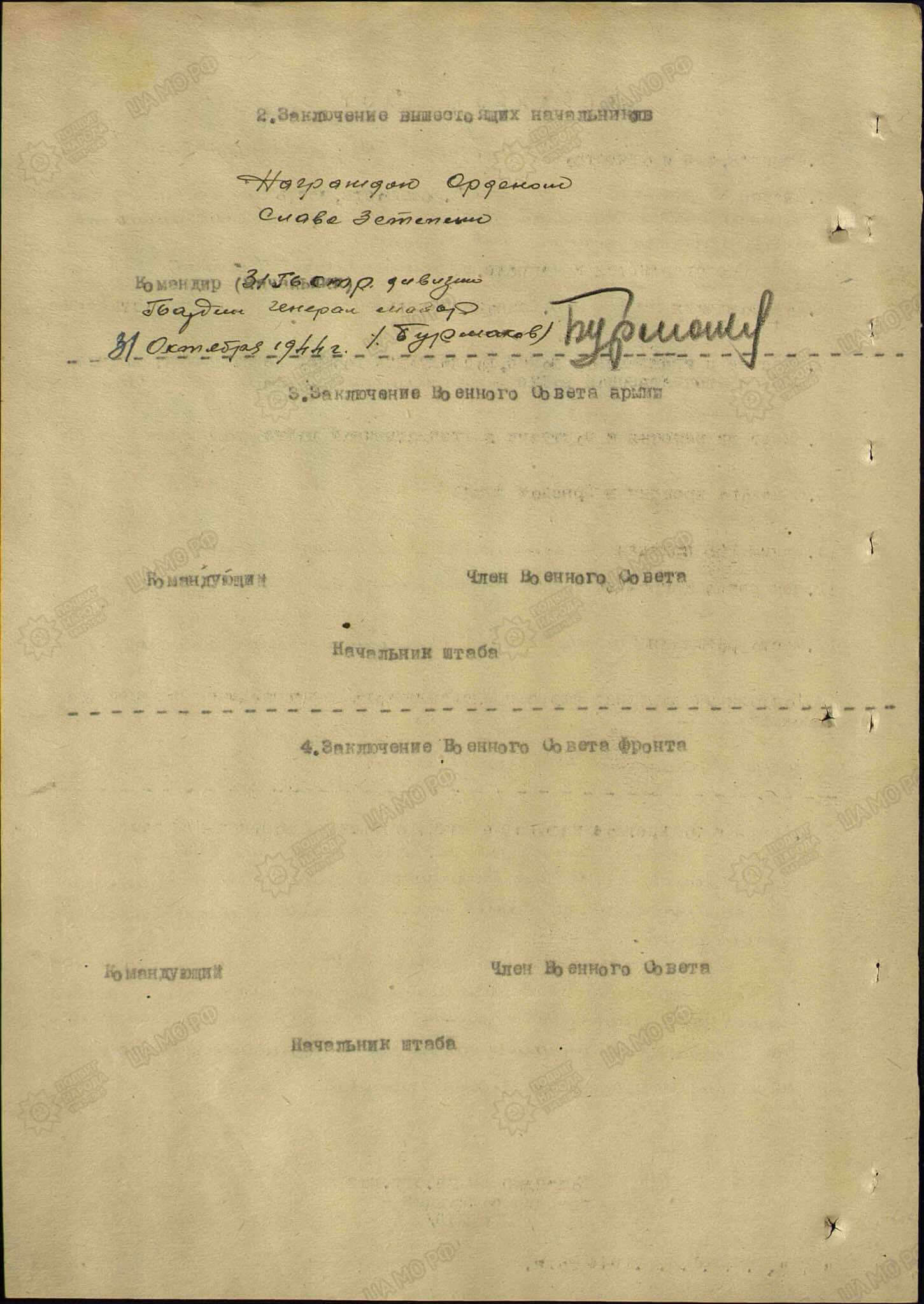For exhibited courage and bravery, comrade KALINICHEV deserves to be bestowed with order “GLORY III CLASS”.