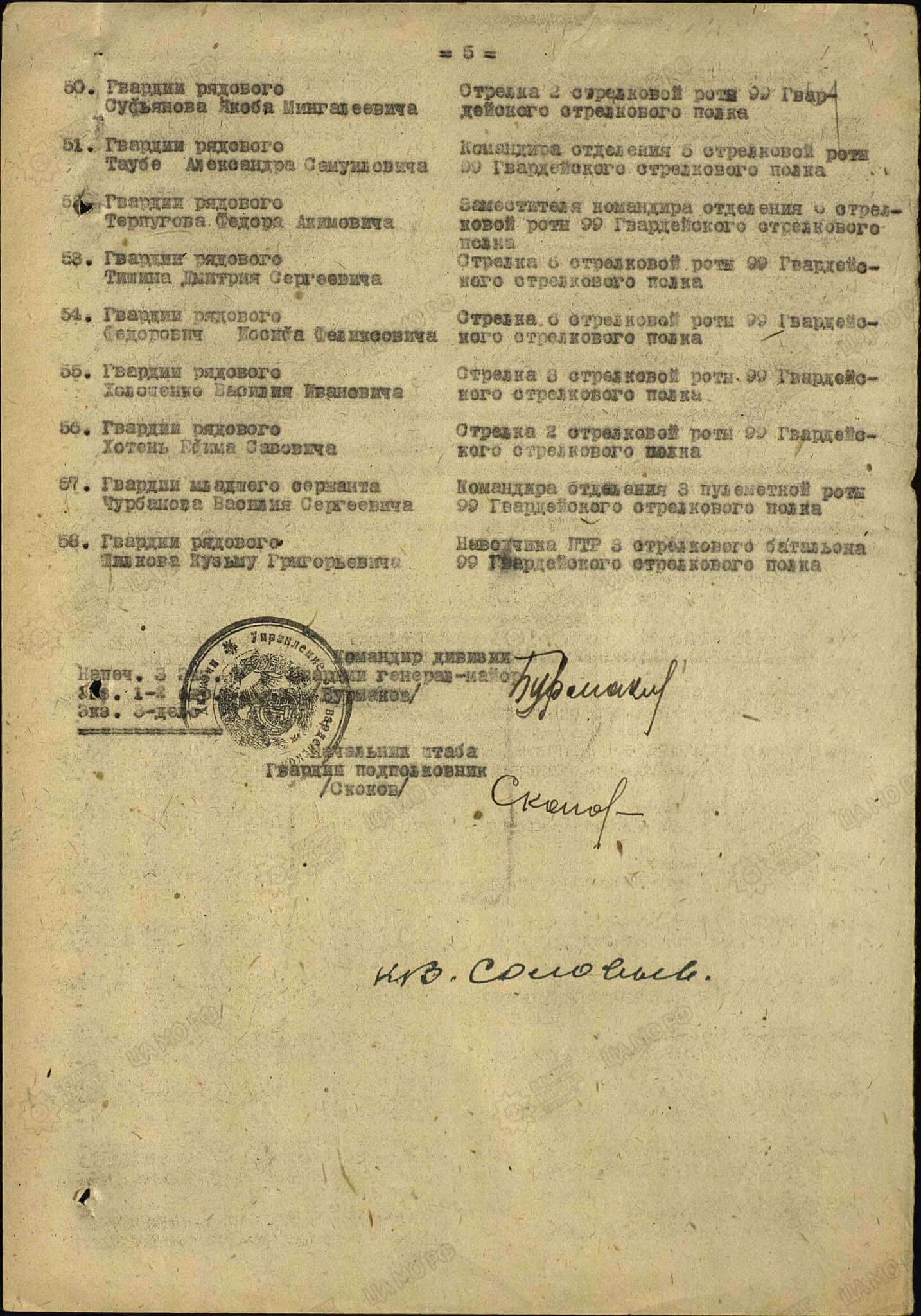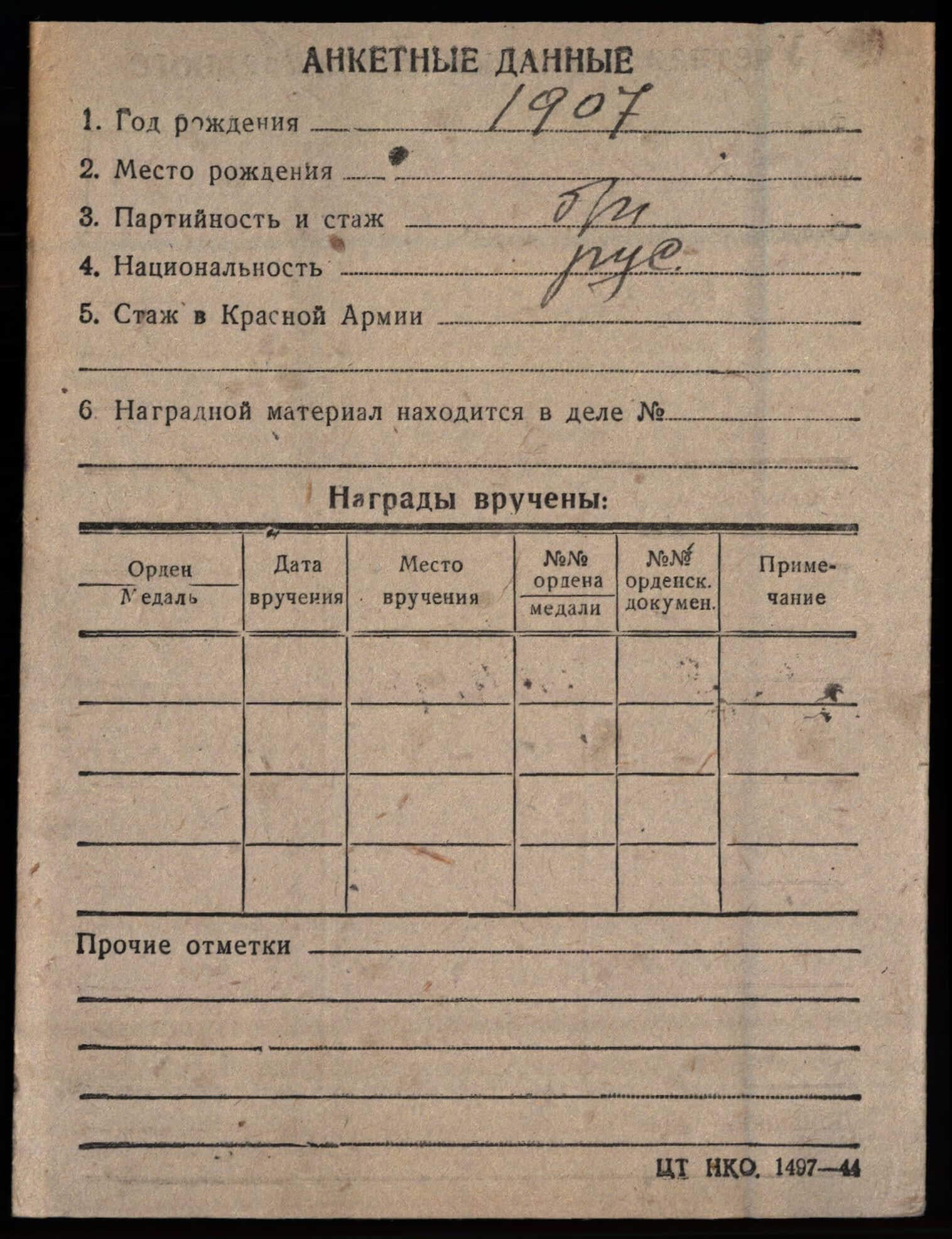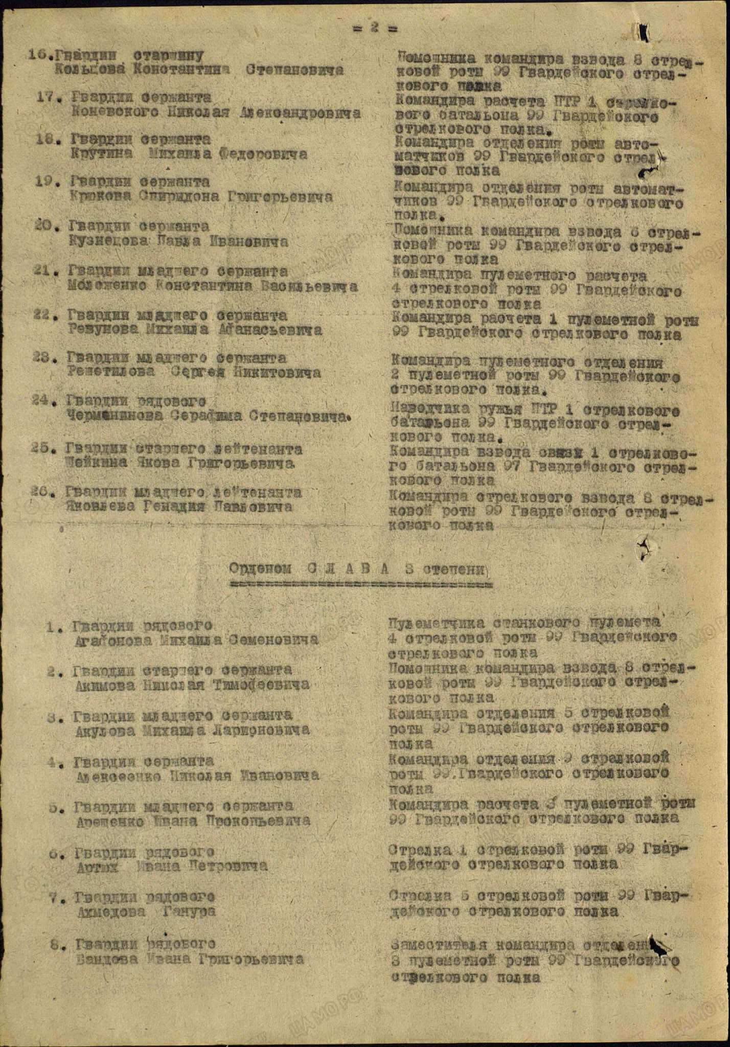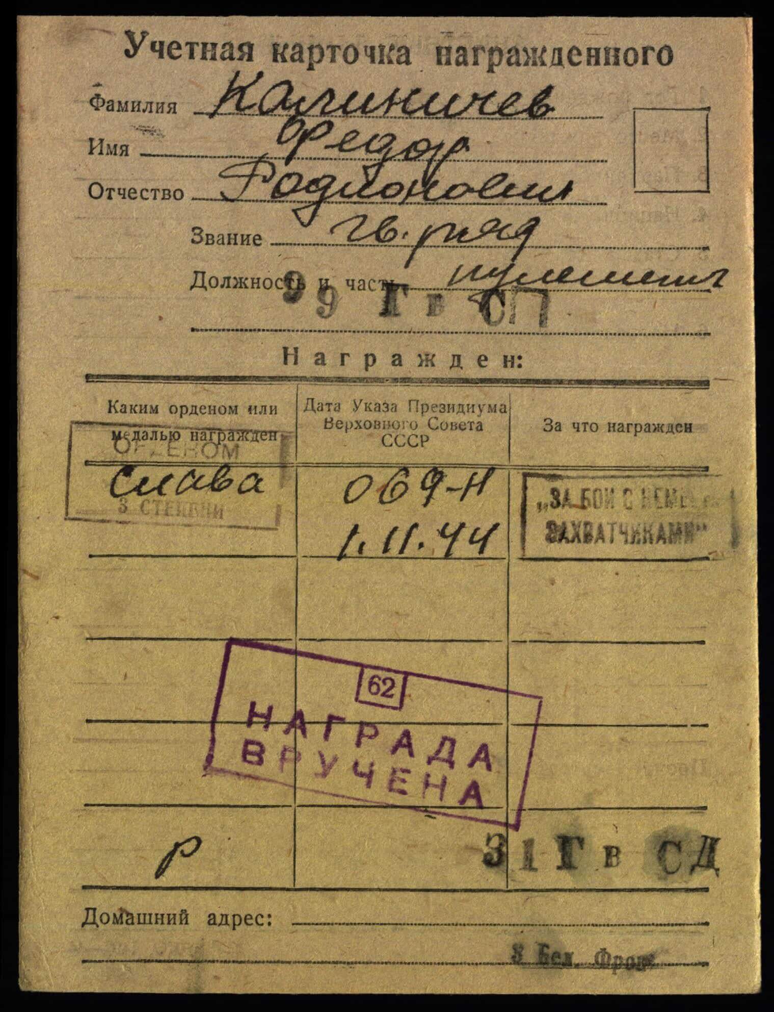 Awarded to Guards Private Fedor Rodionovich Kalinichev (Федор Родионович Калиничев)