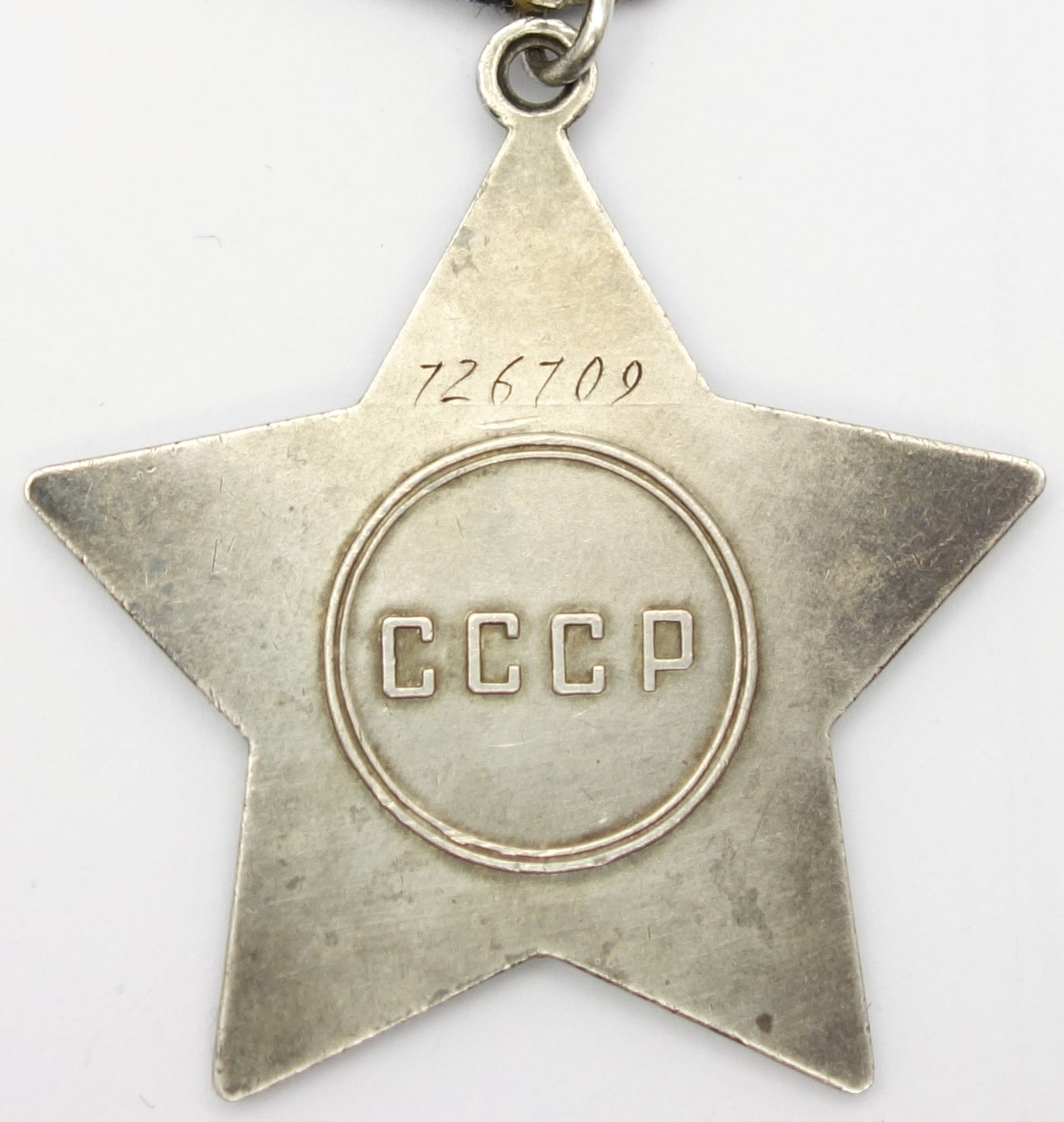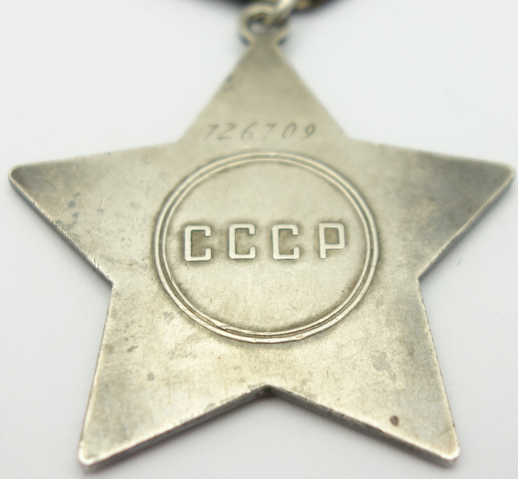 In good condition with problem-free enamels. Its obverse shows several scratches and the raised Spasskaya Tower shows light wear, while the surrounding wreath shows more pronounced wear. The connection ring has not been cut, and the order comes with its correct double-layer steel suspension and old ribbon.