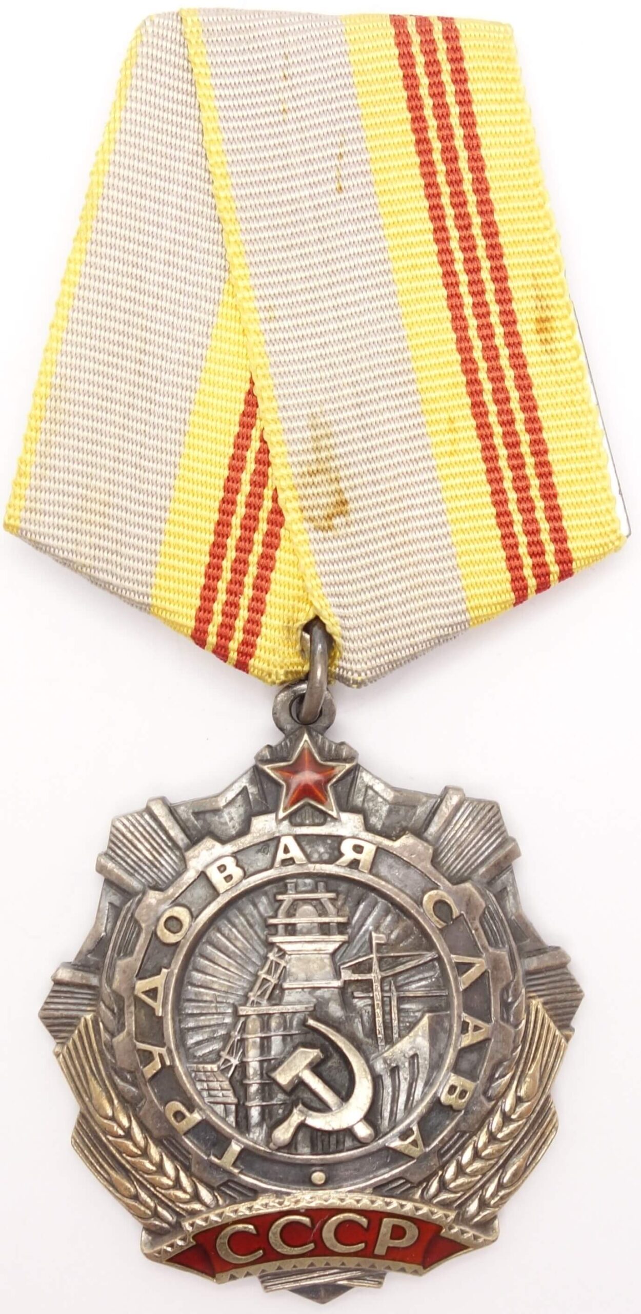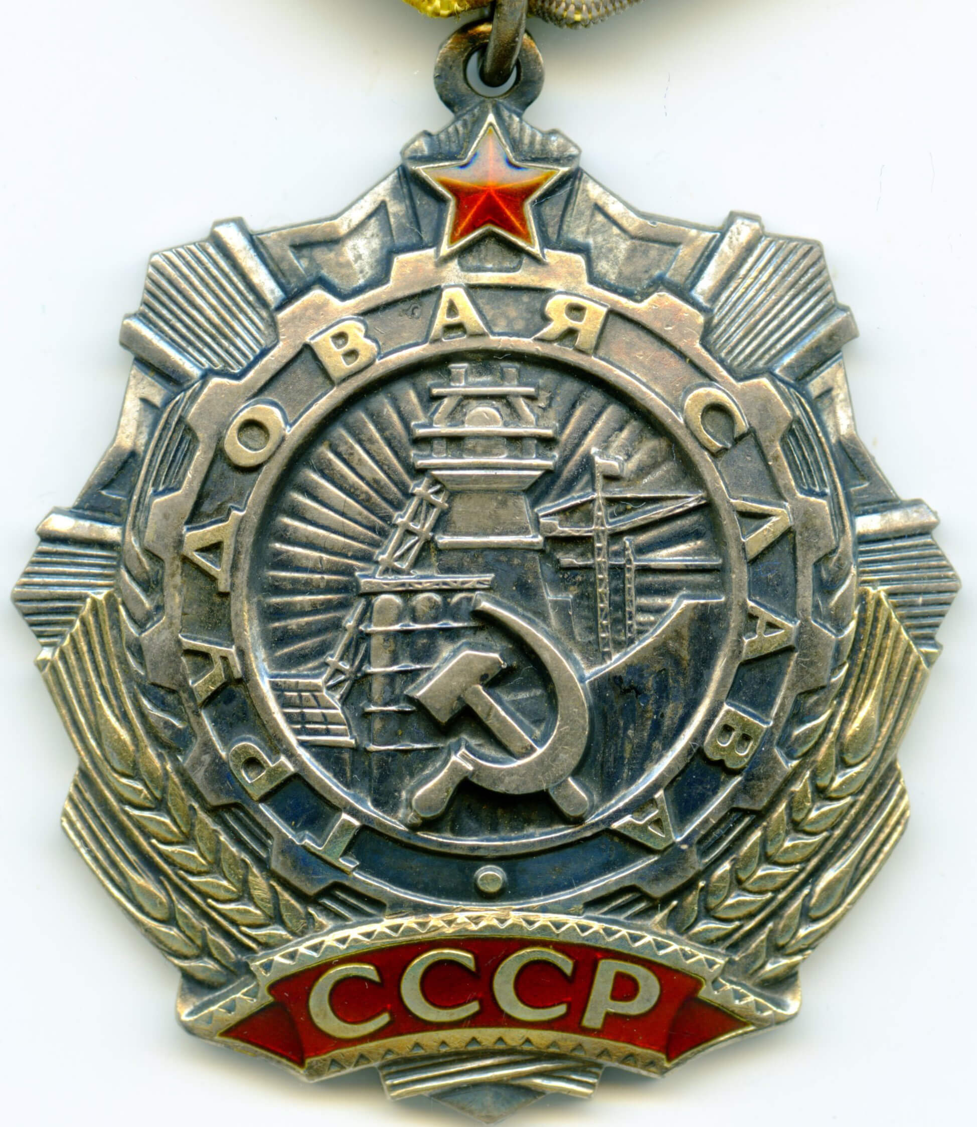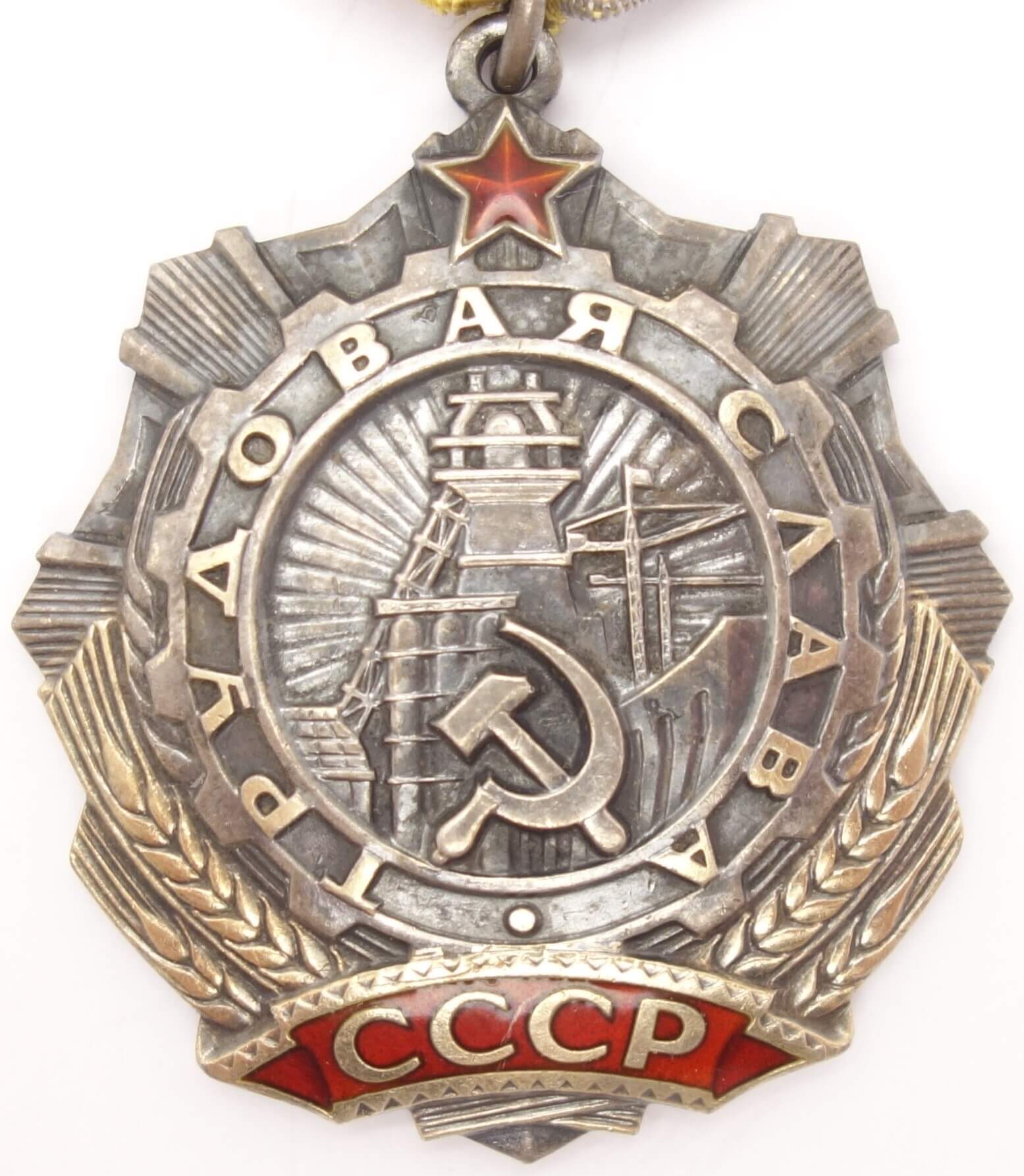 Closely modeled on the Order of Glory this order was awarded for labor achievements. In the same way as the Order of Glory, it was divided in three classes, with a person receiving the third degree first. It also gave a certain number of material benefits to their owners such as an increased pension raises and free public transport.