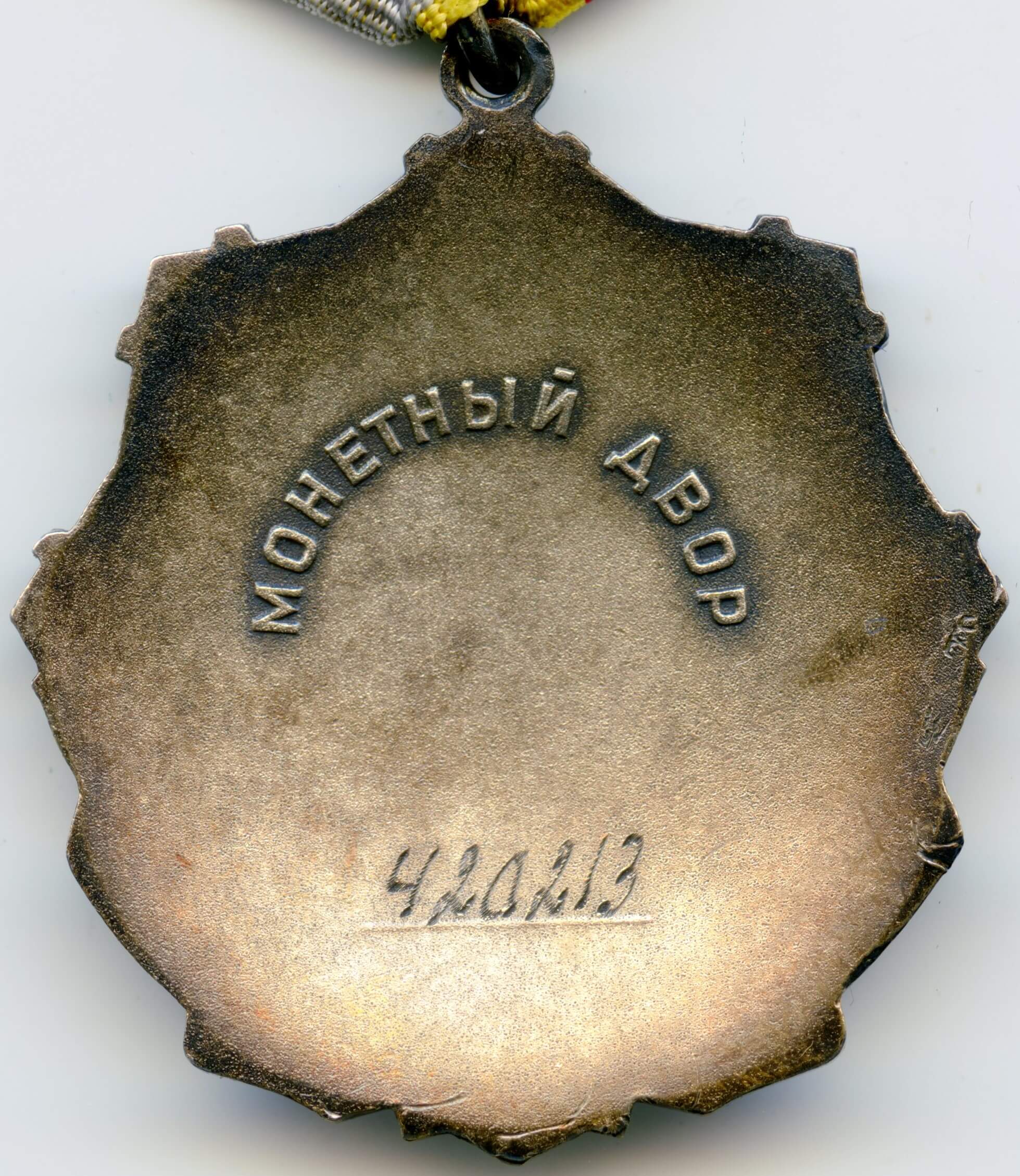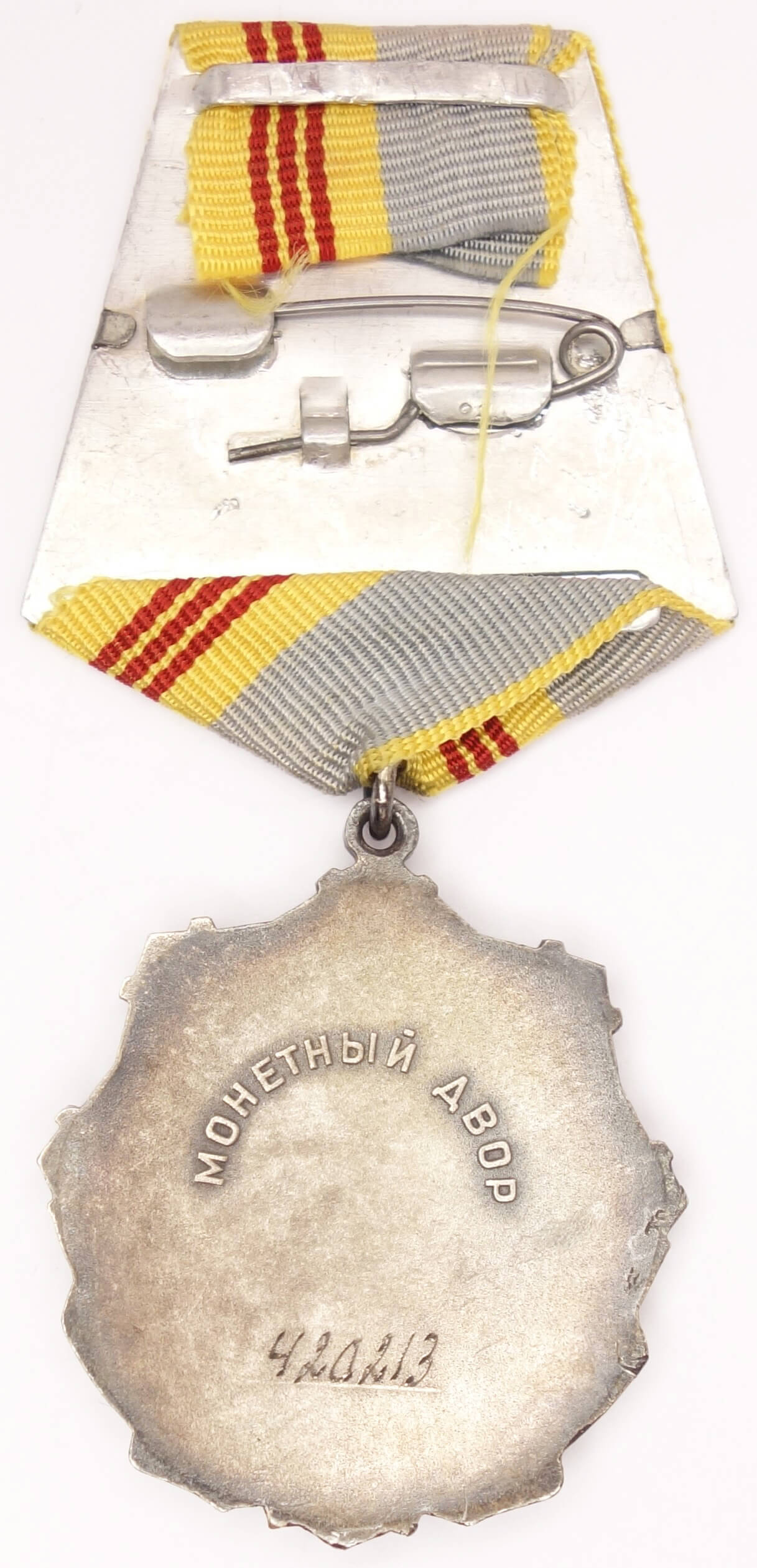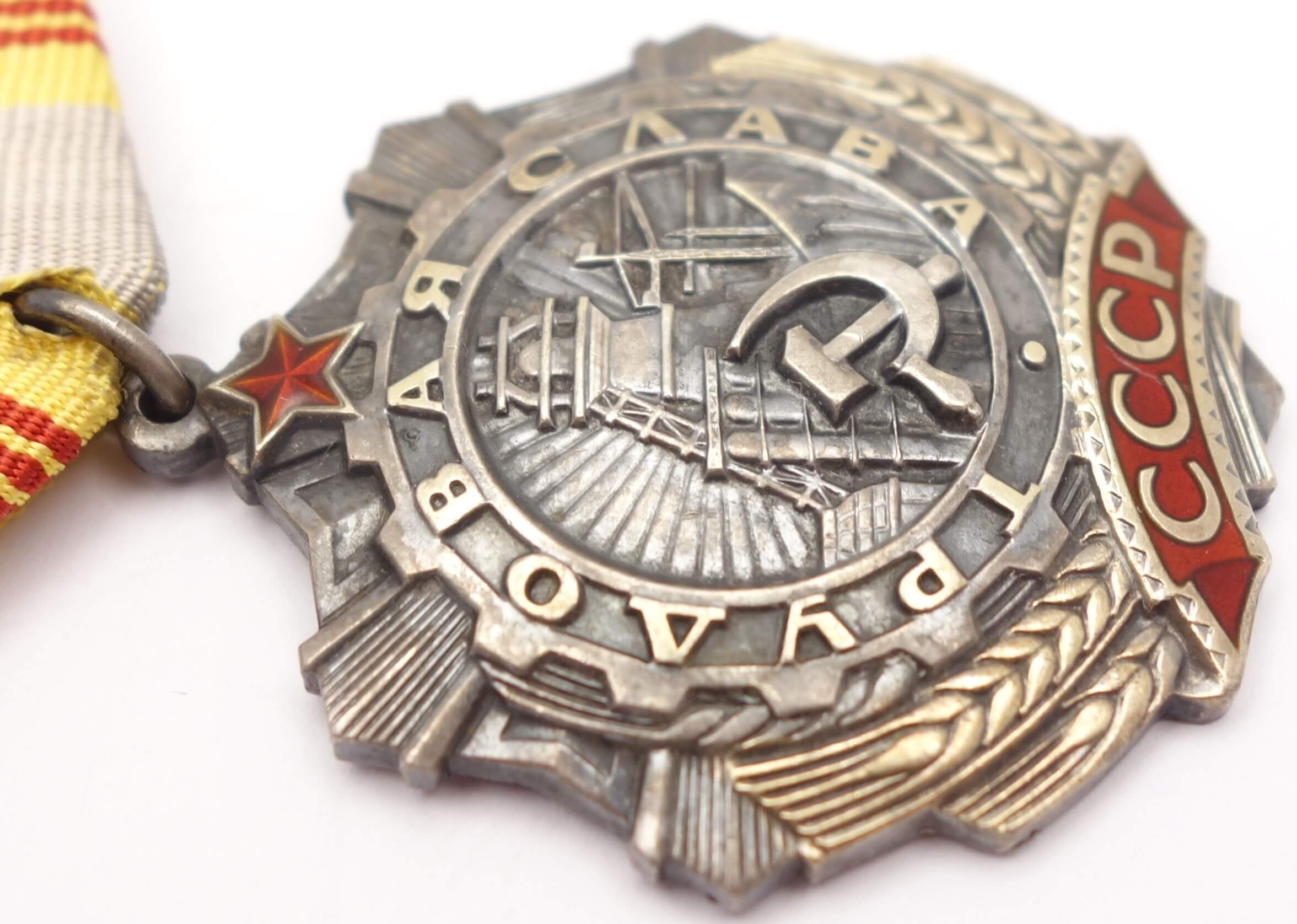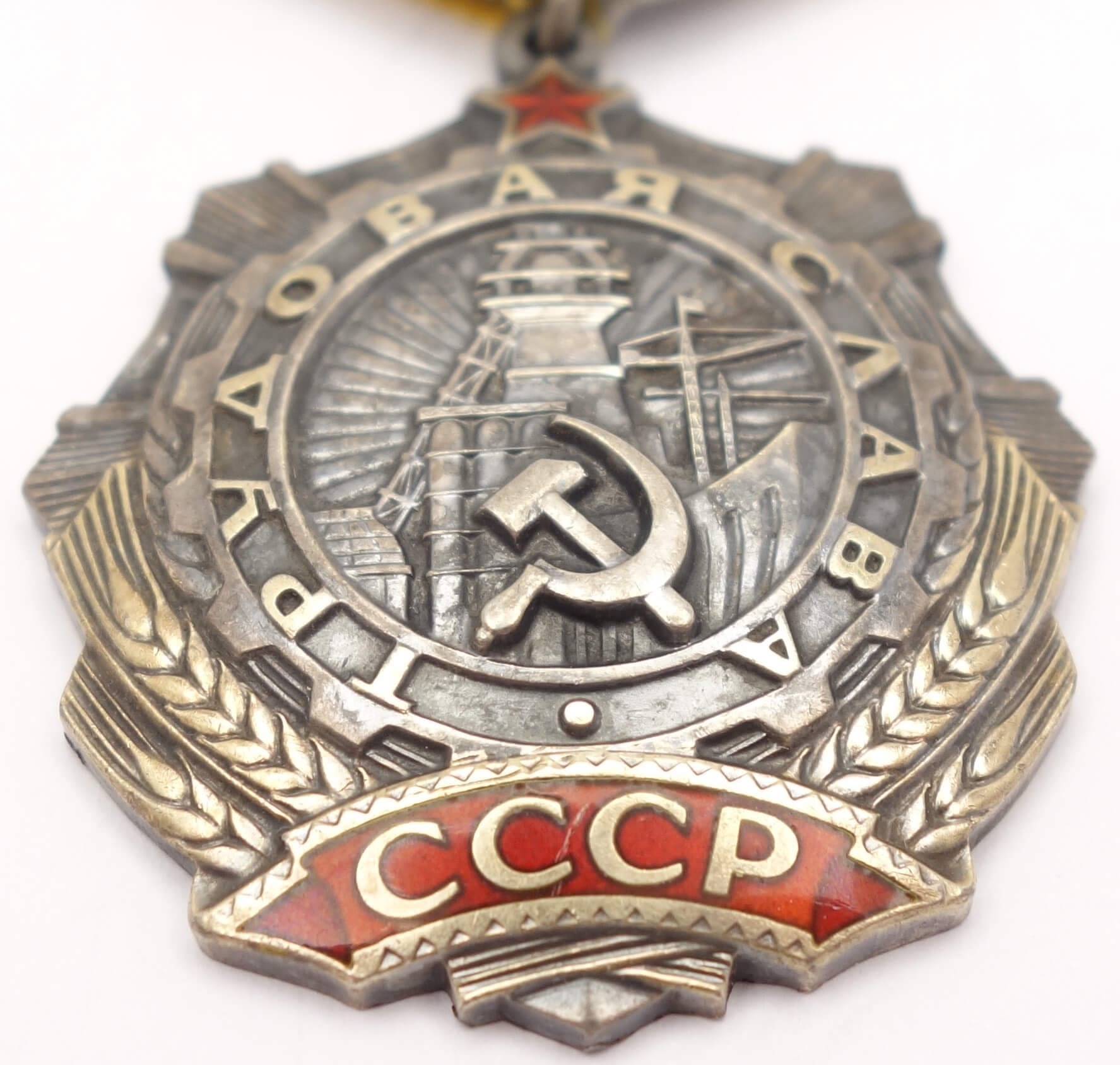 Closely modeled on the Order of Glory this order was awarded for labor achievements. In the same way as the Order of Glory, it was divided in three classes, with a person receiving the third degree first. It also gave a certain number of material benefits to their owners such as an increased pension raises and free public transport.
