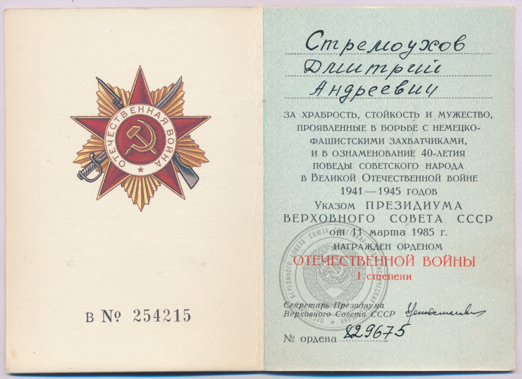Awarded to Dmitry Andreevich Stremoukhov (Дмитрий Андреевич Стремоухов)