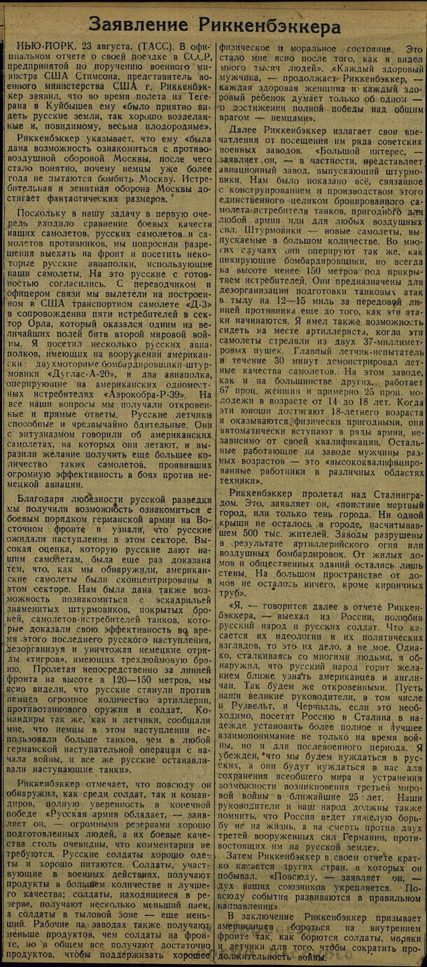 Also worth mentioning is that Eddie Rickenbacker visited the 8th Guards Aviation Regiment in June 1943. Some information on this can be read here and here