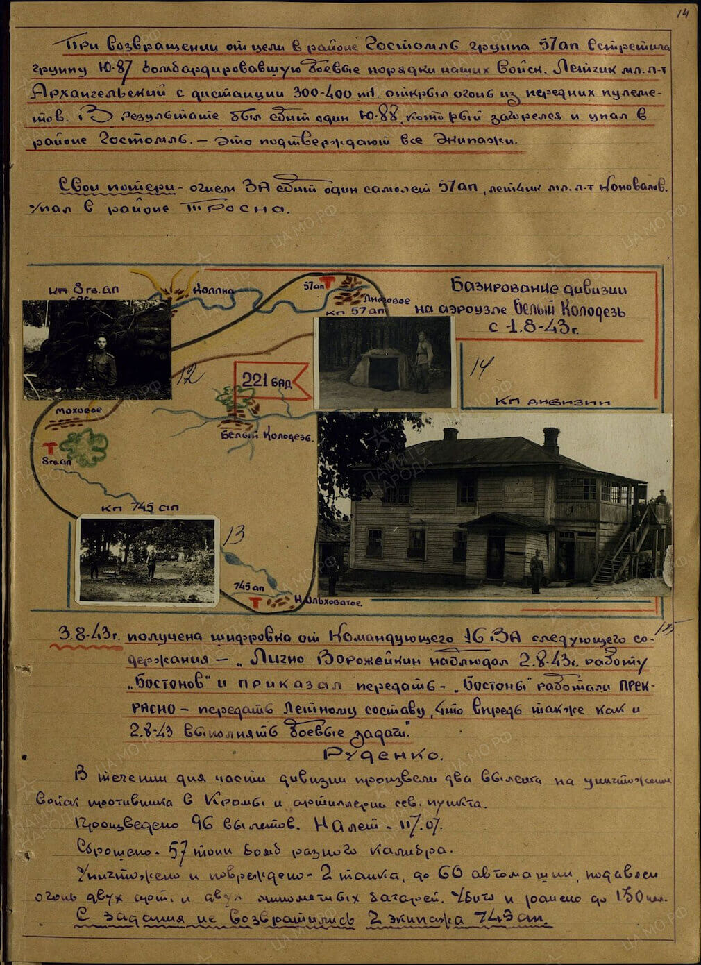 From March 1943 he fought on the Central Front, took part in the Orel-Kursk operation, was a navigator in the 8th Guards Bomber Aviation Regiment of the 221st Bomber Aviation Division.