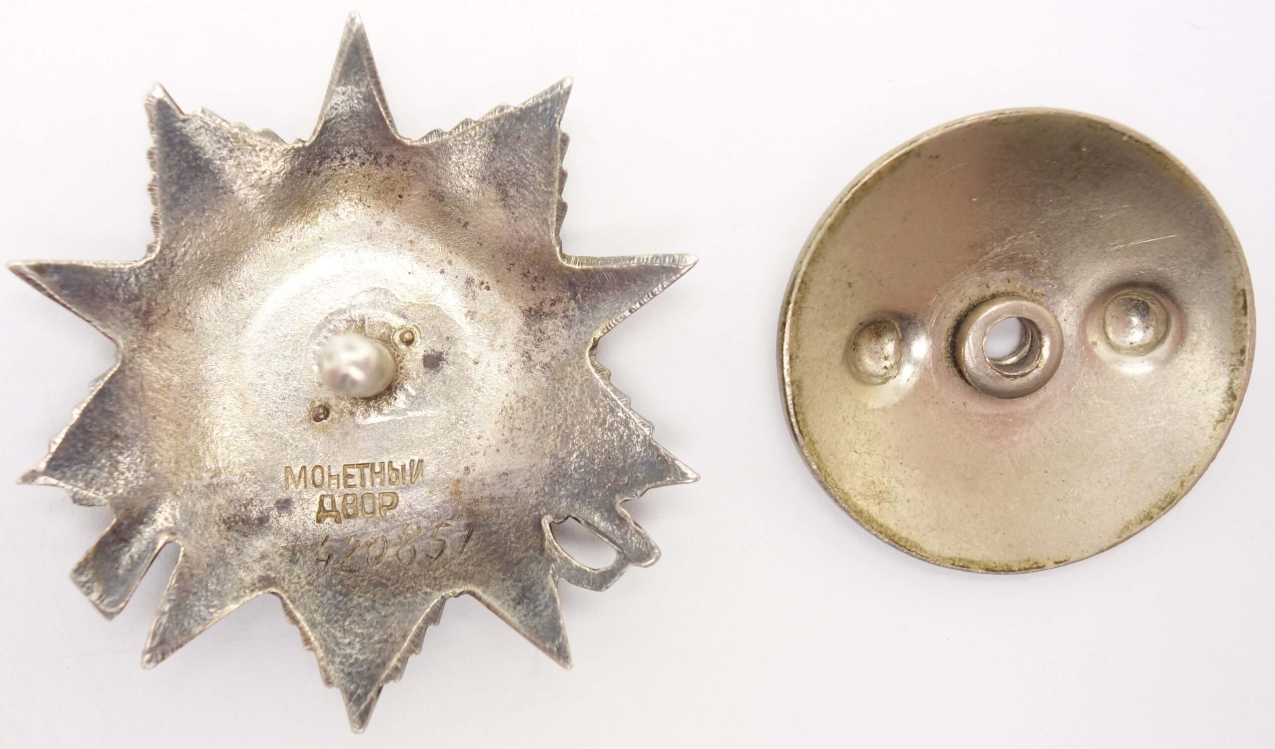 In excellent condition with all details crisp and medium patina to the silver. The red and white enamels are well preserved and without repairs with some minuscule contact marks and dings only. The order comes with its original, time period and well fitted screwplate and its screw is full length.